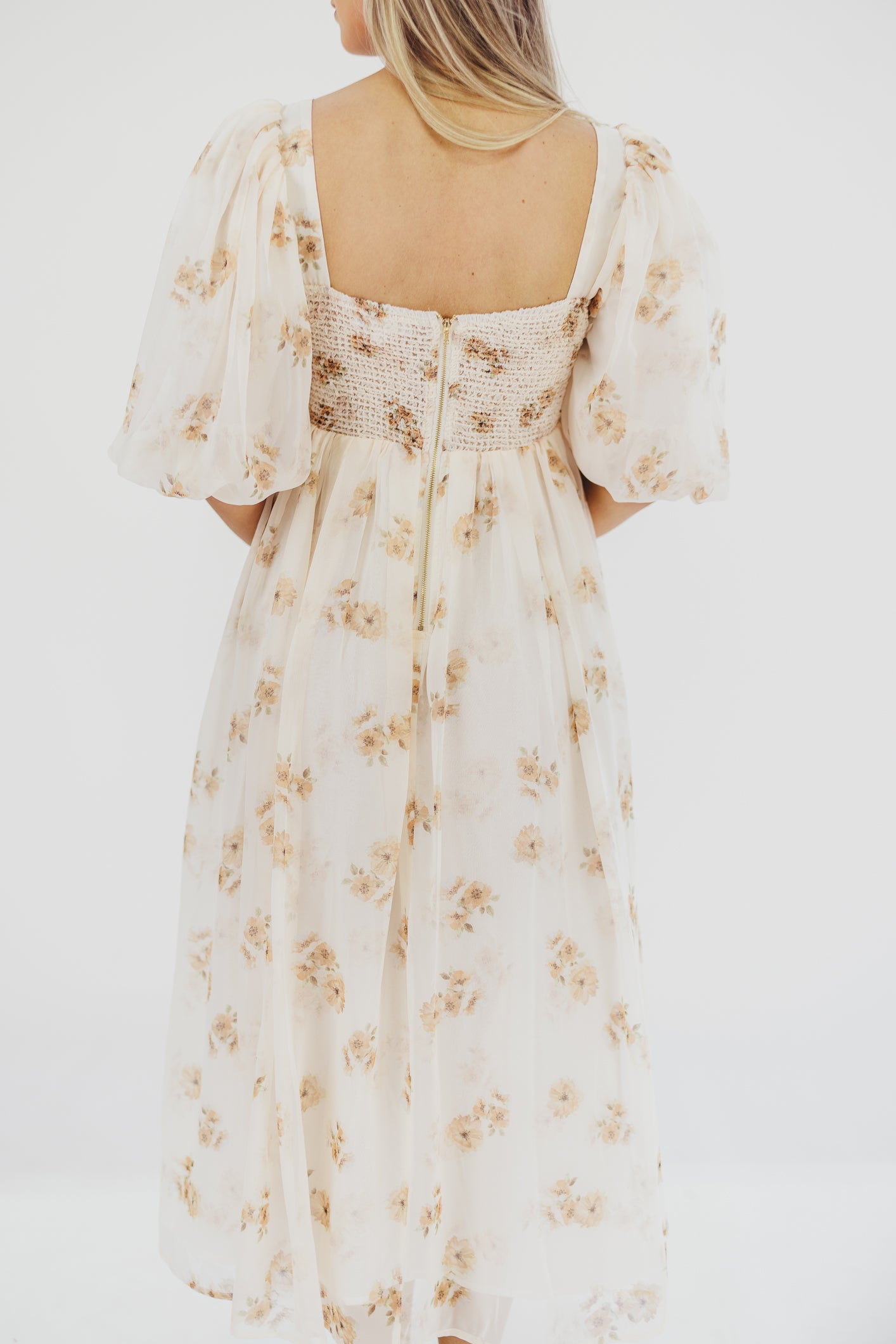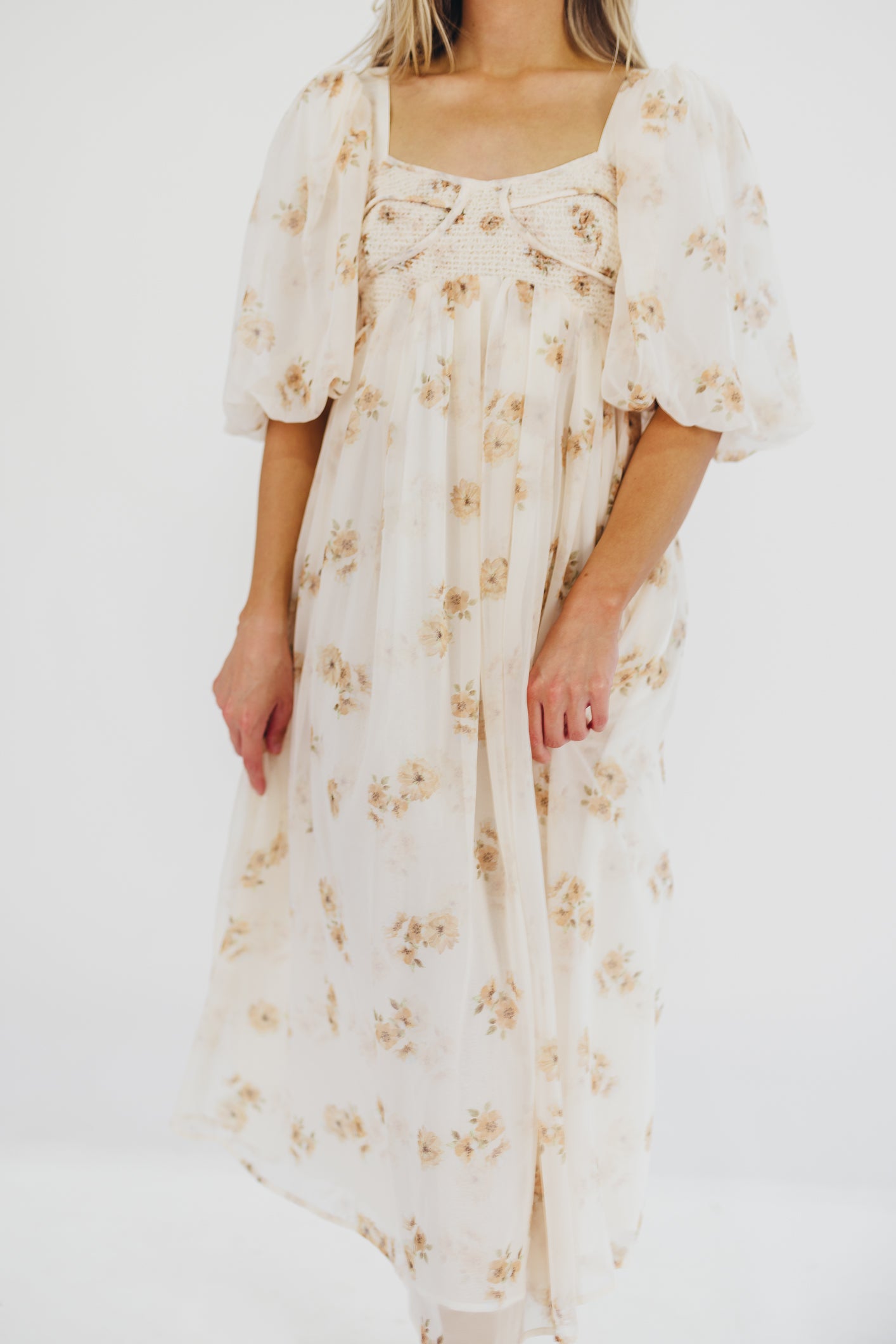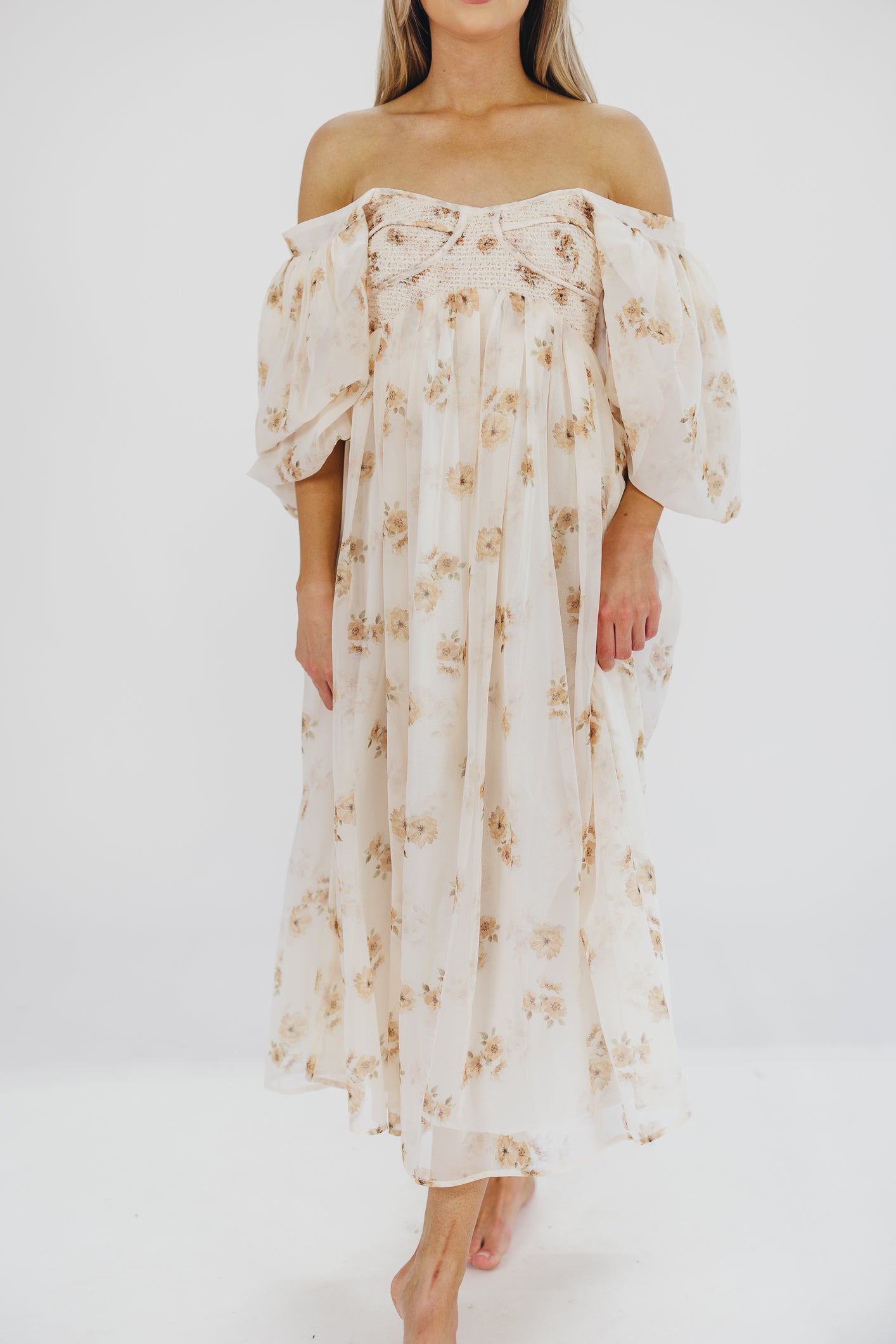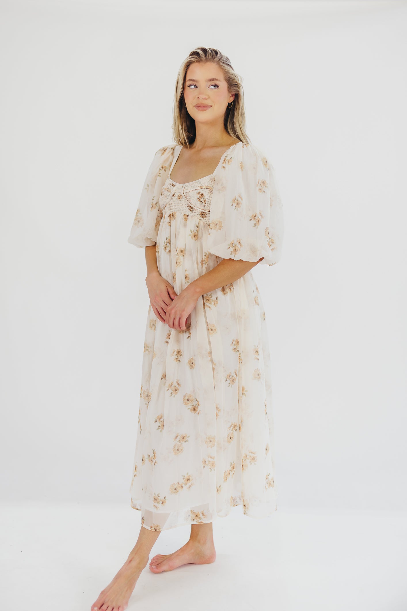 Harlow Maxi Dress in Taupe Floral - Bump Friendly & Inclusive Sizing (S-3XL)
