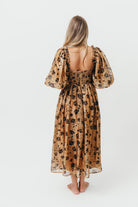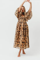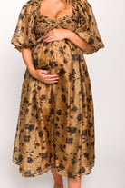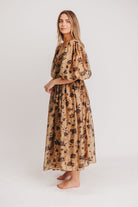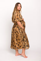 Harlow Camel & Black Floral Maxi Dress with Stretchy Neckline - Bump Friendly (Final Few)