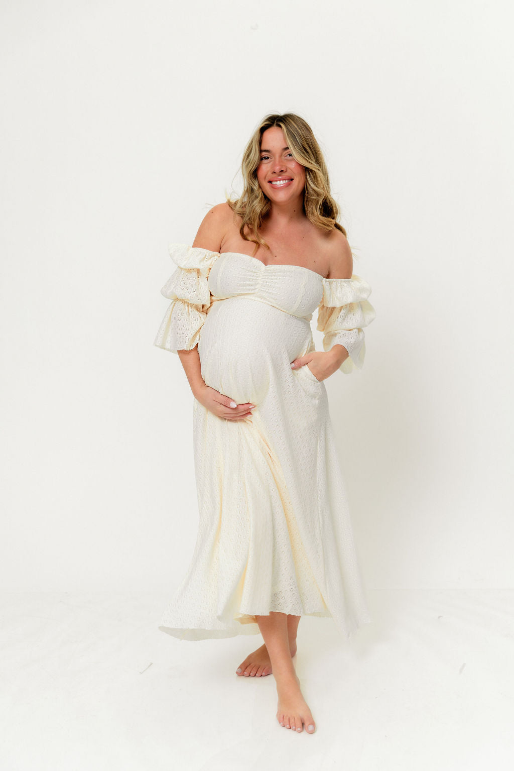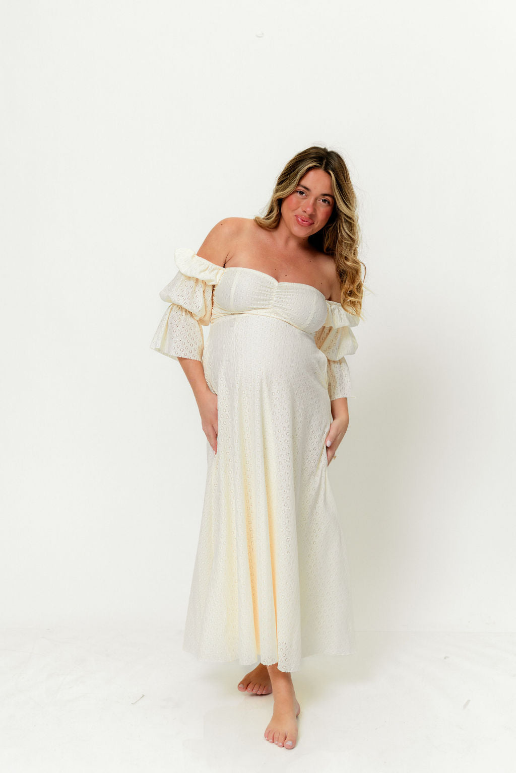 Katy Pleated Bodice Maxi Dress in Cream - Bump Friendly (Last Restock of the Year)