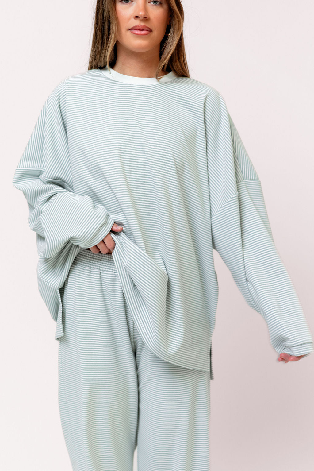 Naomi Striped Oversized Fleece Long Sleeve Top in Blush - Bump Friendly *2/4 PRE-ORDER*