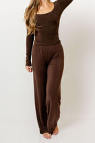 GARMENT DETAILS: Relaxed fit lounge pants with a long, wide leg and elasticated waistband.