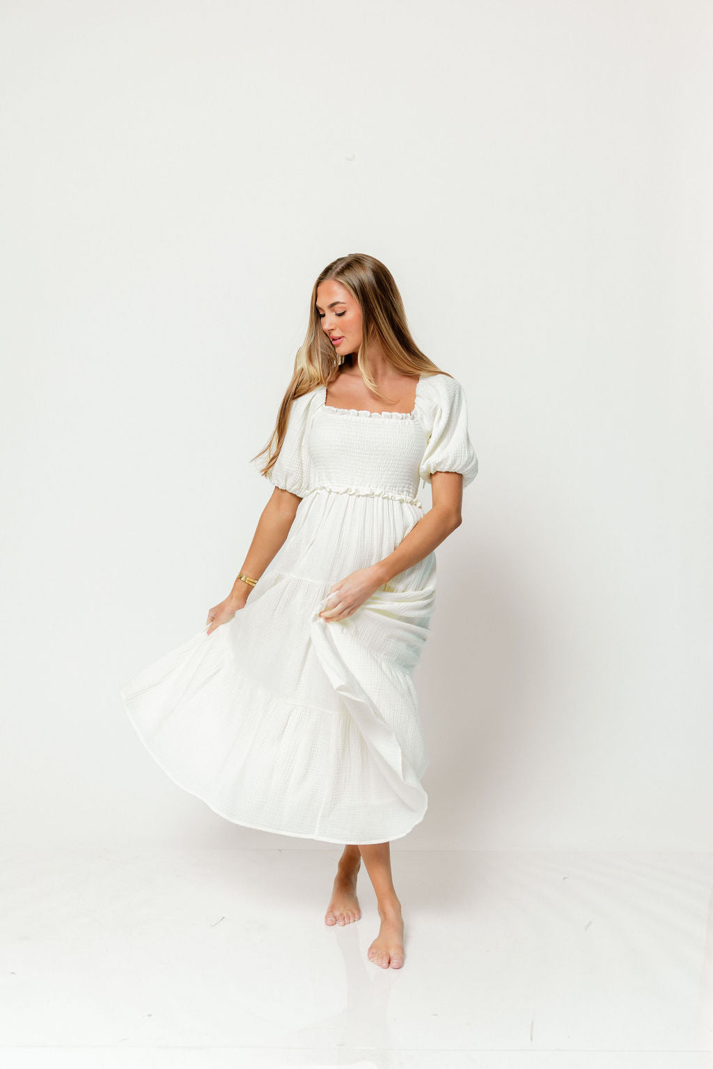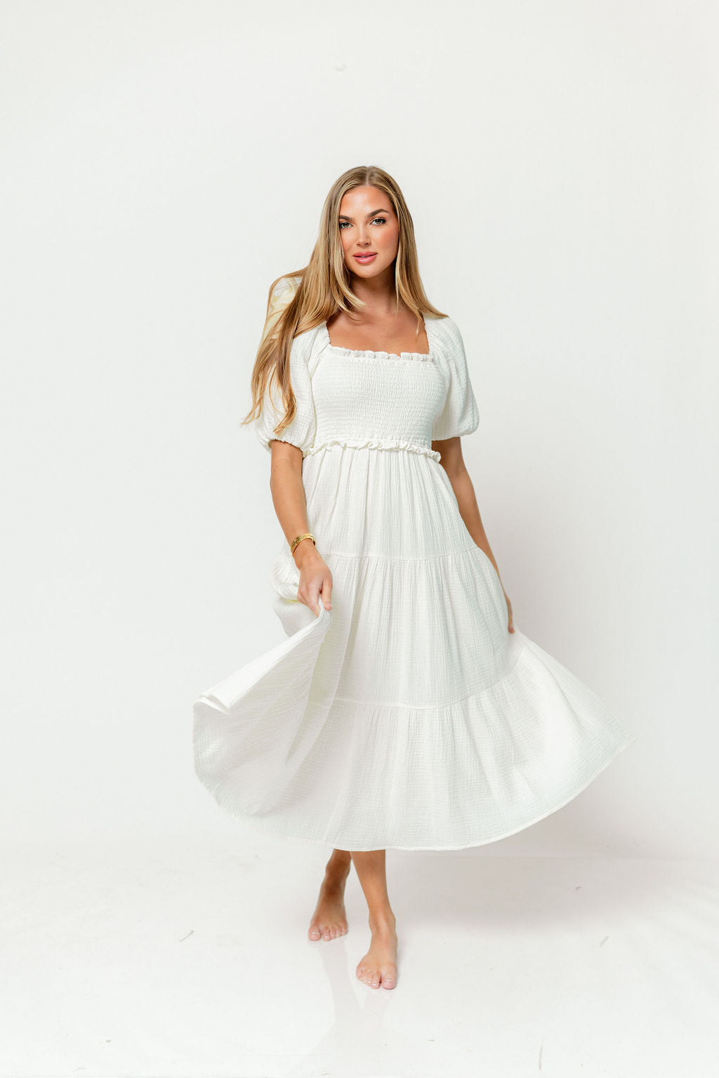 Elena 100% Cotton Midi Dress in Cream *12/27 PRE-ORDER*