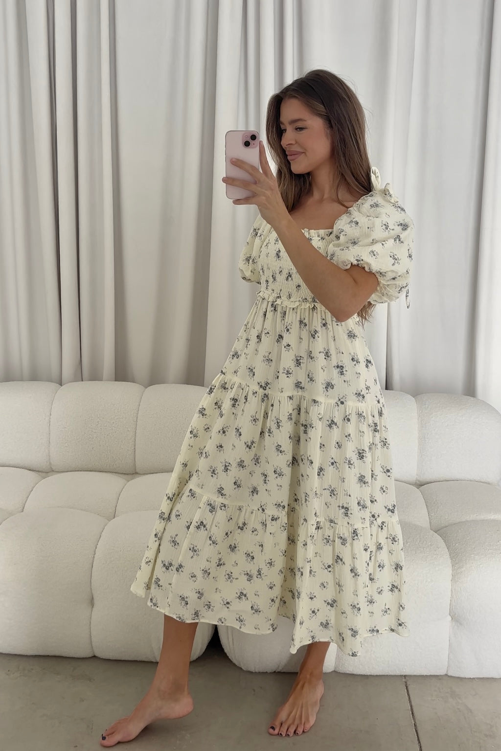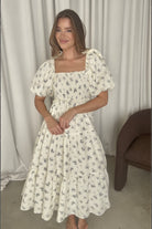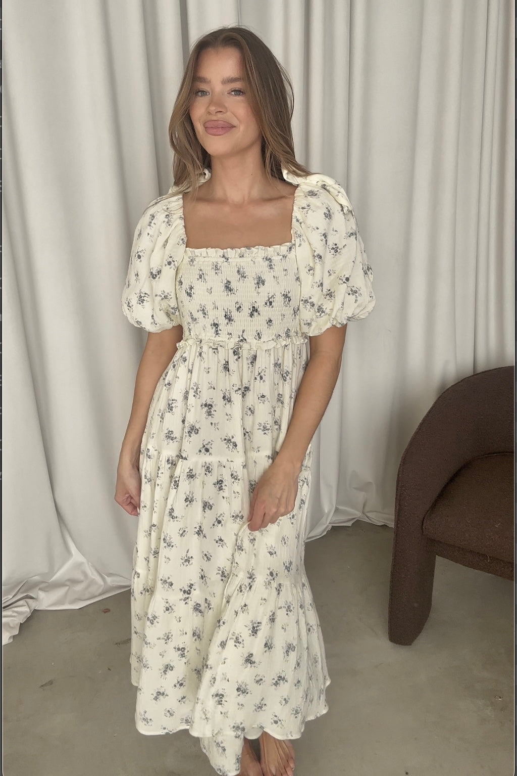 Elena Midi Dress in Off White/Blue Floral *1/23 PRE-ORDER*
