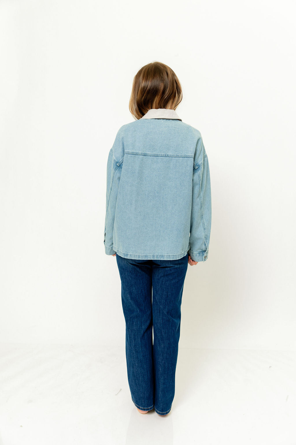 Jones Contrast Collar Light Wash Denim Jacket in Light Denim