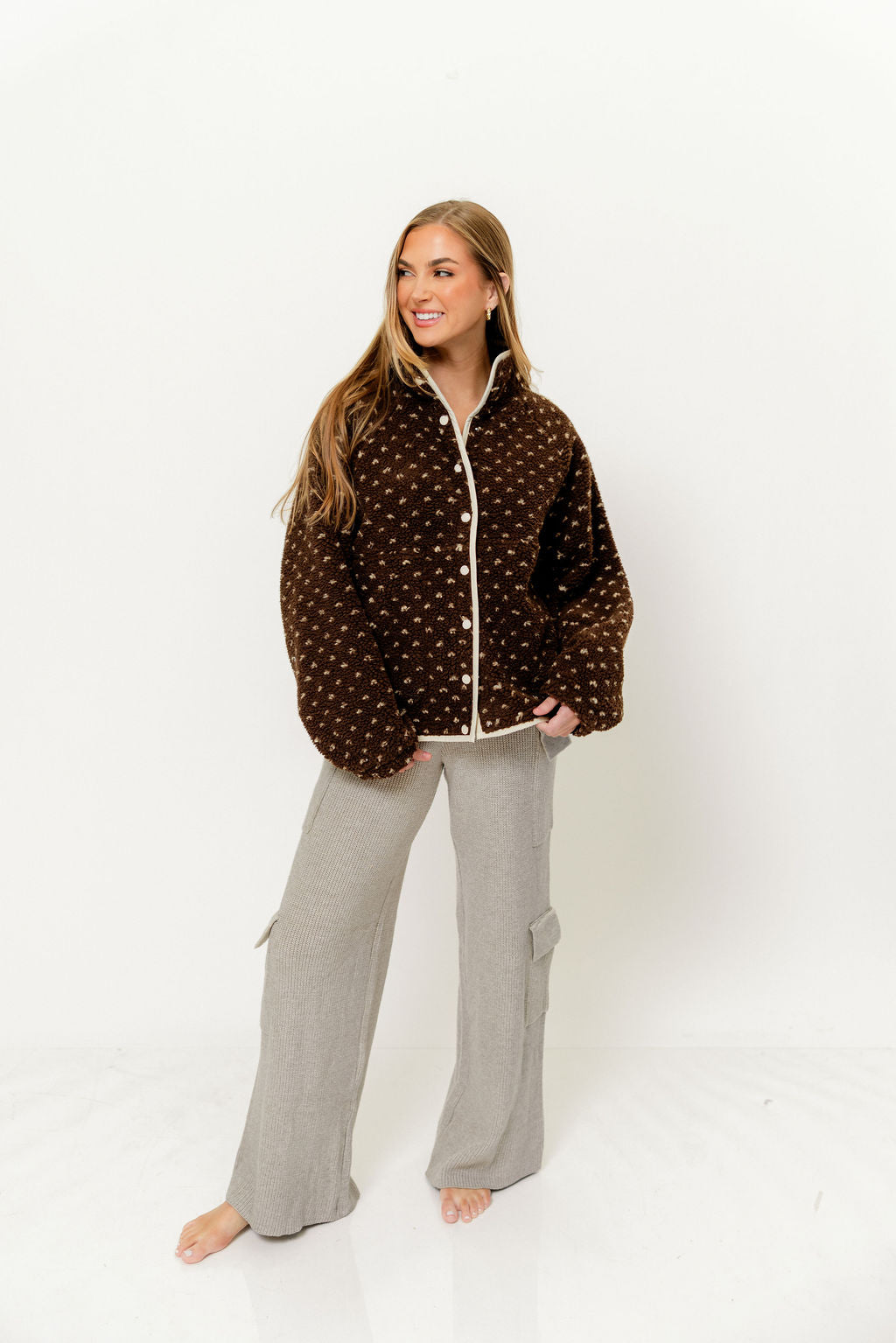 Hop on the cute jacket trend this season with our new Kade Fleece Jacket! This delightful little jacket offers a high-pile fleece construction and relaxed fit, perfect for layering over your favorite athleisure set.