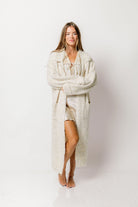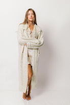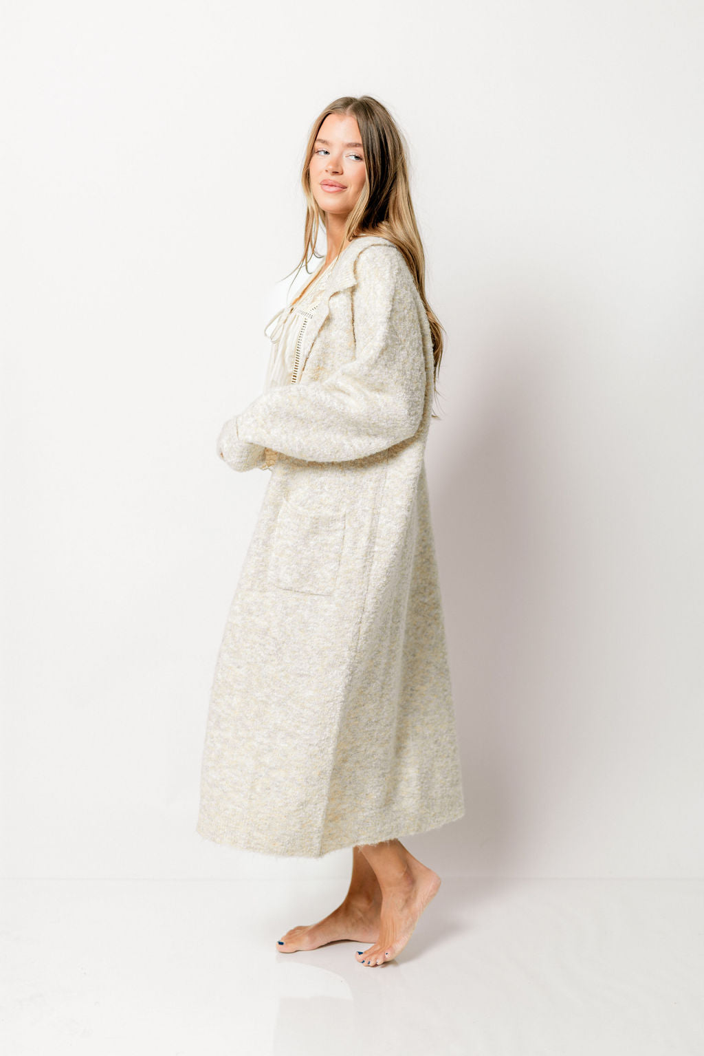 GARMENT DETAILS: Soft wool-blend cardigan in a long duster length. Features a stylish collared neckline, dropped shoulders, and side patch pockets.