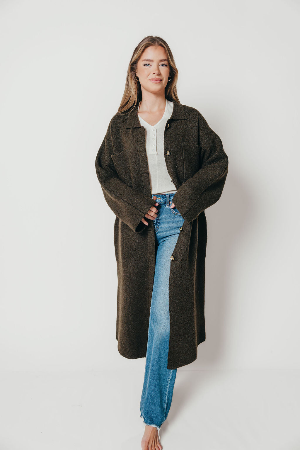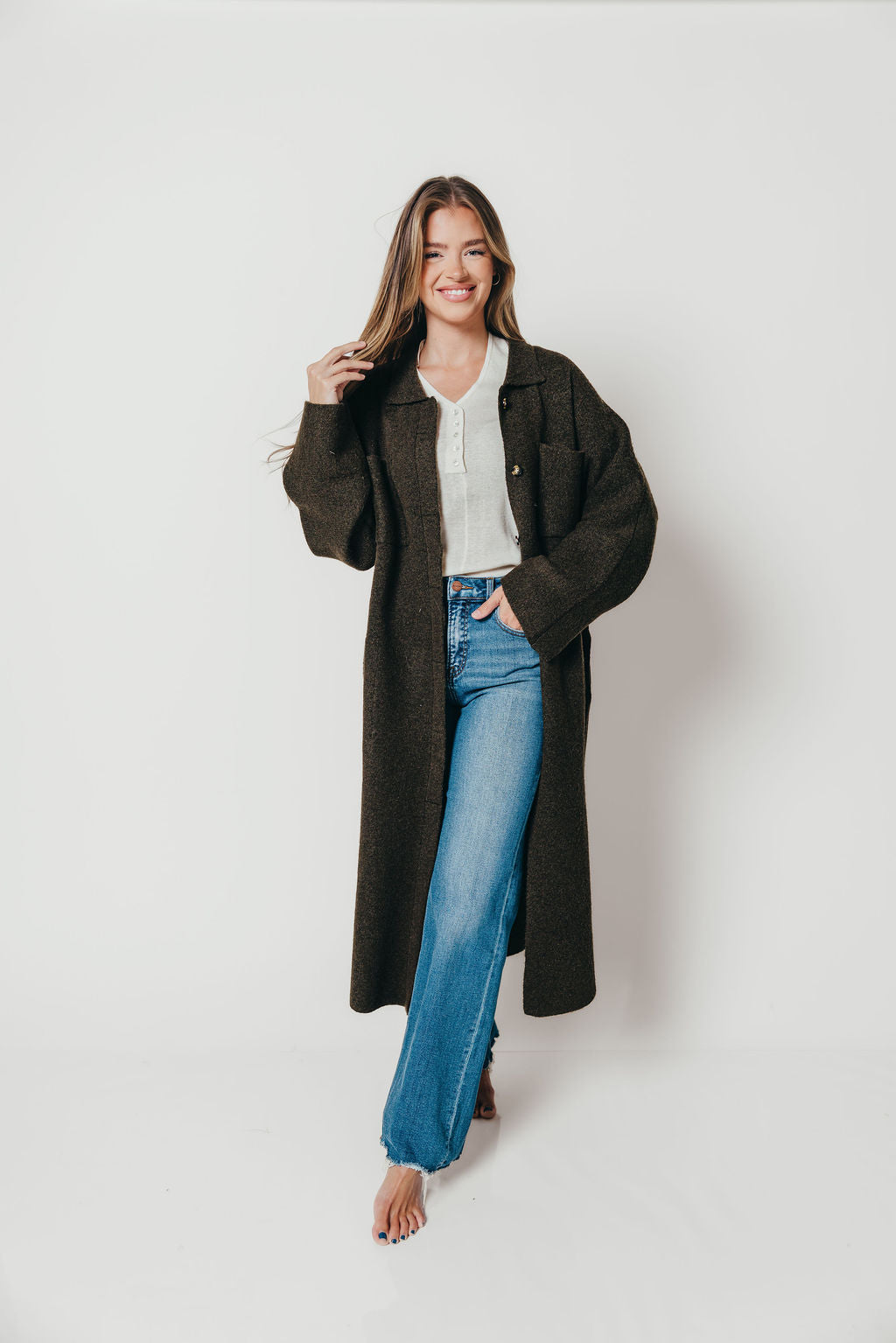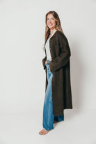 Dagny Hidden Button Maxi Jacket in Tapenade