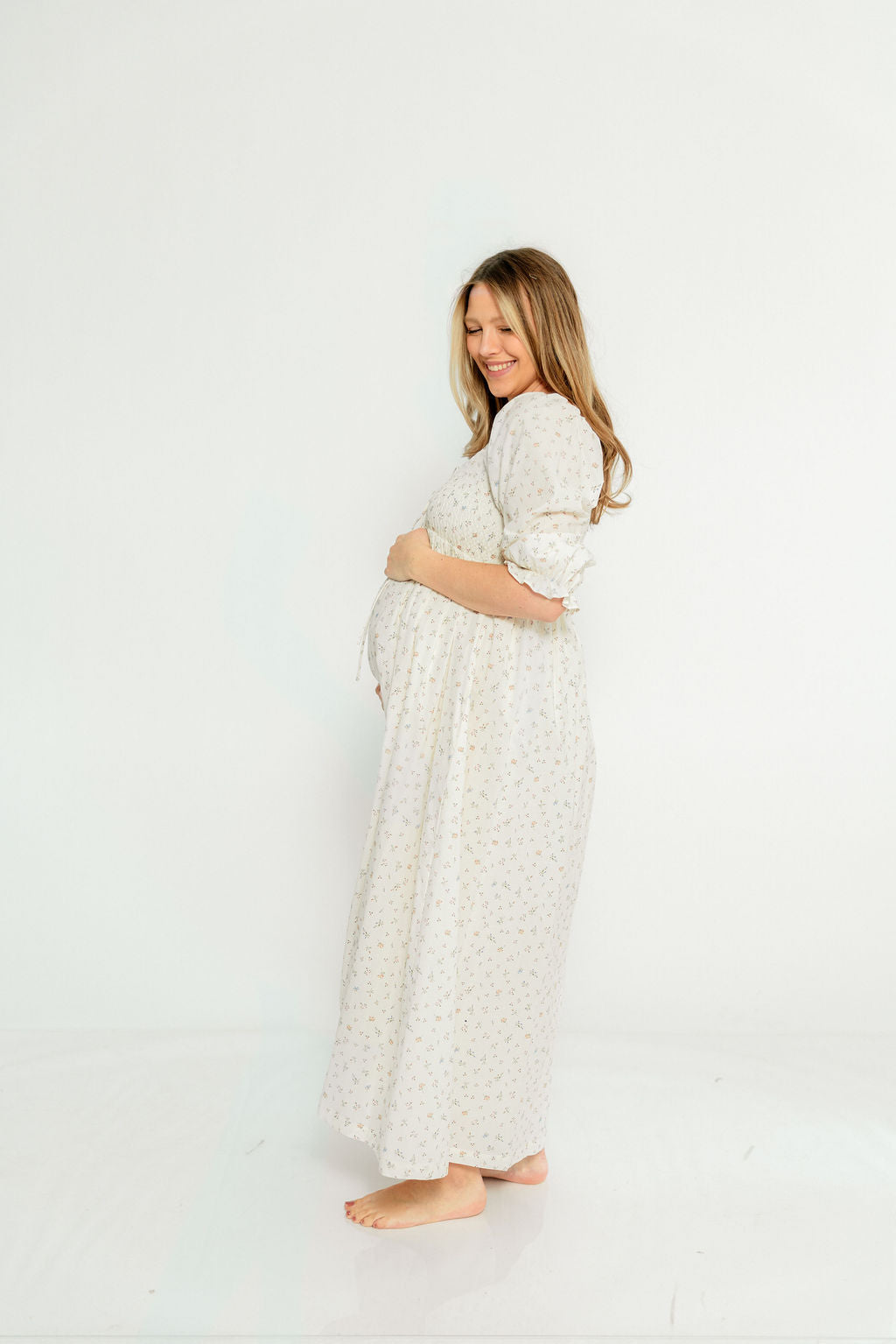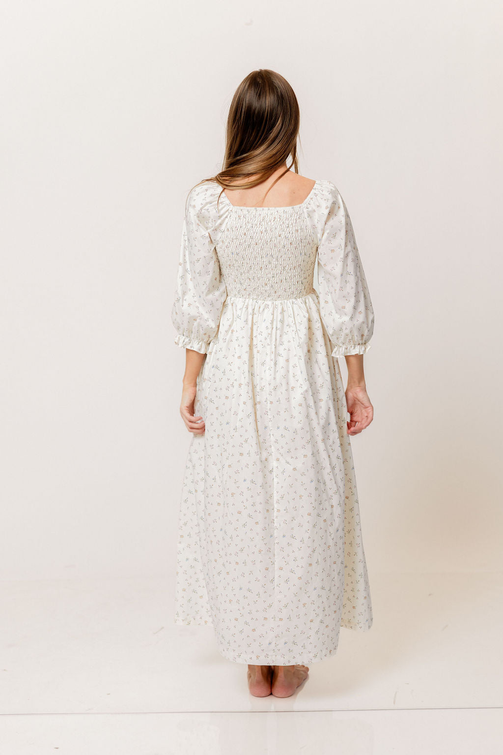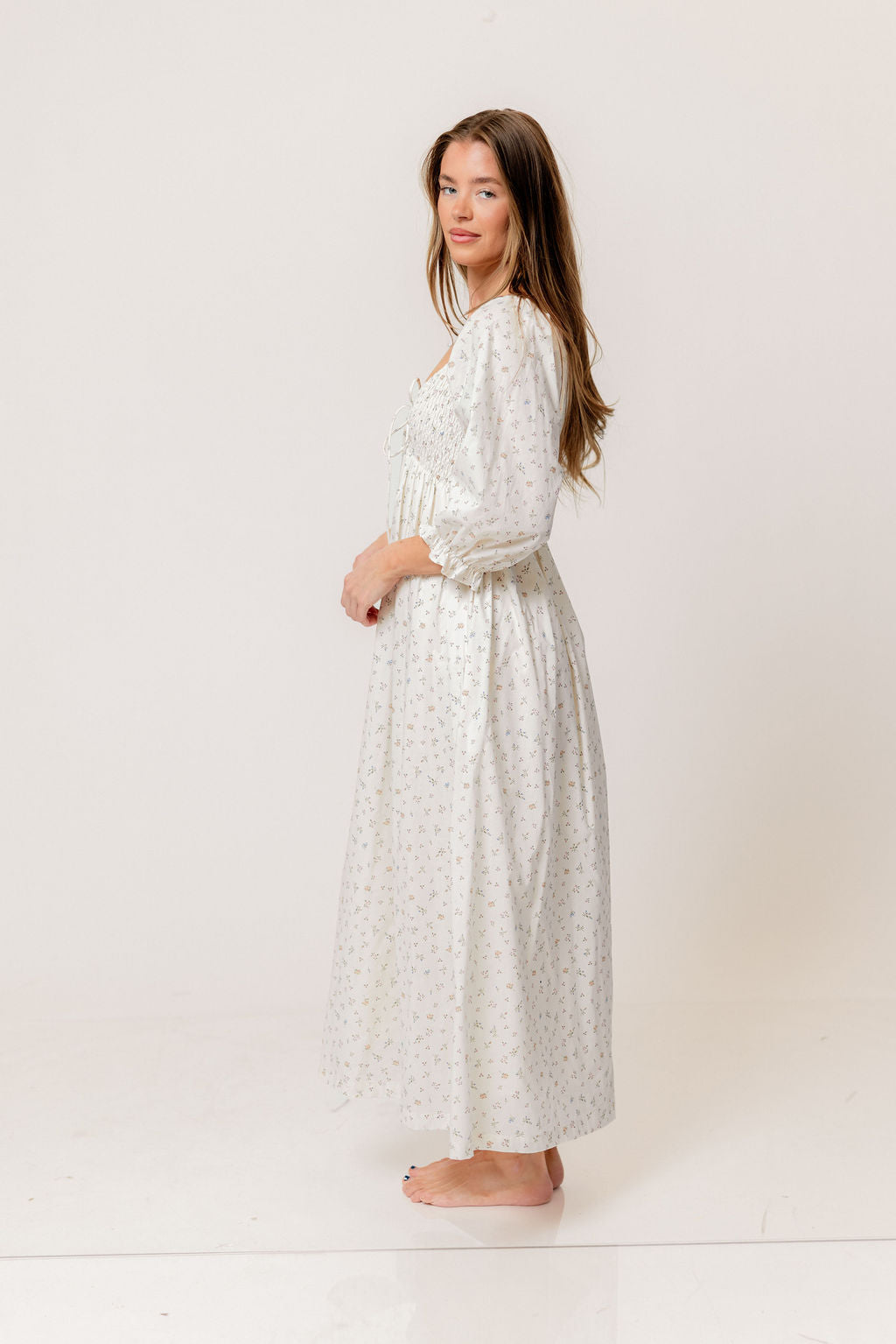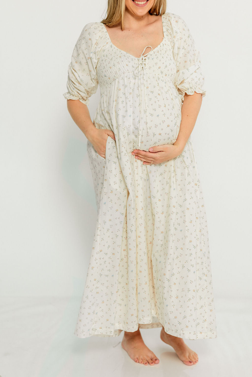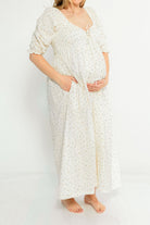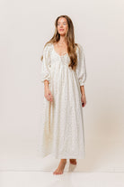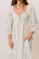 Cecilia 100% Cotton Smocked Maxi Dress in Flowery Ivory (Lined) - Bump Friendly *2/20 PRE-ORDER*