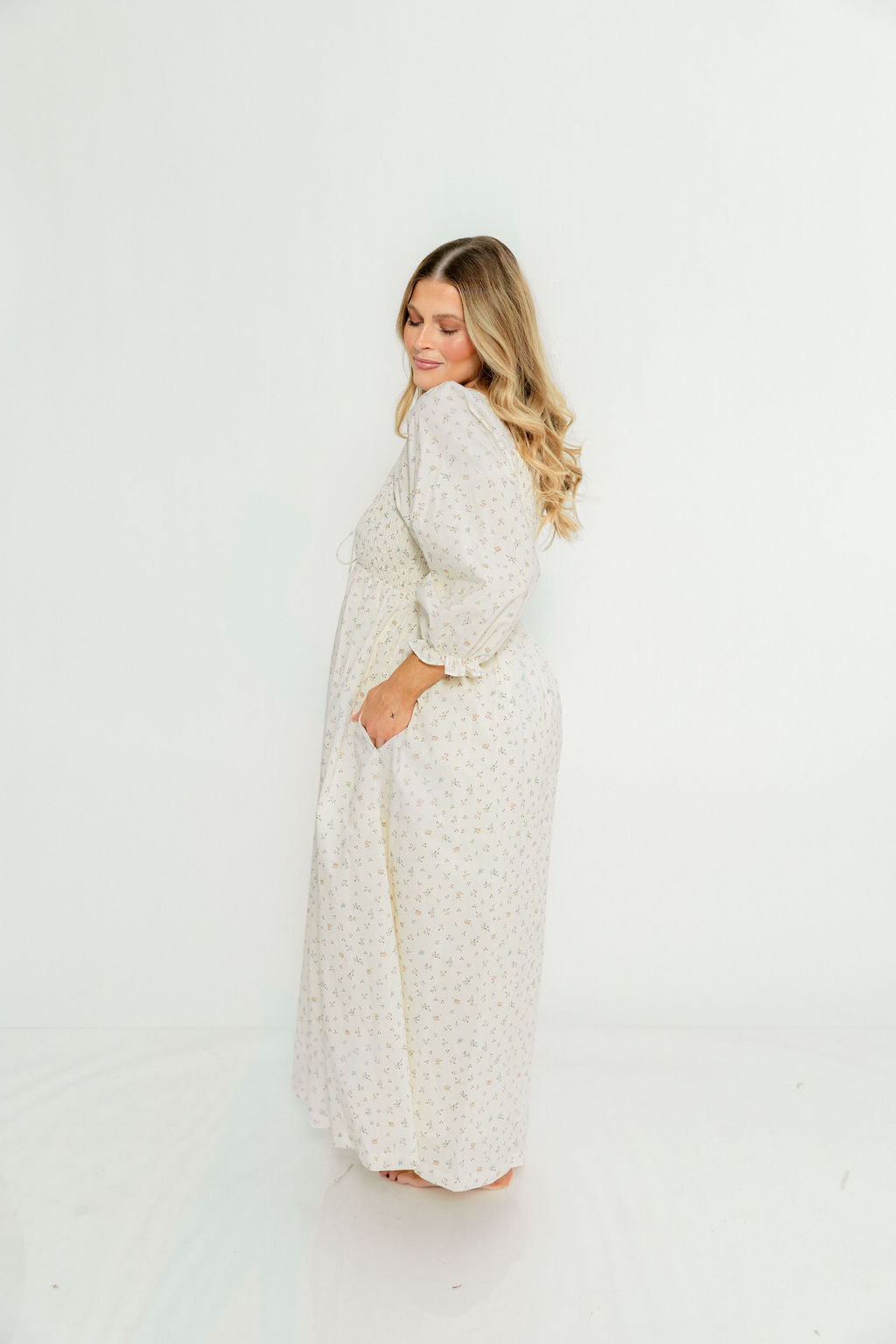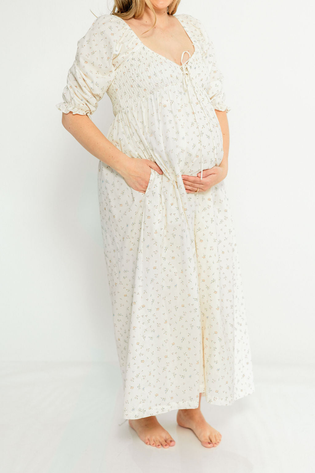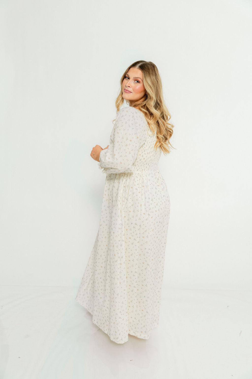Cecilia 100% Cotton Smocked Maxi Dress in Flowery Ivory (Lined) - Bump Friendly *2/20 PRE-ORDER*