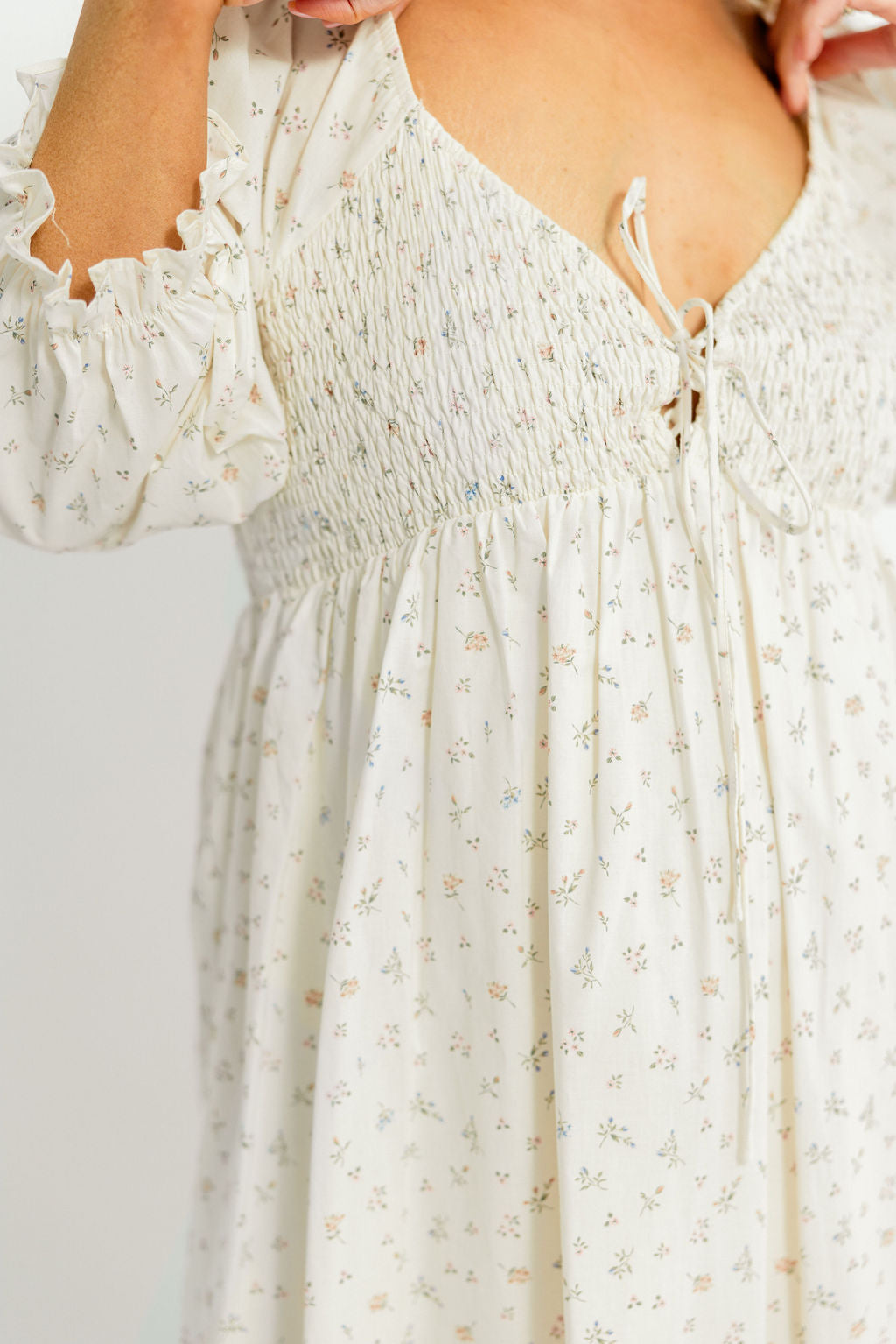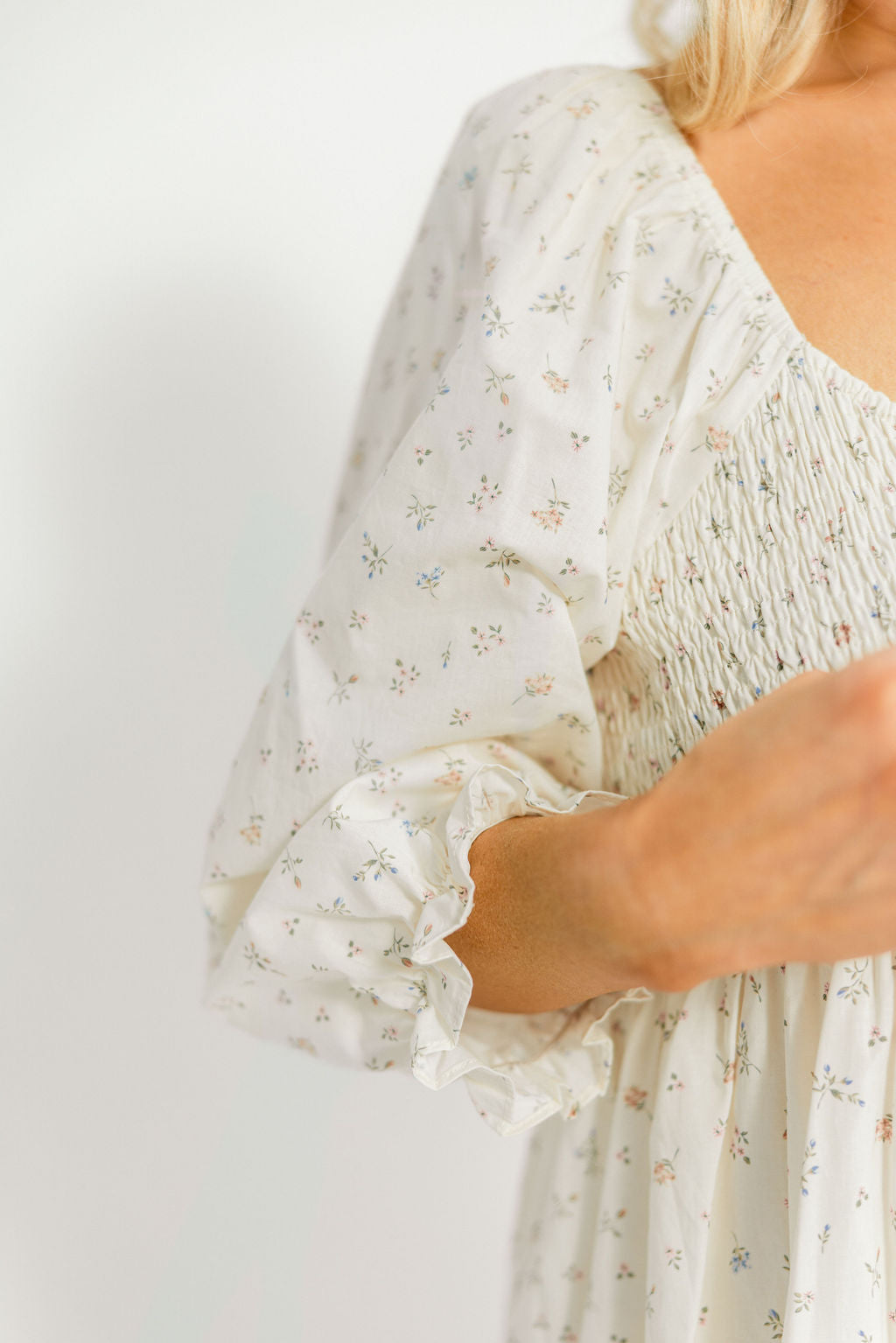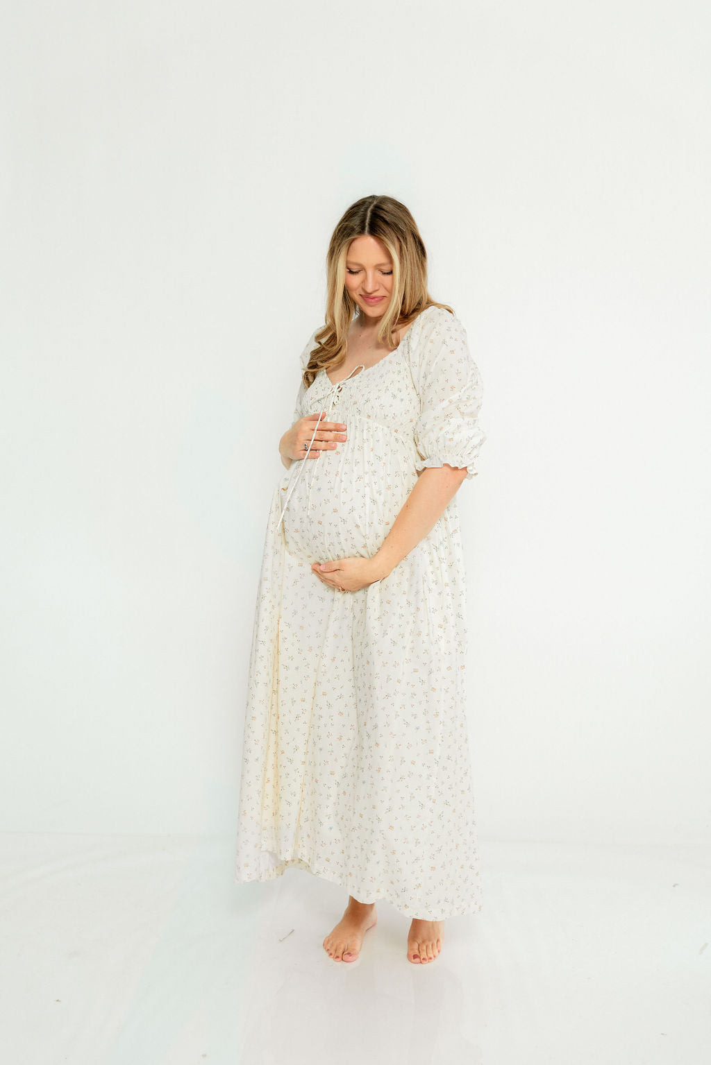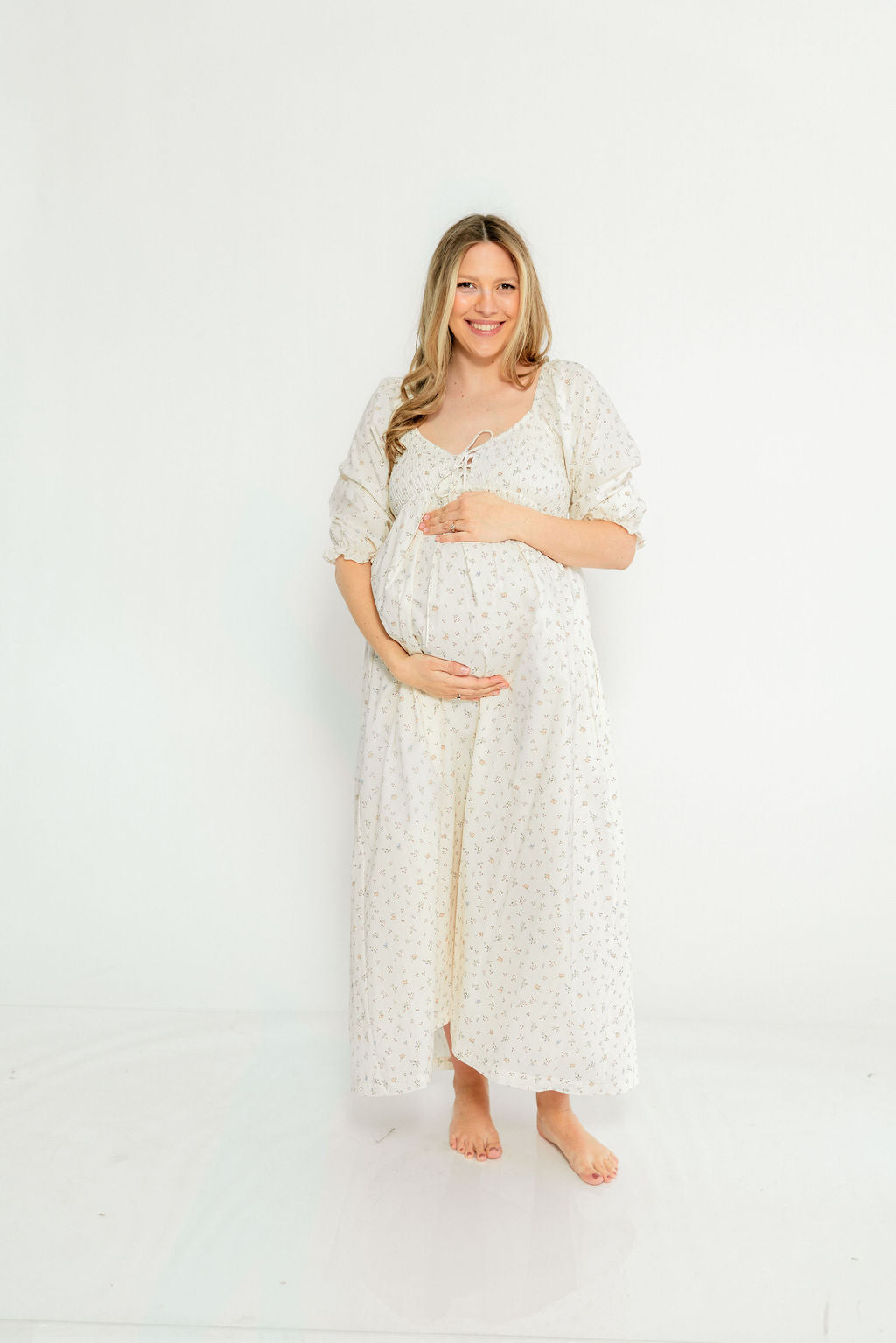 Cecilia 100% Cotton Smocked Maxi Dress in Flowery Ivory (Lined) - Bump Friendly *2/20 PRE-ORDER*