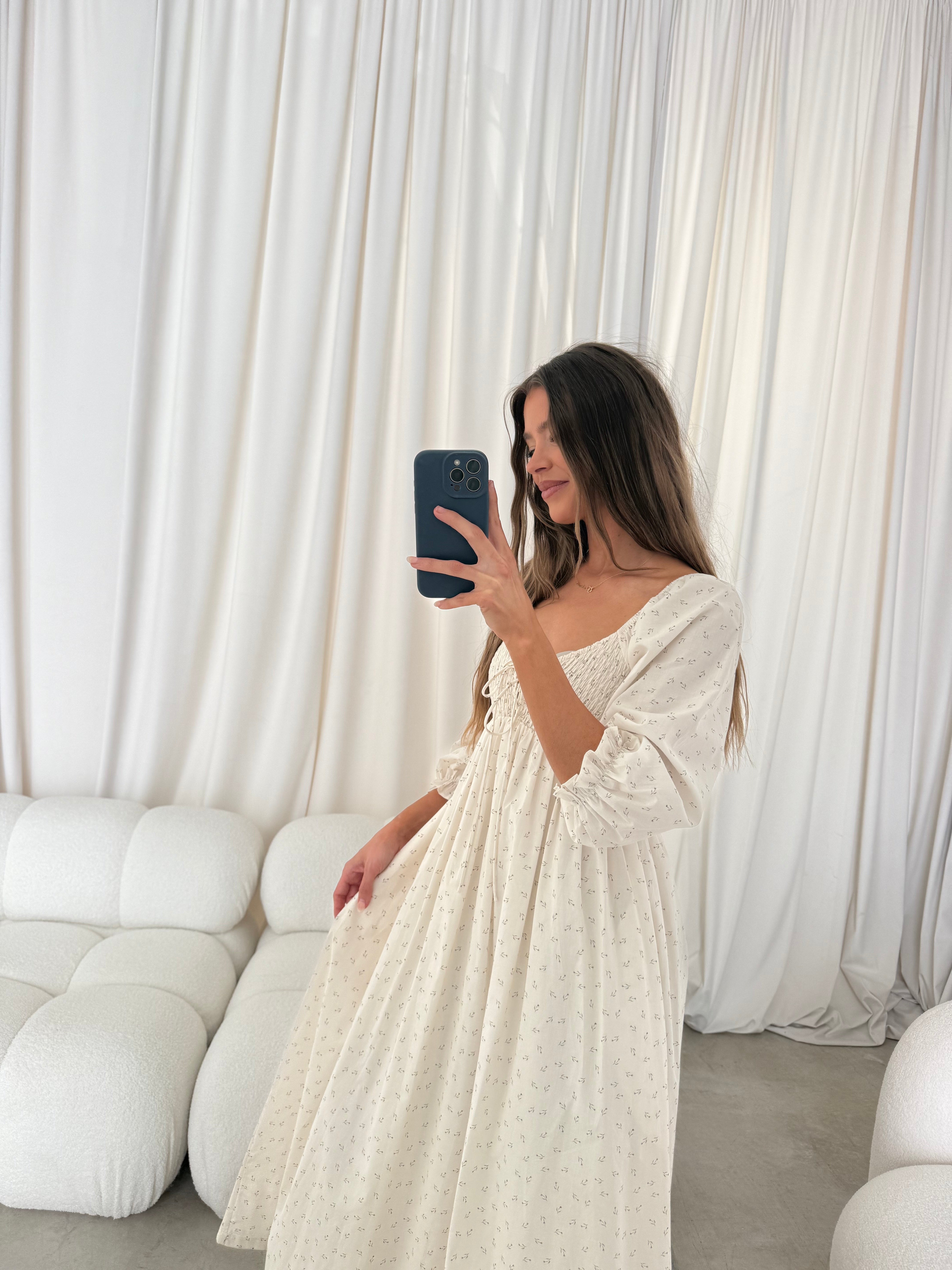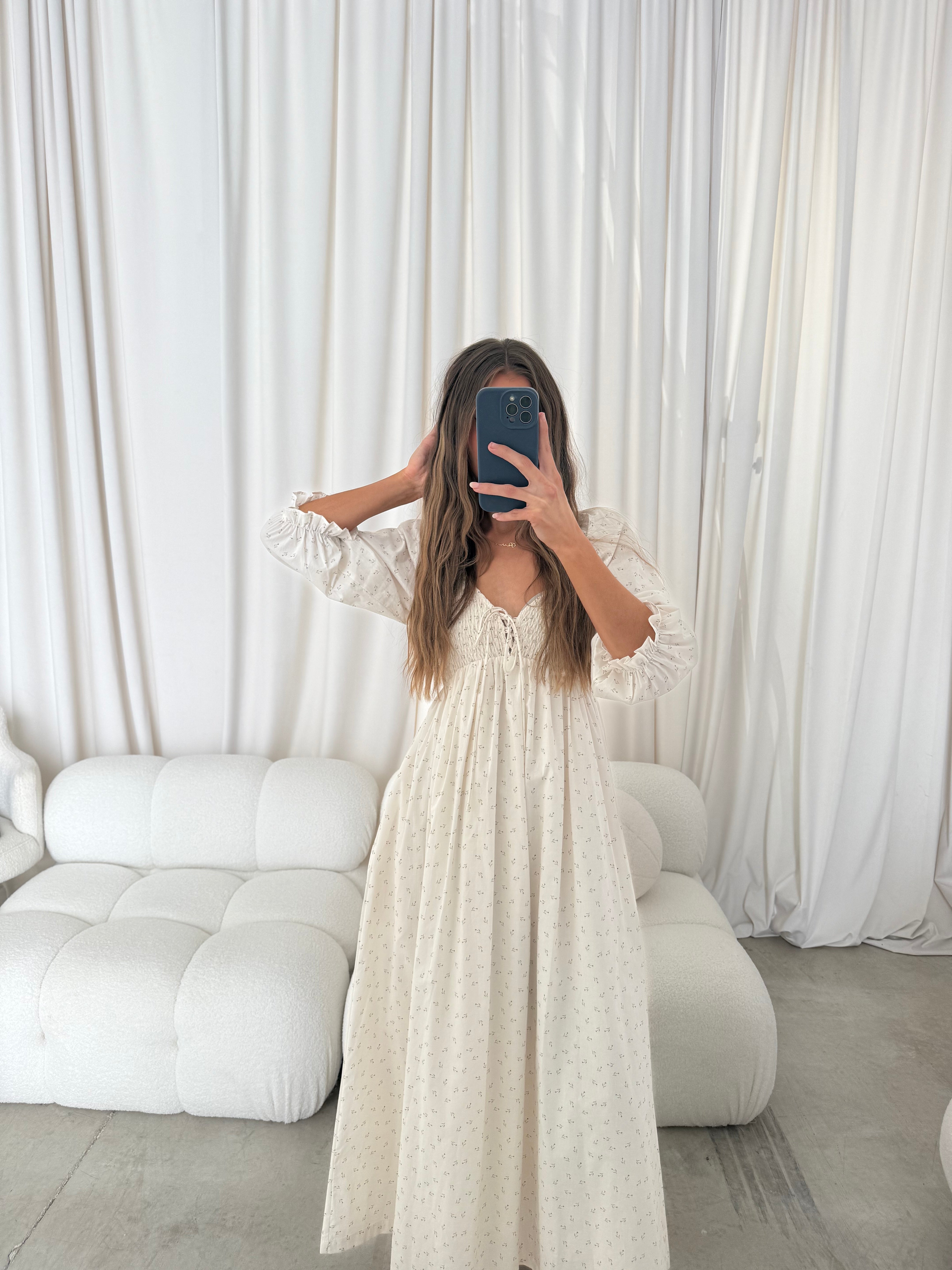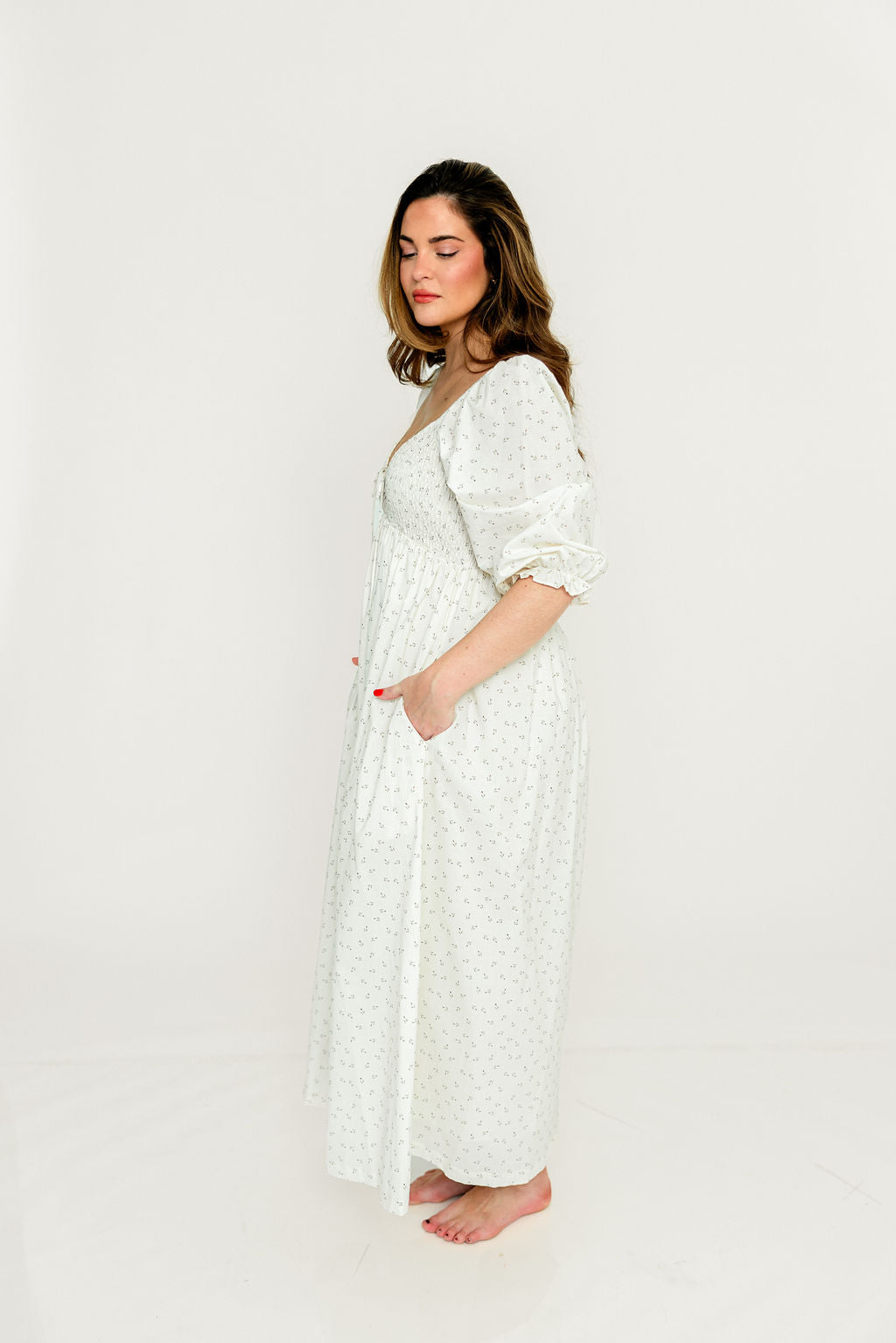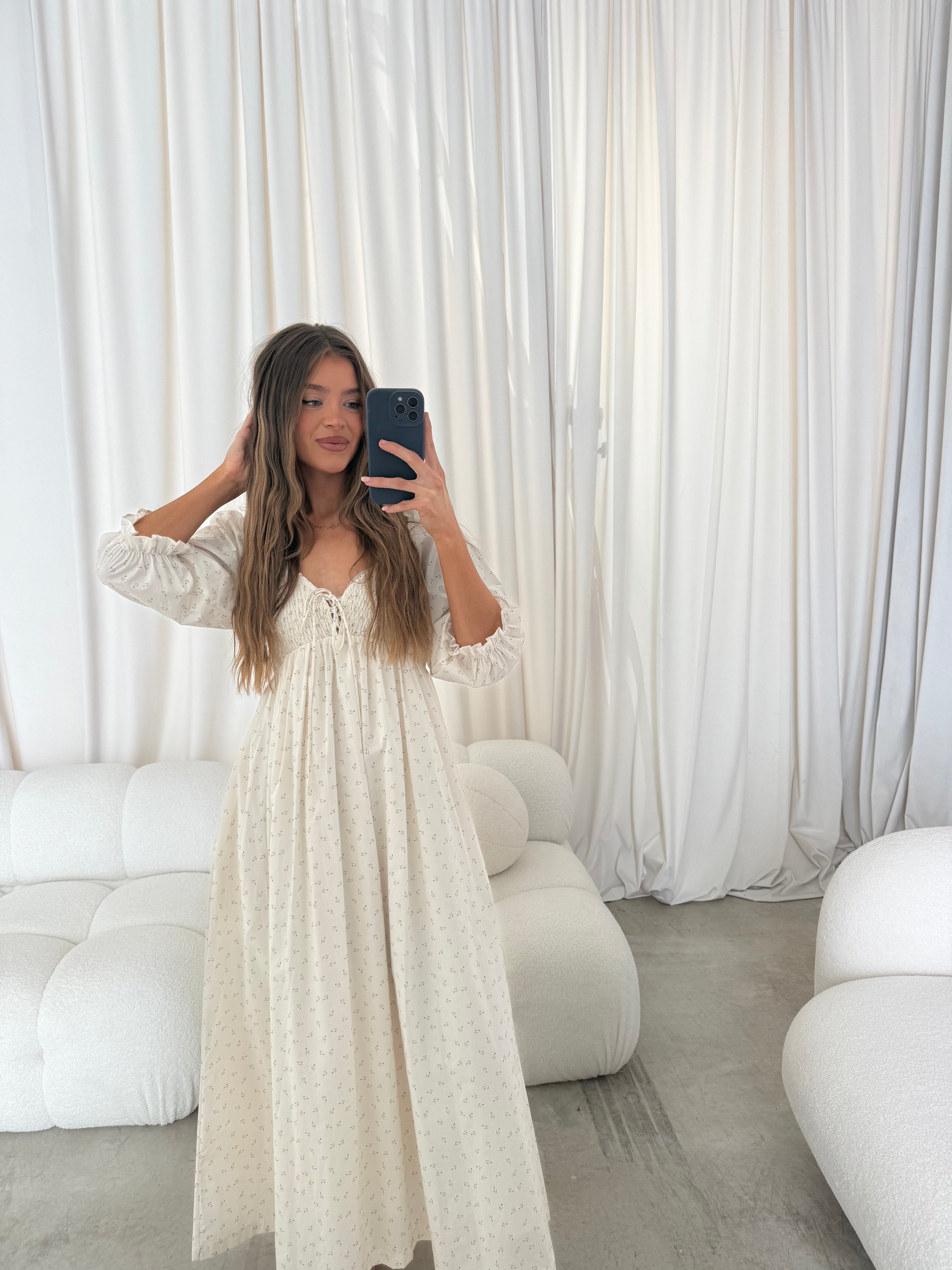Cecilia 100% Cotton Smocked Maxi Dress in Ivory Floral (Lined) - Bump Friendly