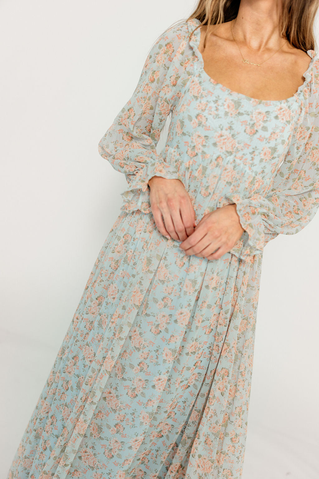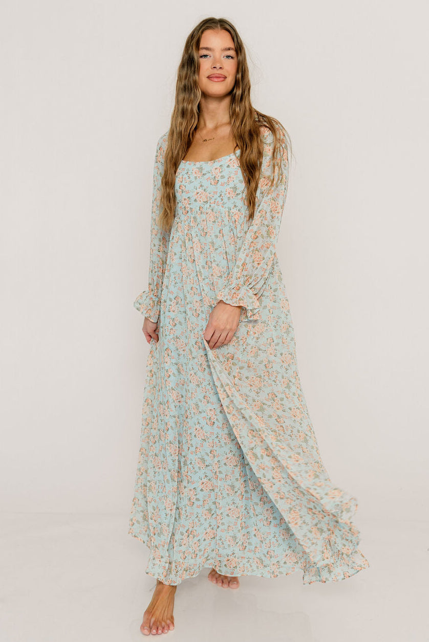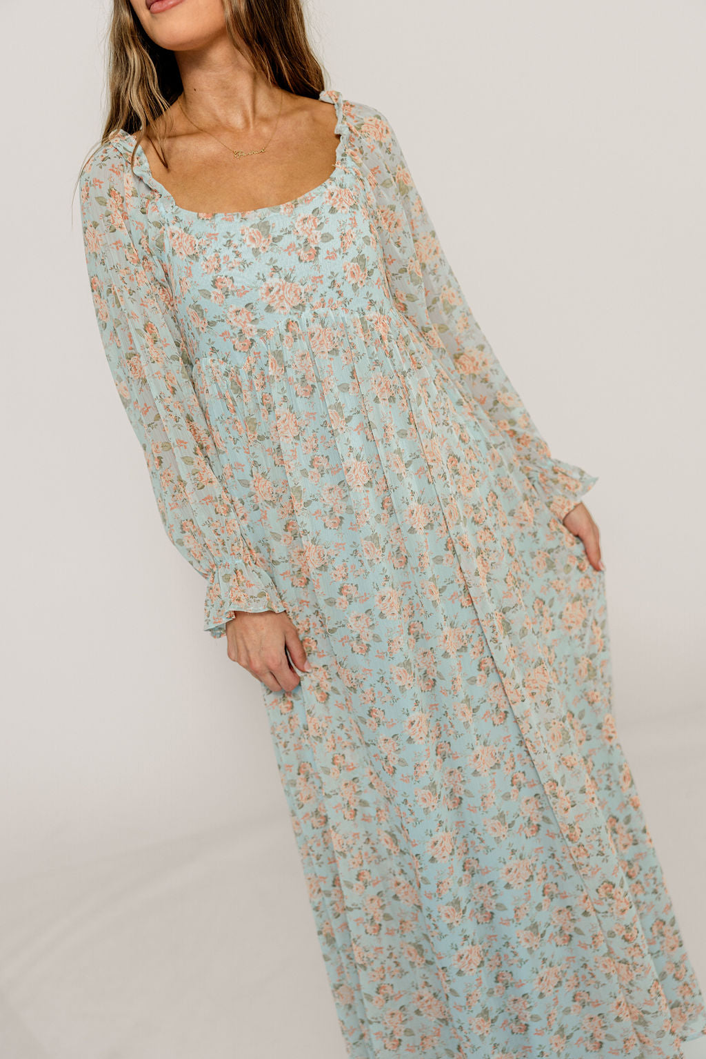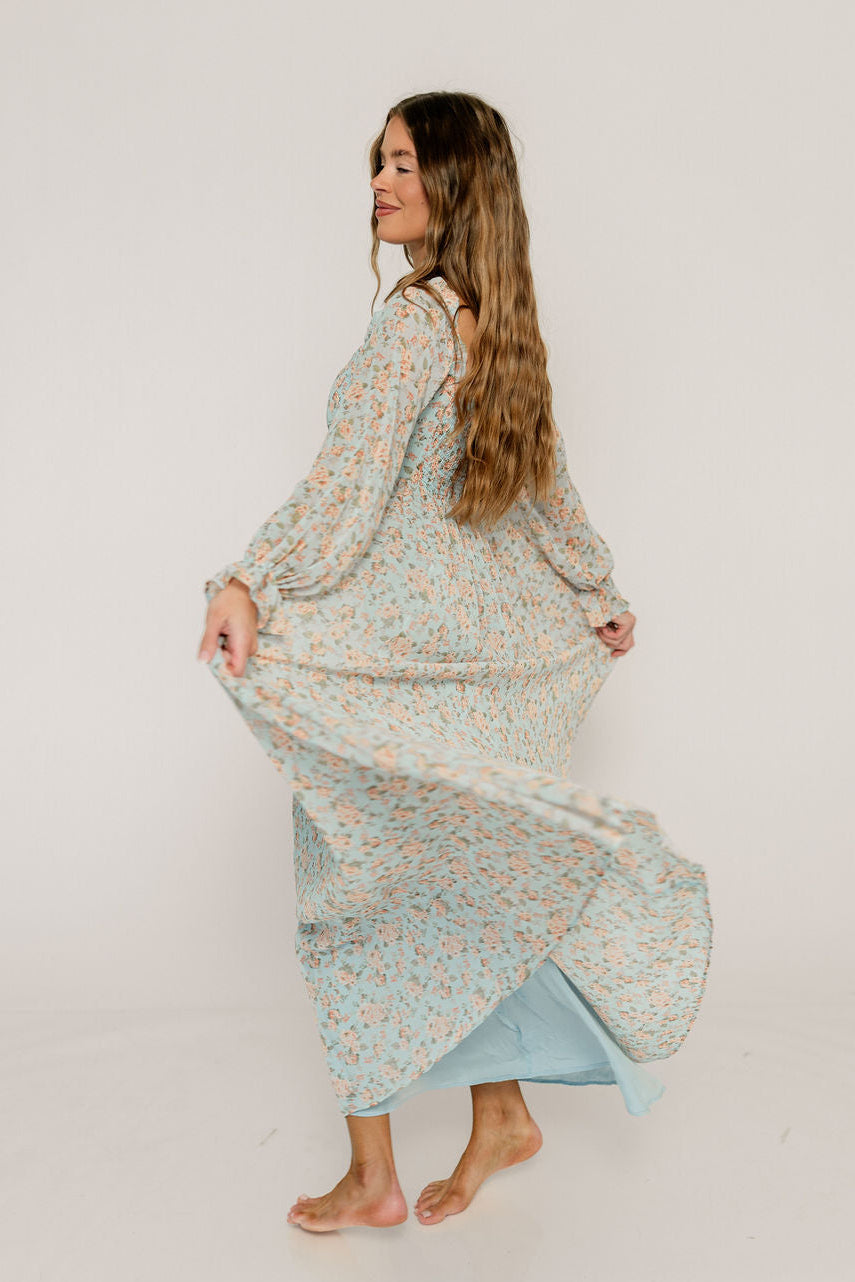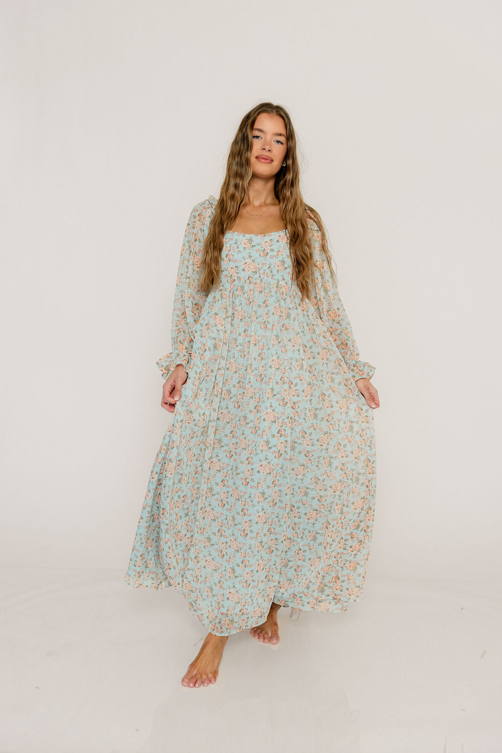 Loretta Maxi Dress in Light Blue Floral - Bump Friendly