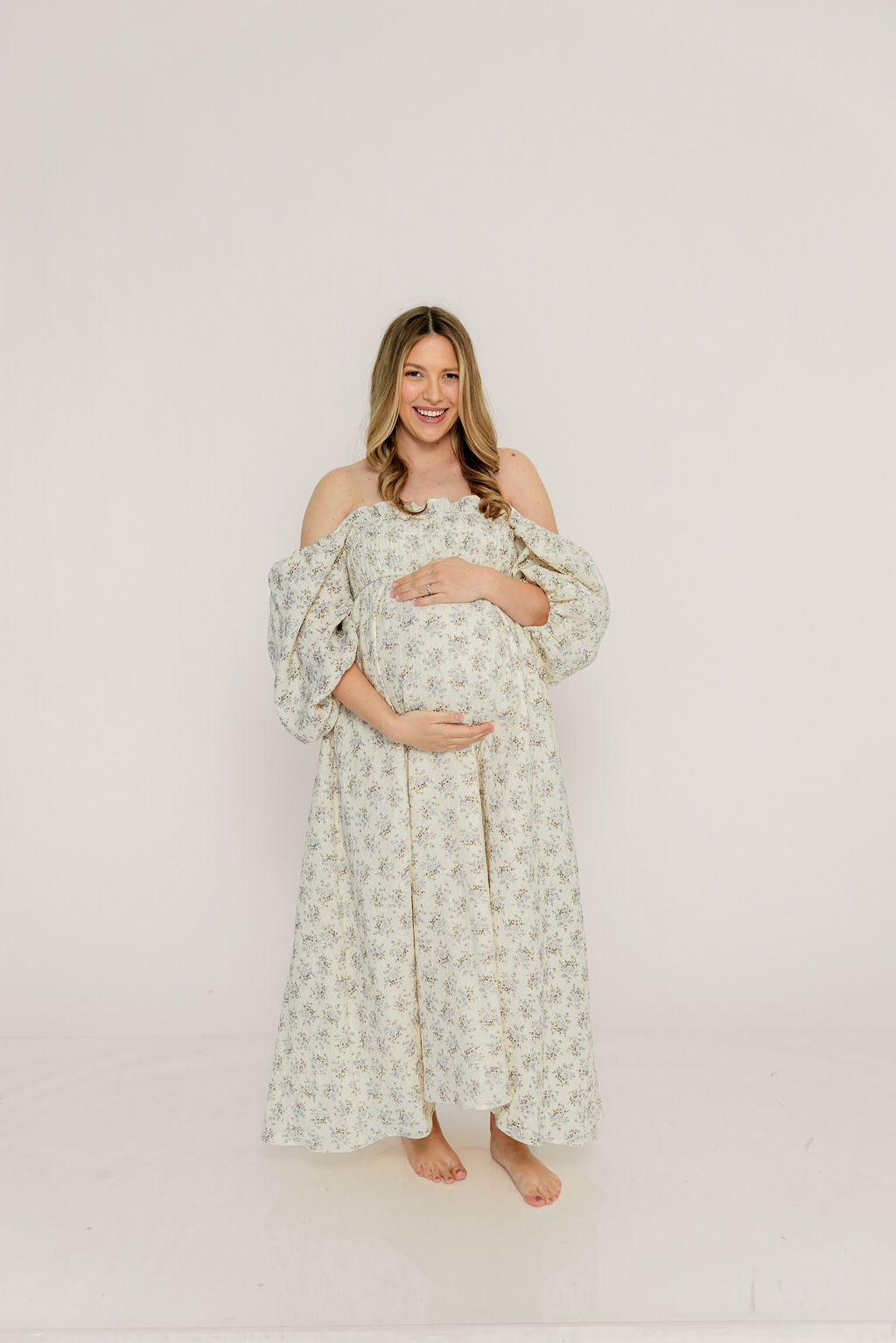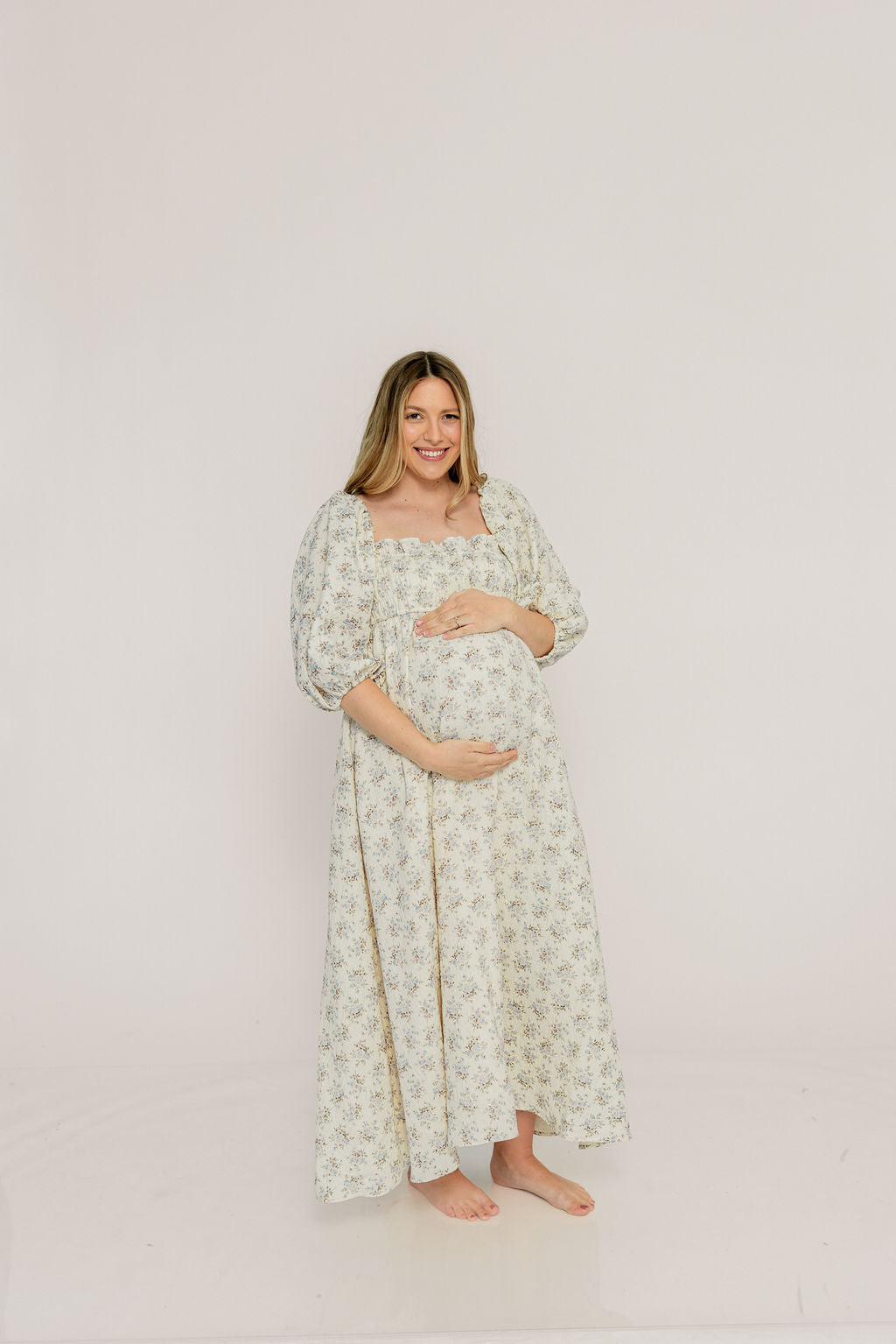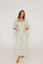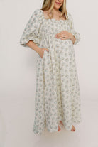Noa Premium 100% Cotton Maxi Dress in Dusty Blue Floral - Bump Friendly *2/20 PRE-ORDER*