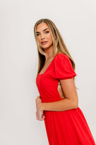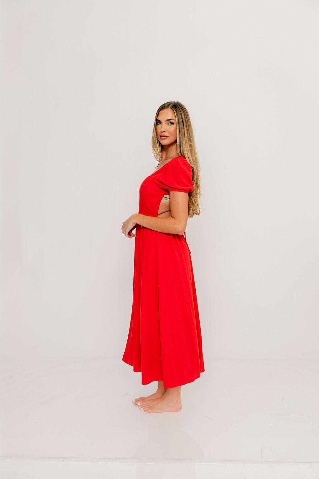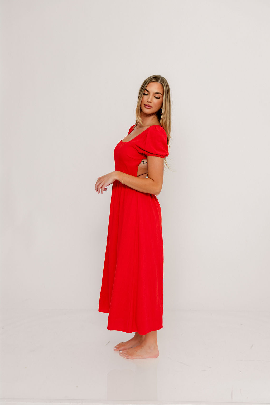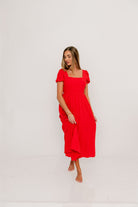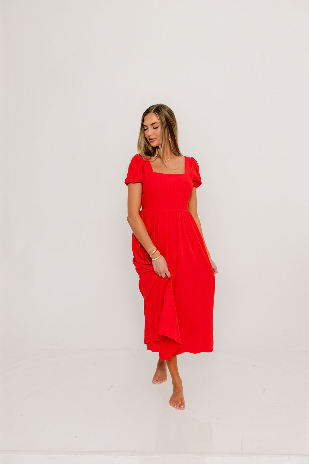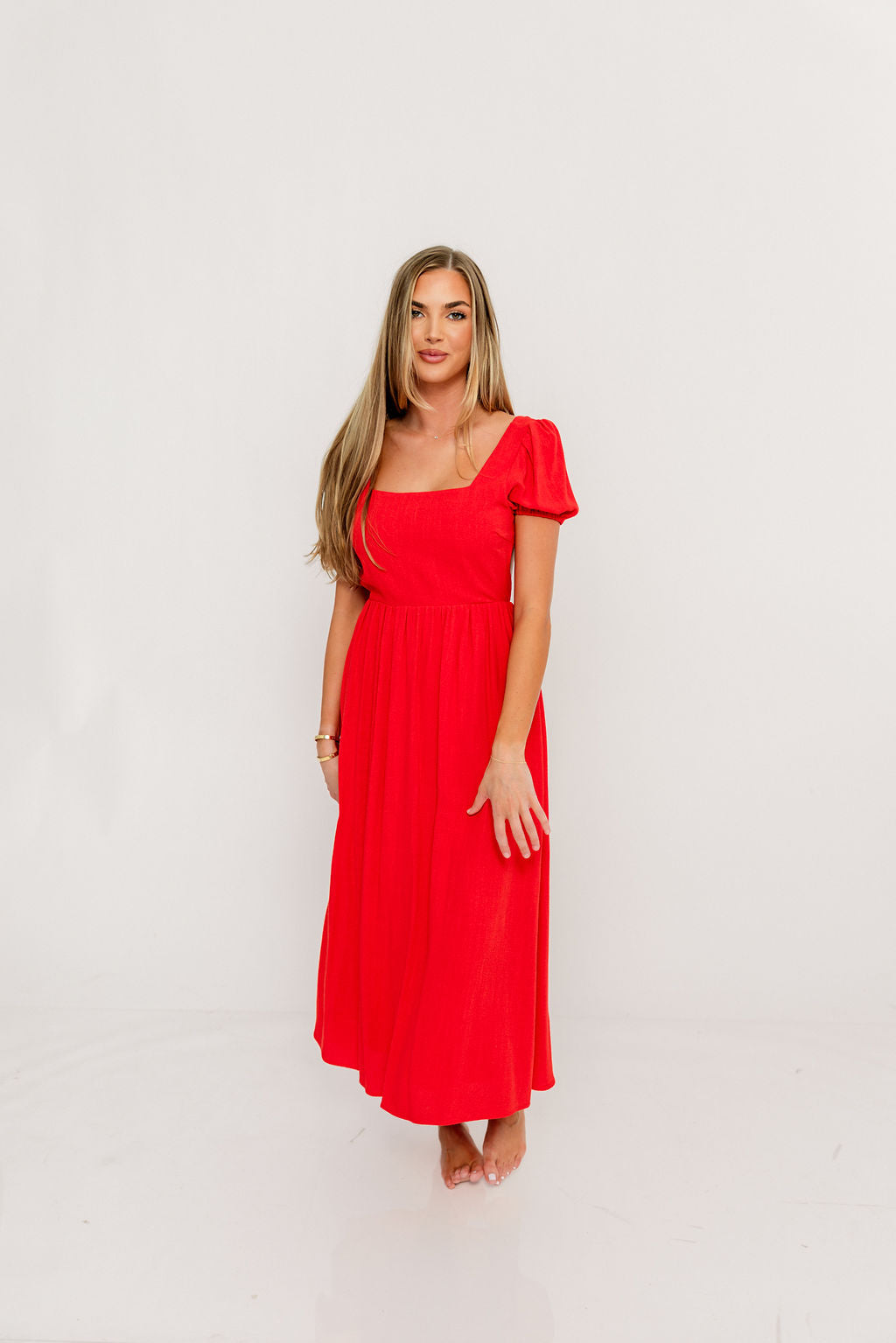 August Open Back Midi Dress in Poppy - Bump Friendly *2/27 PRE-ORDER*