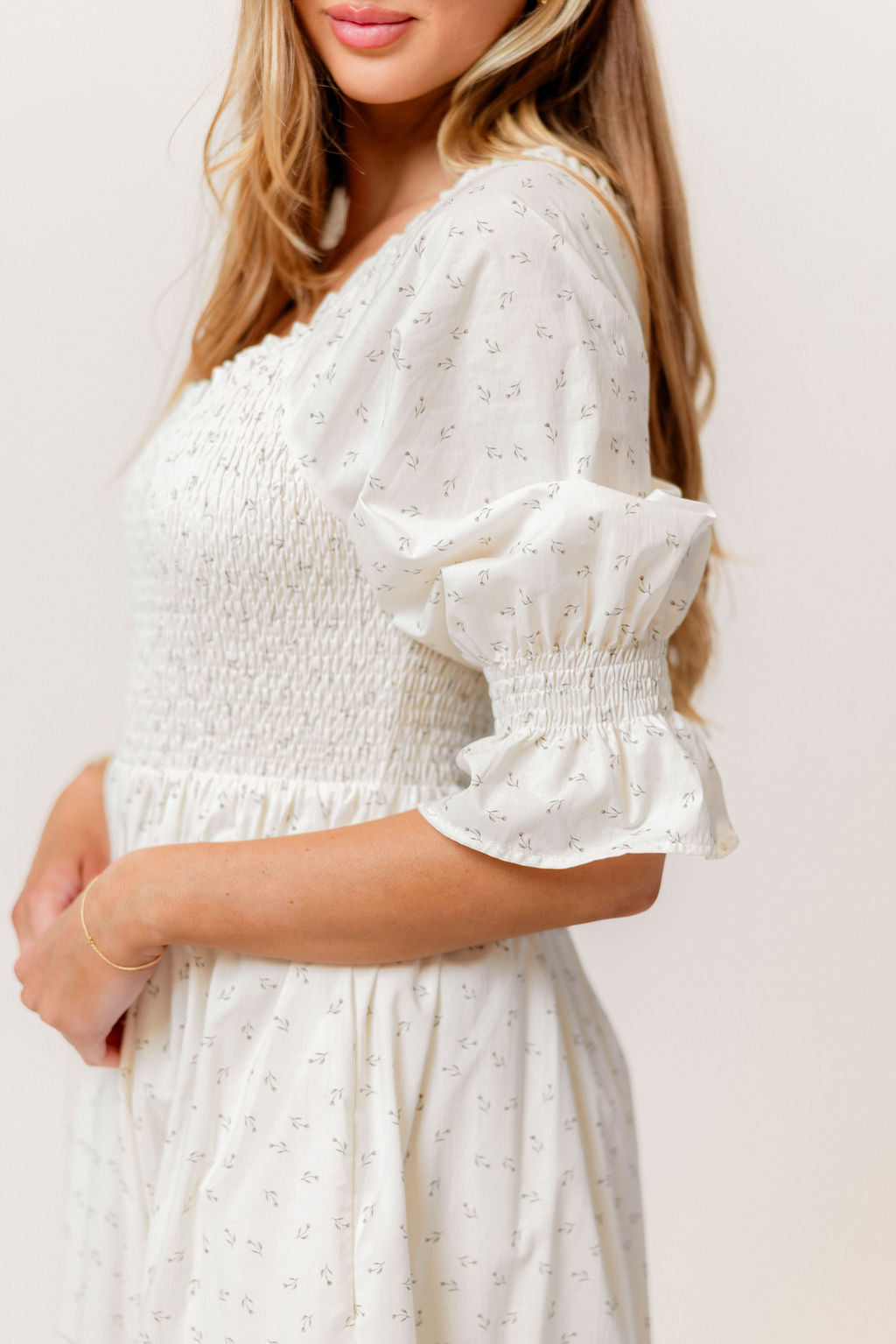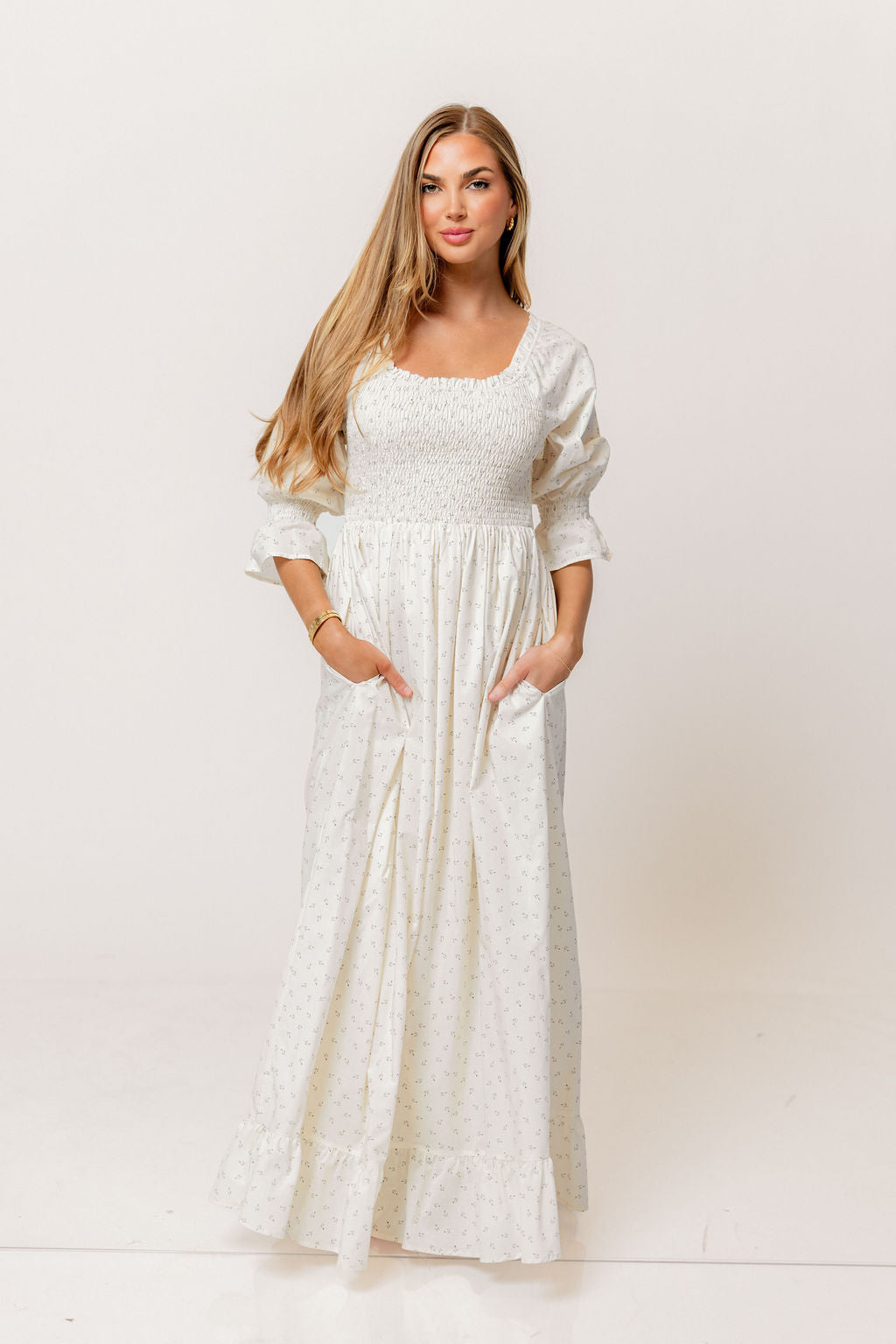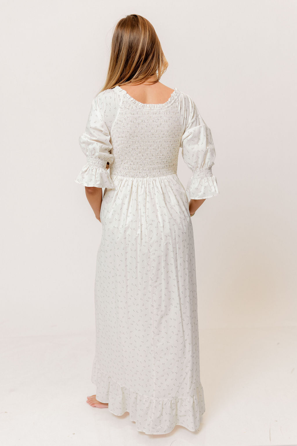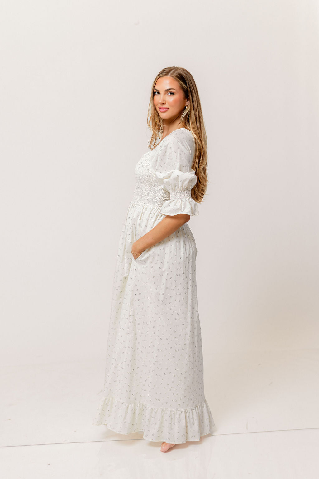 Sienna 100% Cotton Puff Sleeve Maxi Dress in Ivory Floral (Lined) - Bump Friendly *2/20 PRE-ORDER*