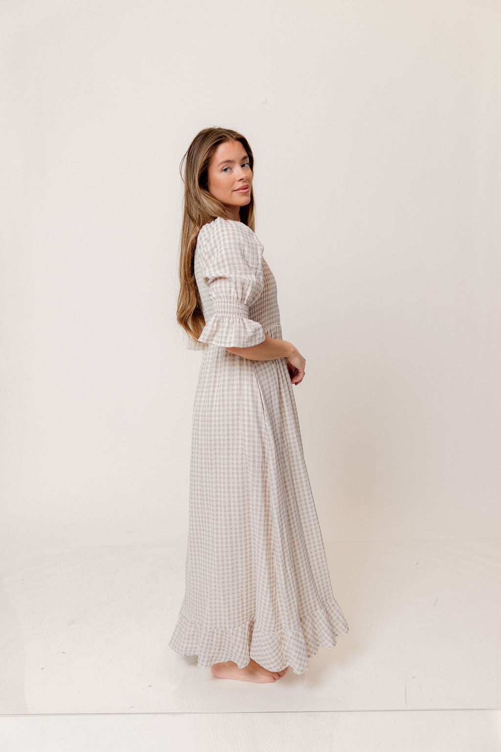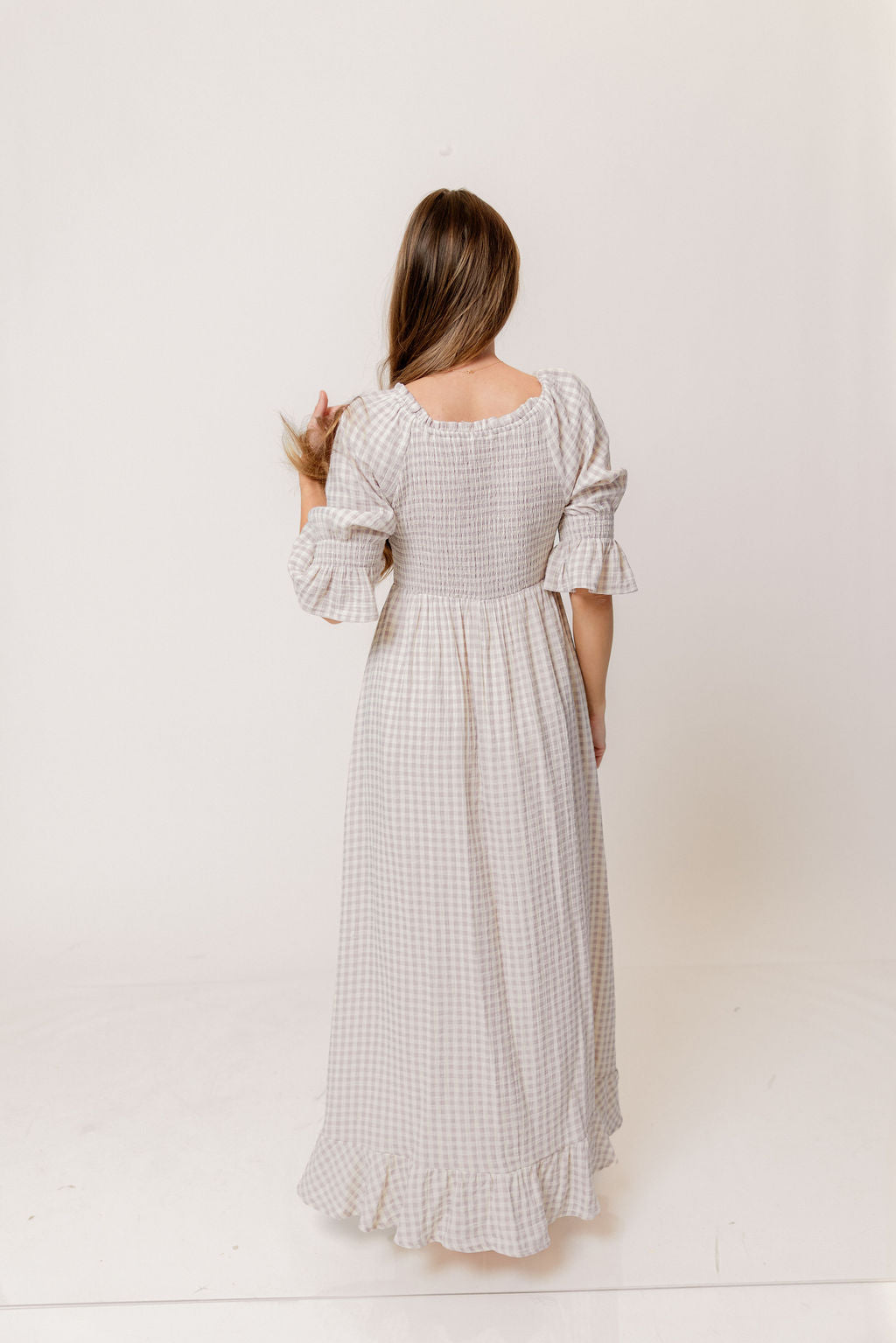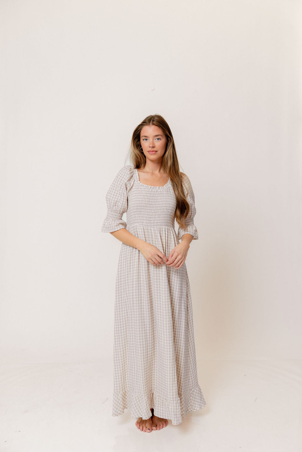 Sienna 100% Cotton Puff Sleeve Maxi Dress in Wisteria Plaid (Lined) - Bump Friendly *2/12 PRE-ORDER*