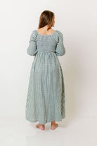 Cecilia 100% Cotton Smocked Maxi Dress in Teal Green Plaid - Bump Friendly