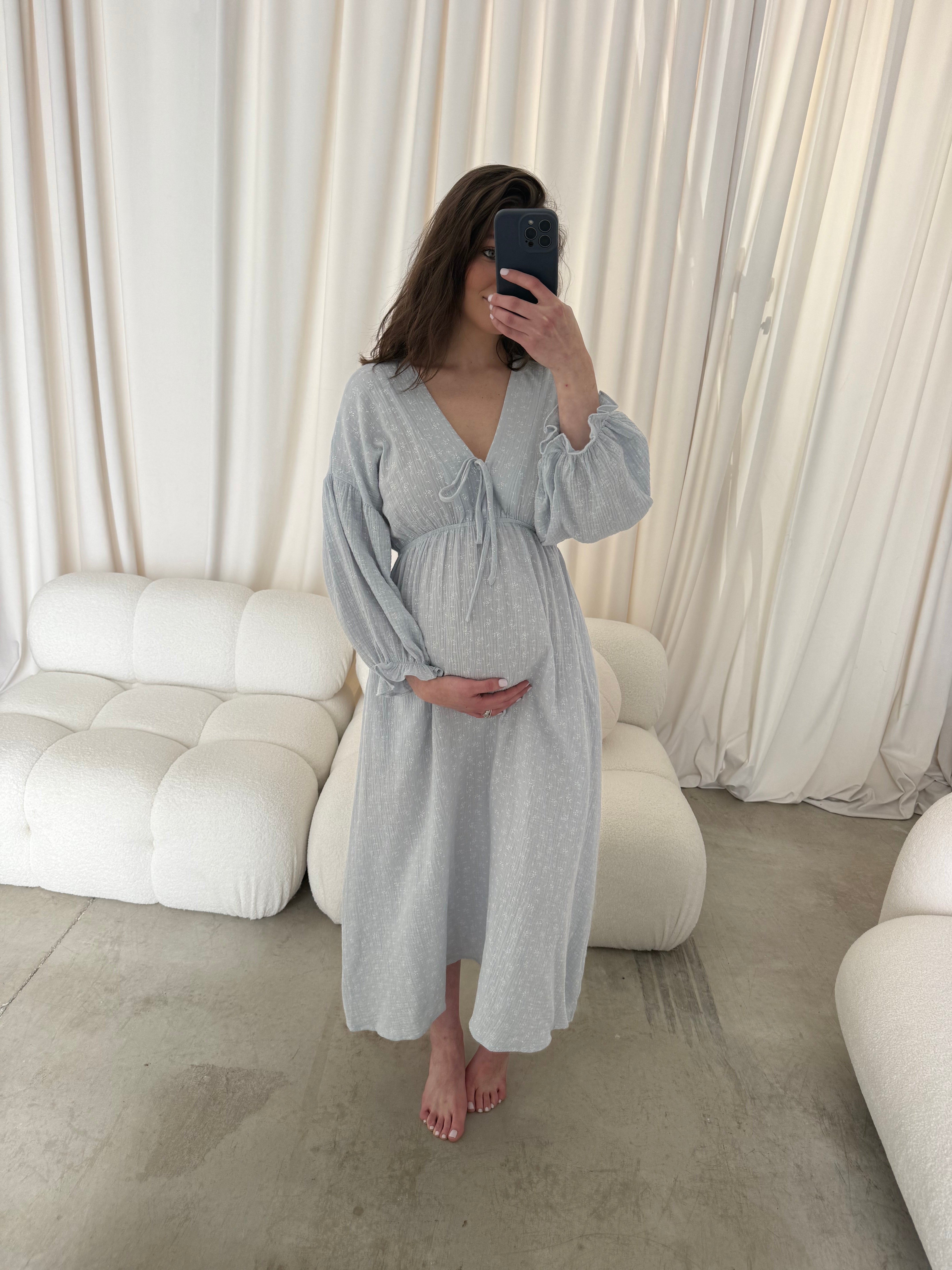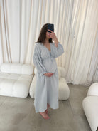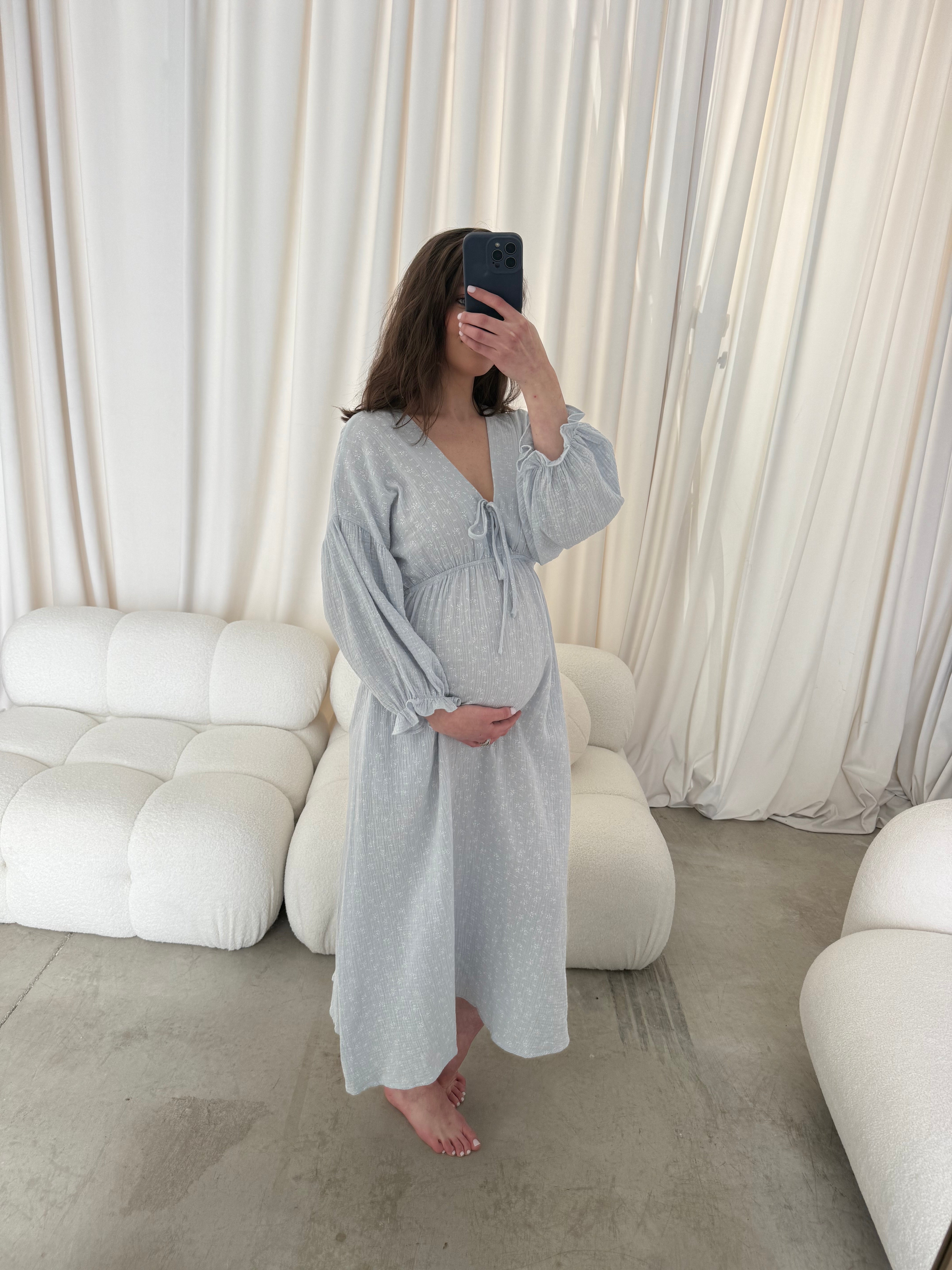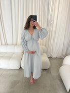 Hunter 100% Cotton Midi Dress in Baby Blue Foliage - Bump Friendly