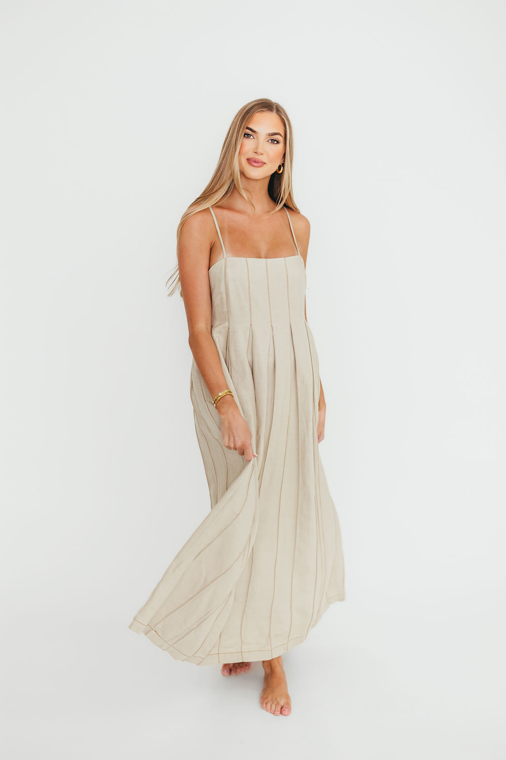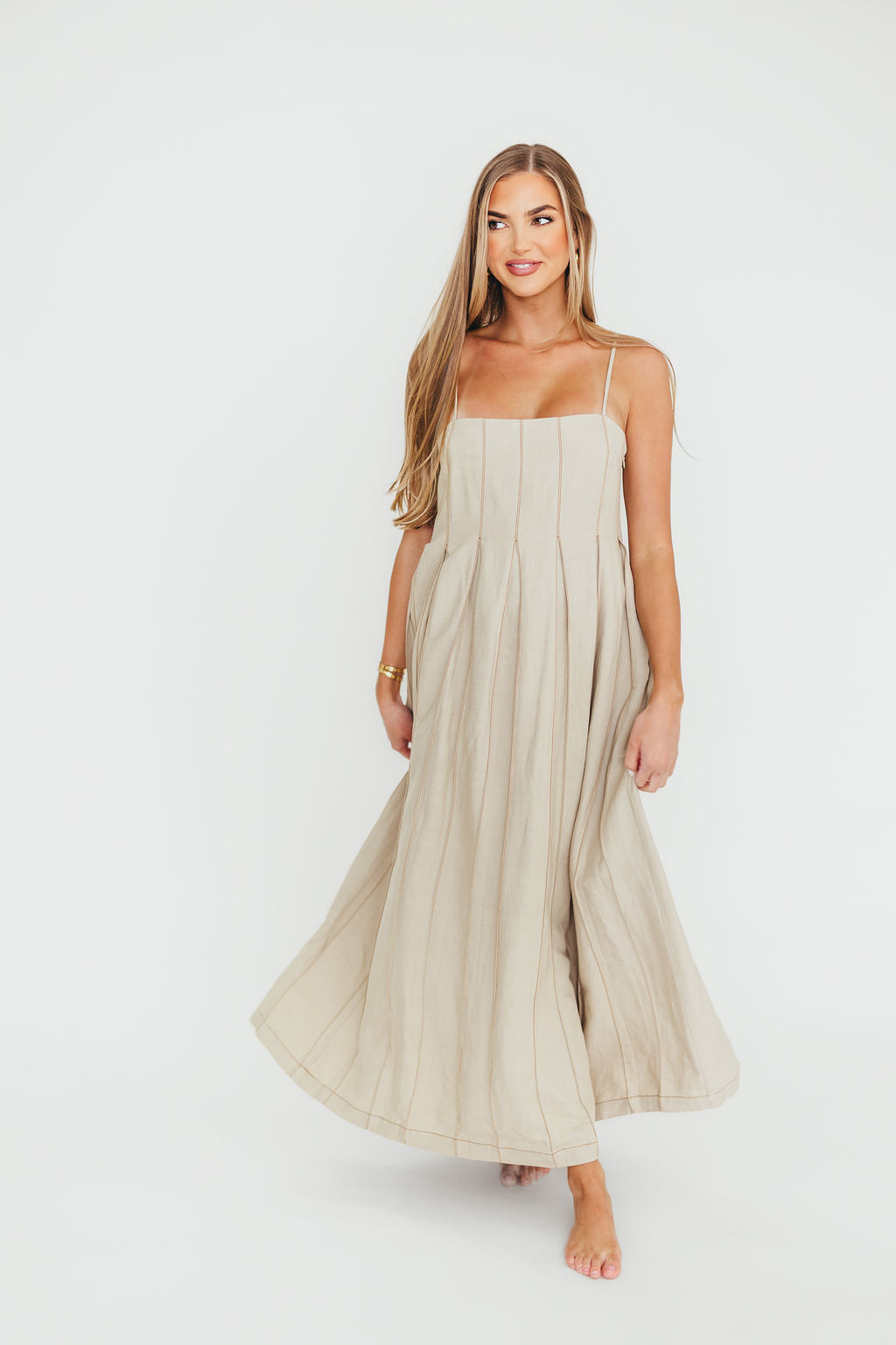 Mei Linen Stitch Maxi Dress in Khaki