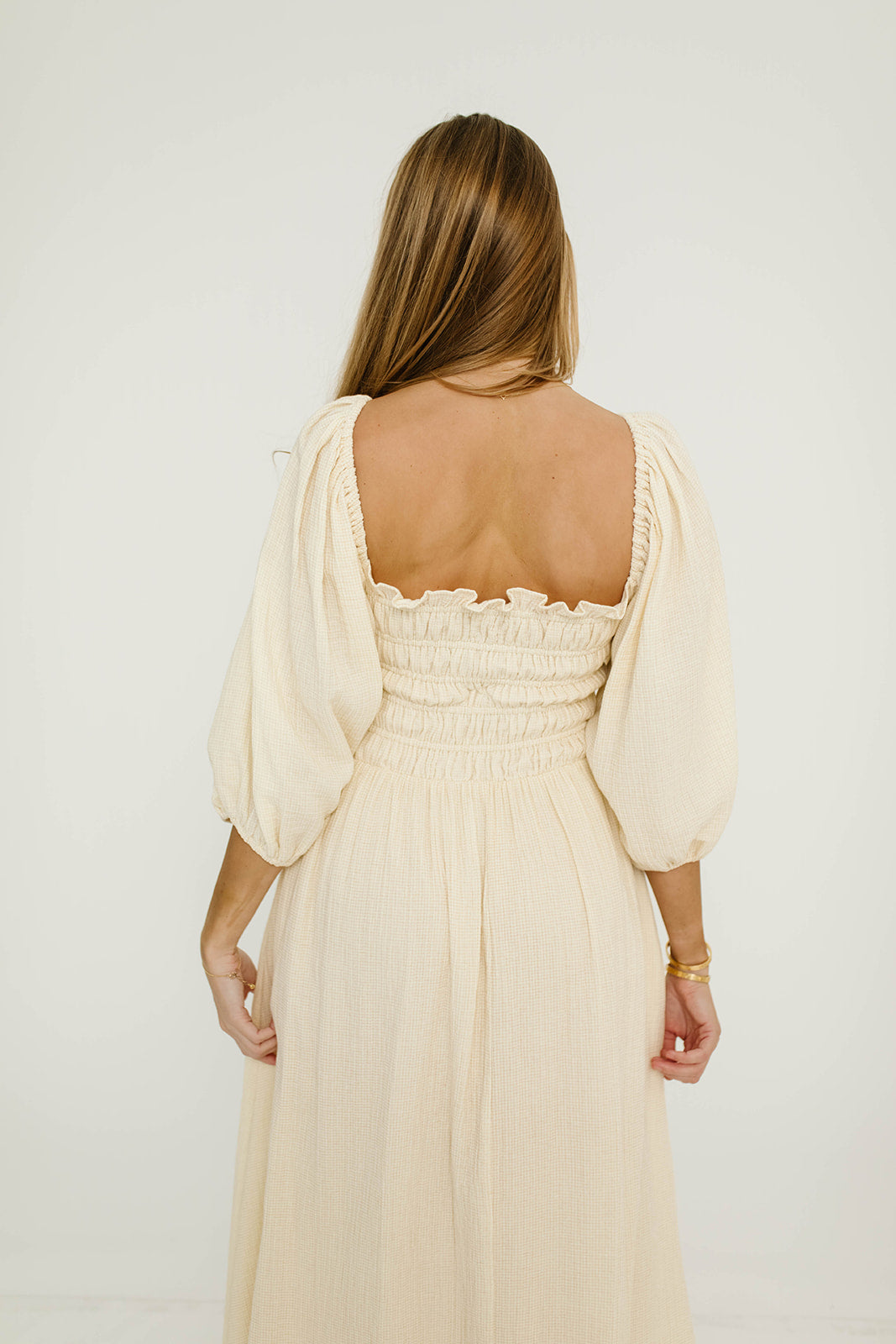 Krystal 100% Cotton Maxi Dress in Vintage Ivory