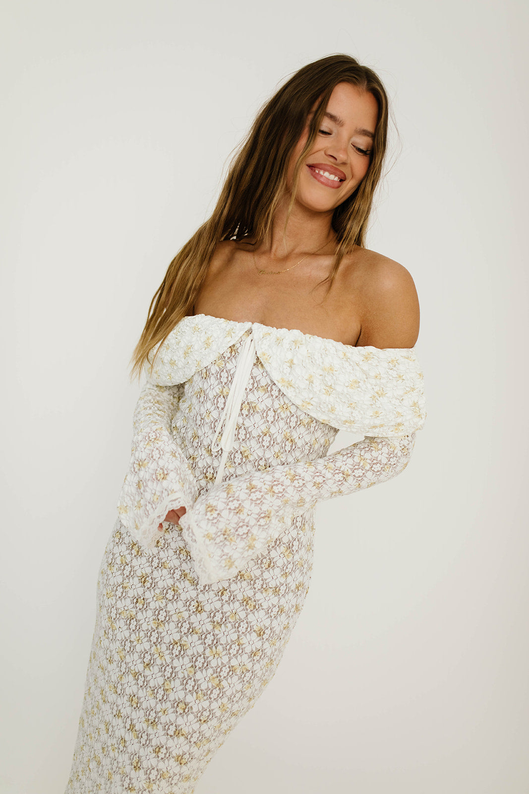 Ella Lace Maxi Dress in Tiny Yellow Floral Print