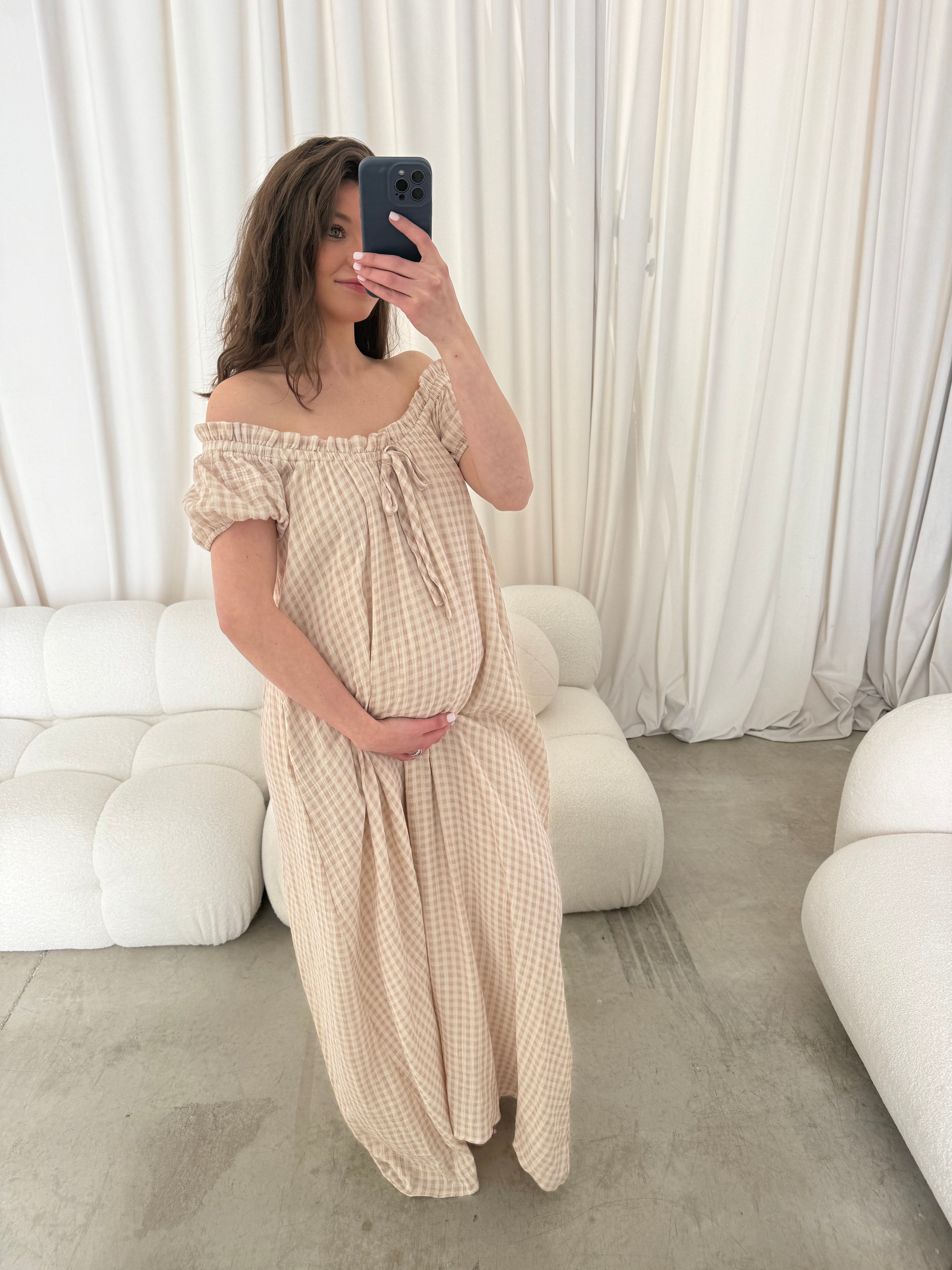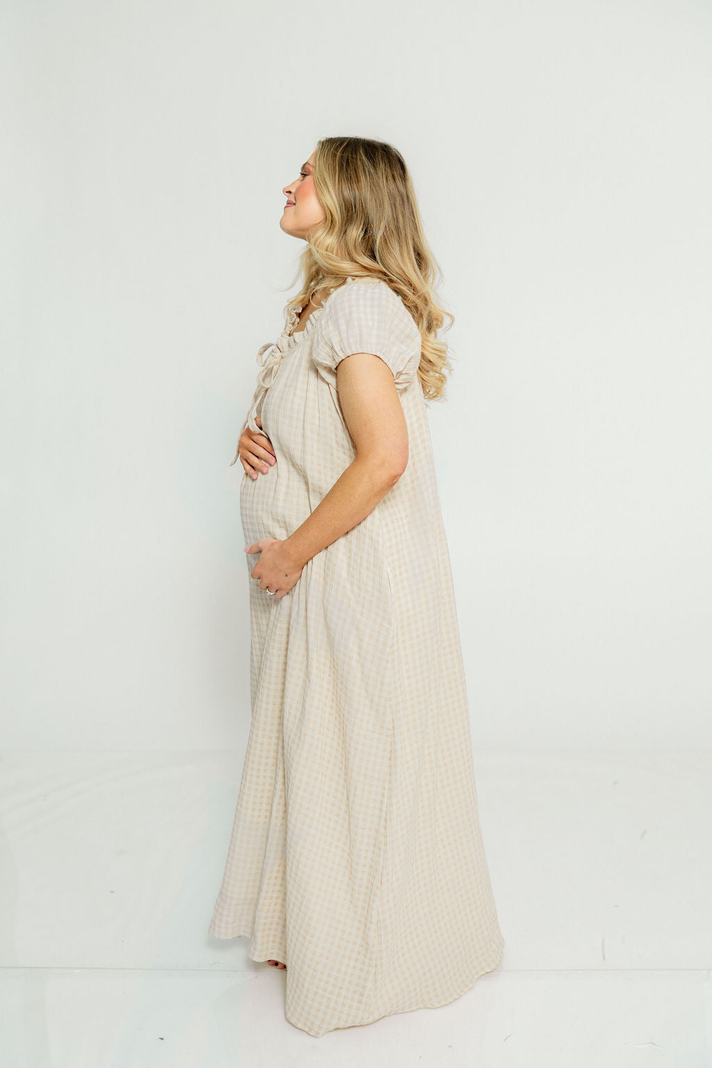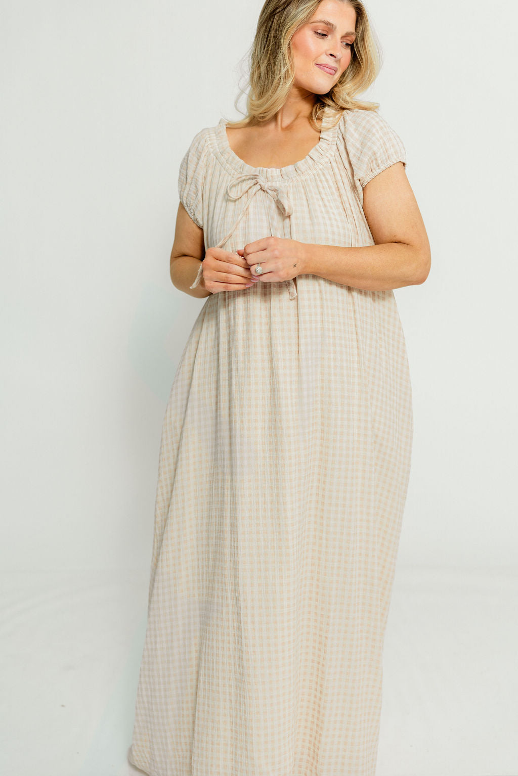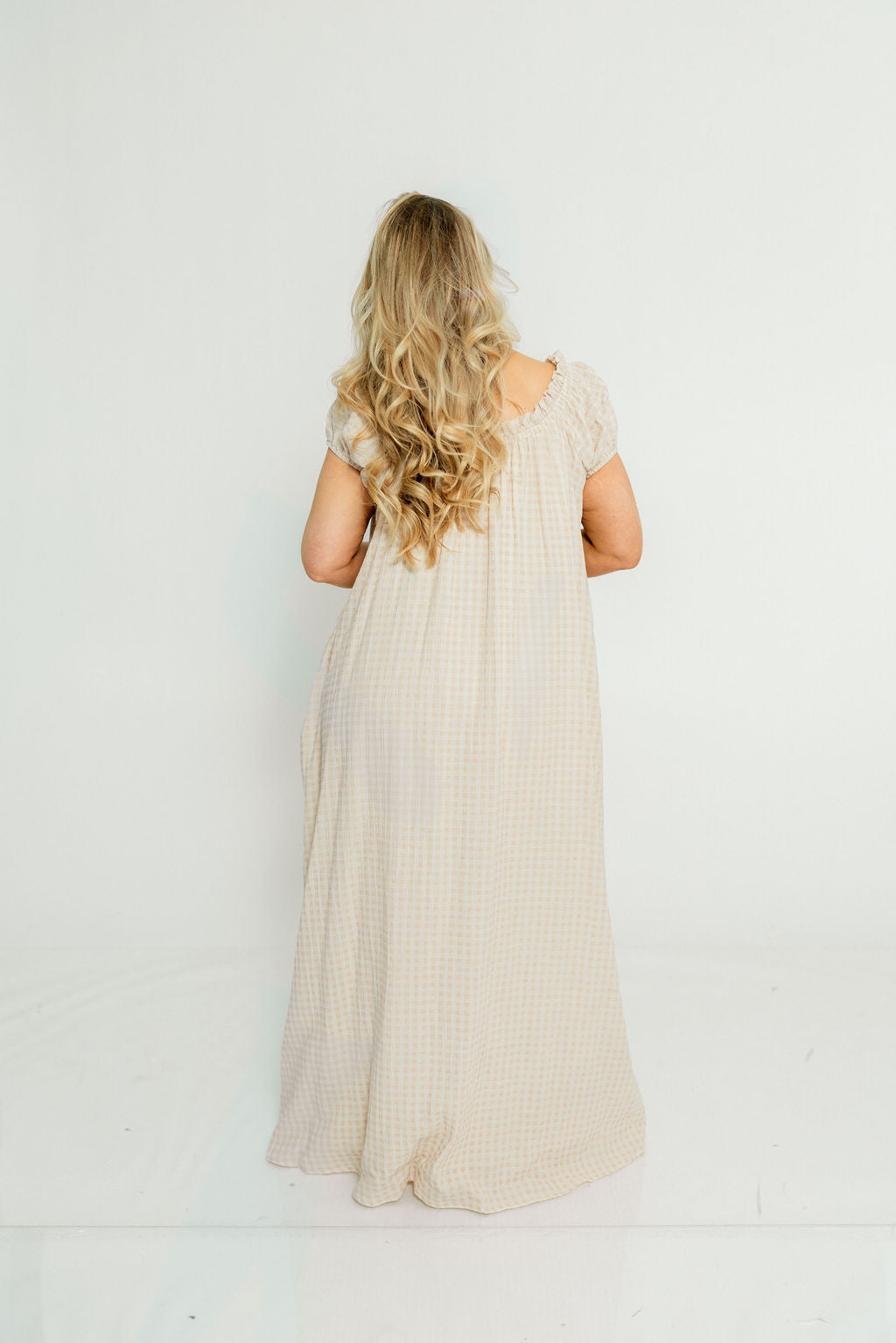Ensley 100% Cotton Maxi Dress in Custard Plaid - Bump Friendly