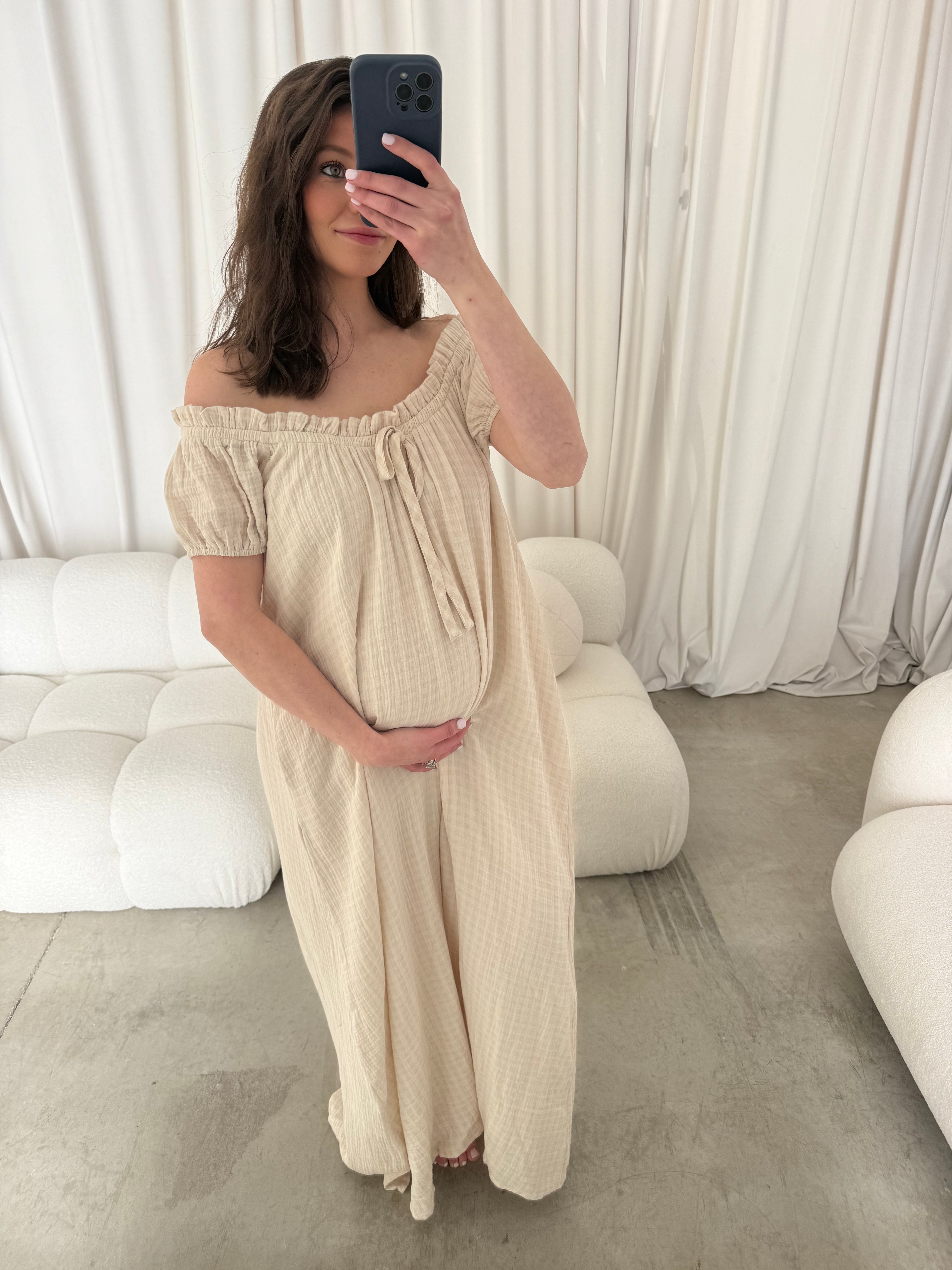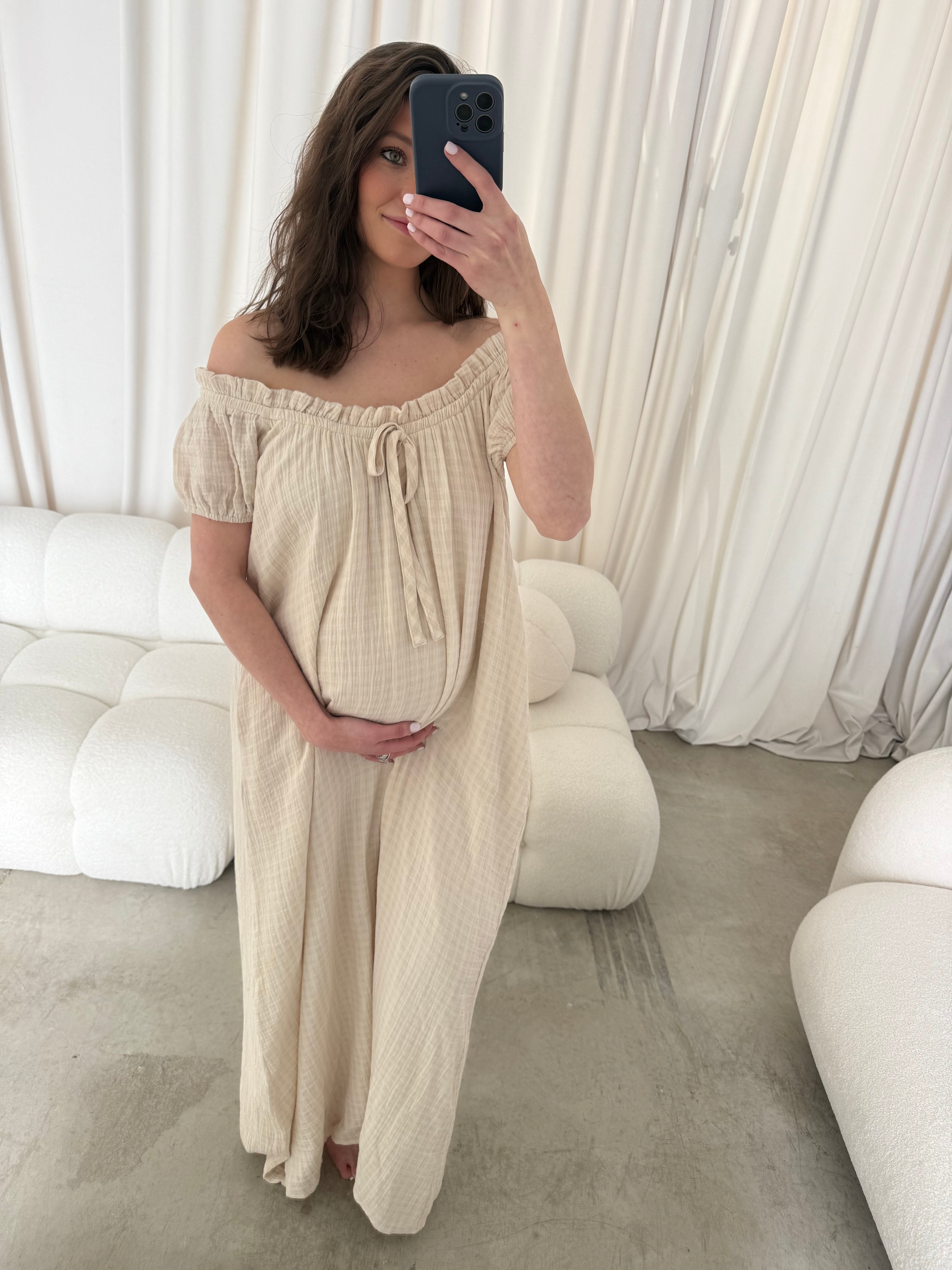 Christina Puffed Sleeve Maxi Dress in Cloud - Bump Friendly