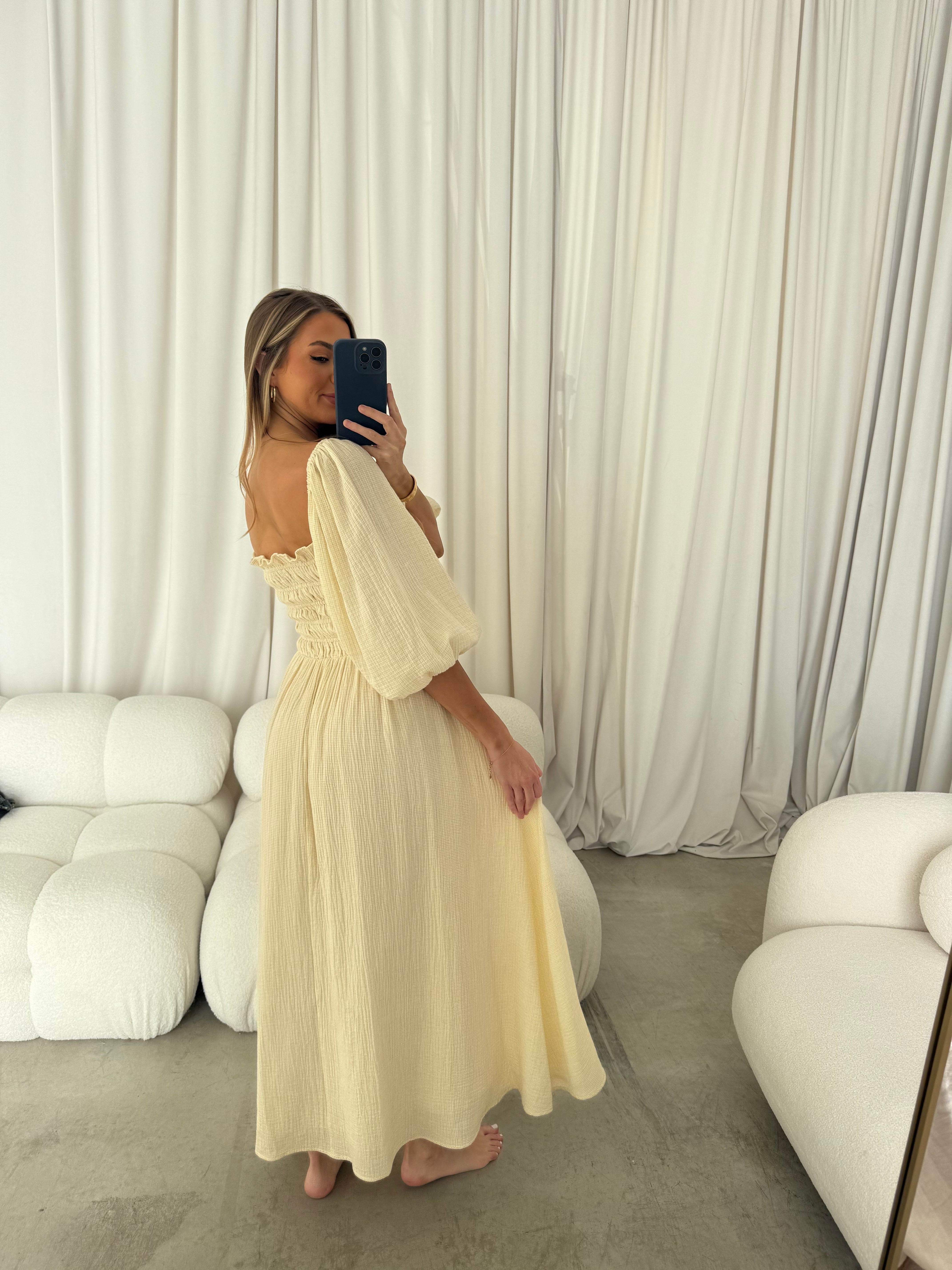 Arabelle Smocked Bow Detail Maxi Dress in Lemon Water
