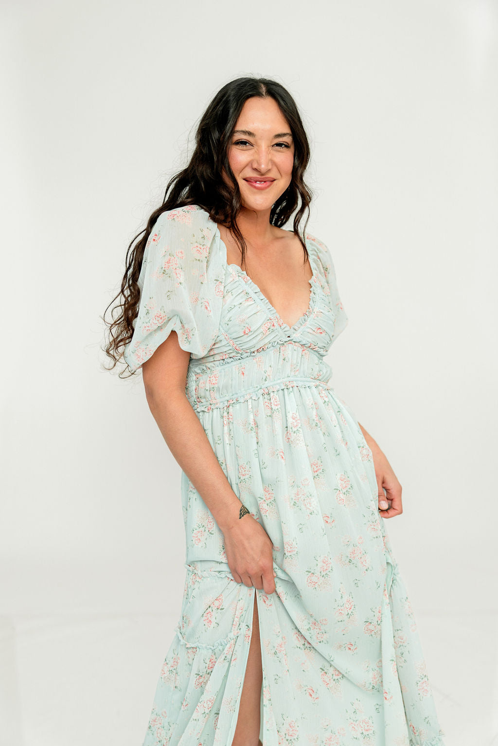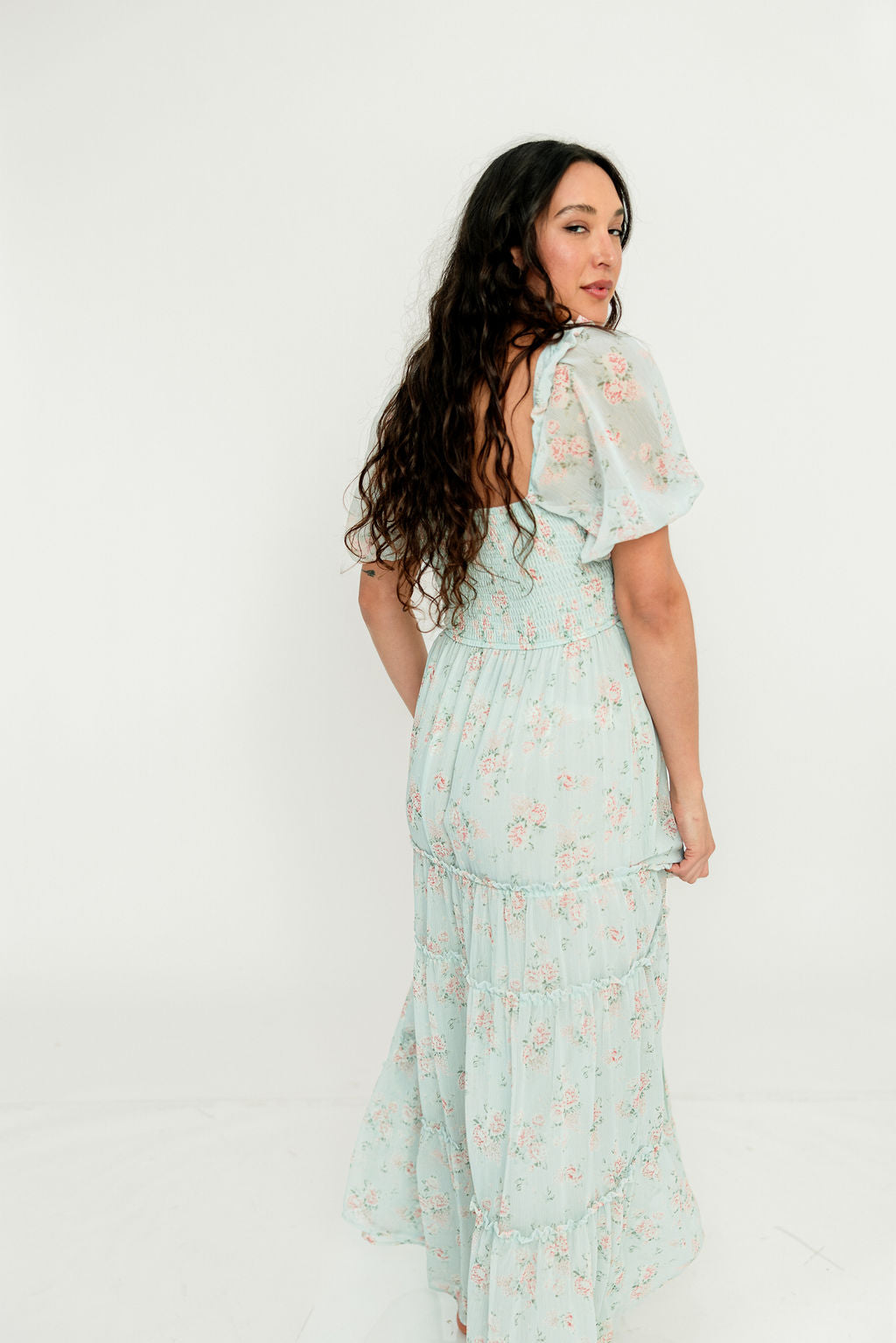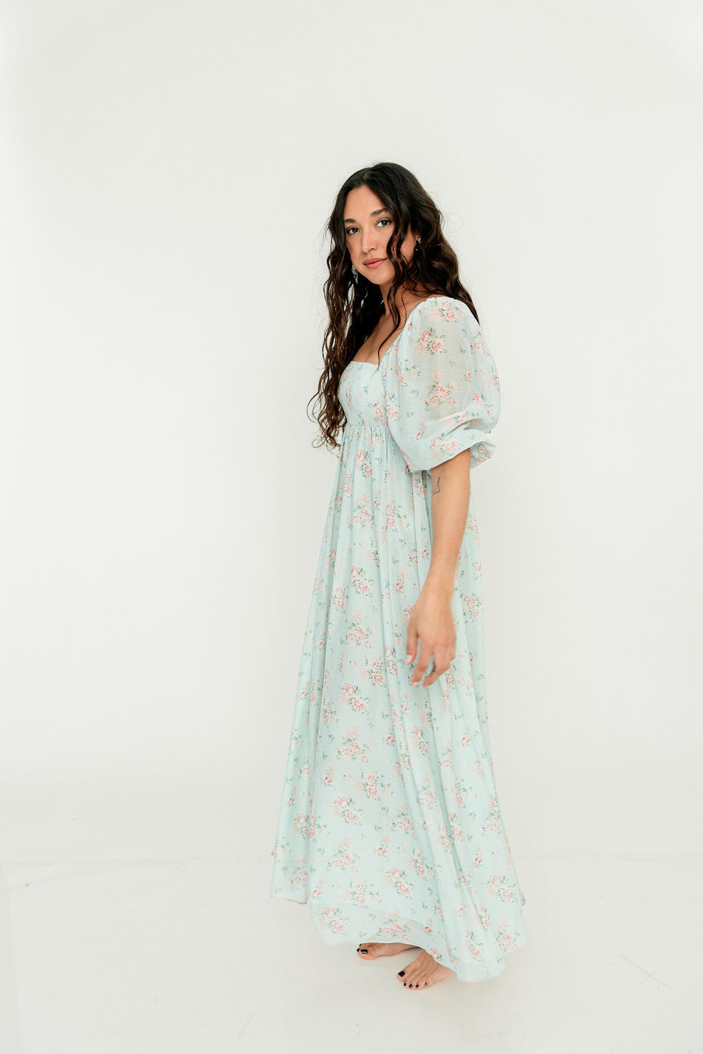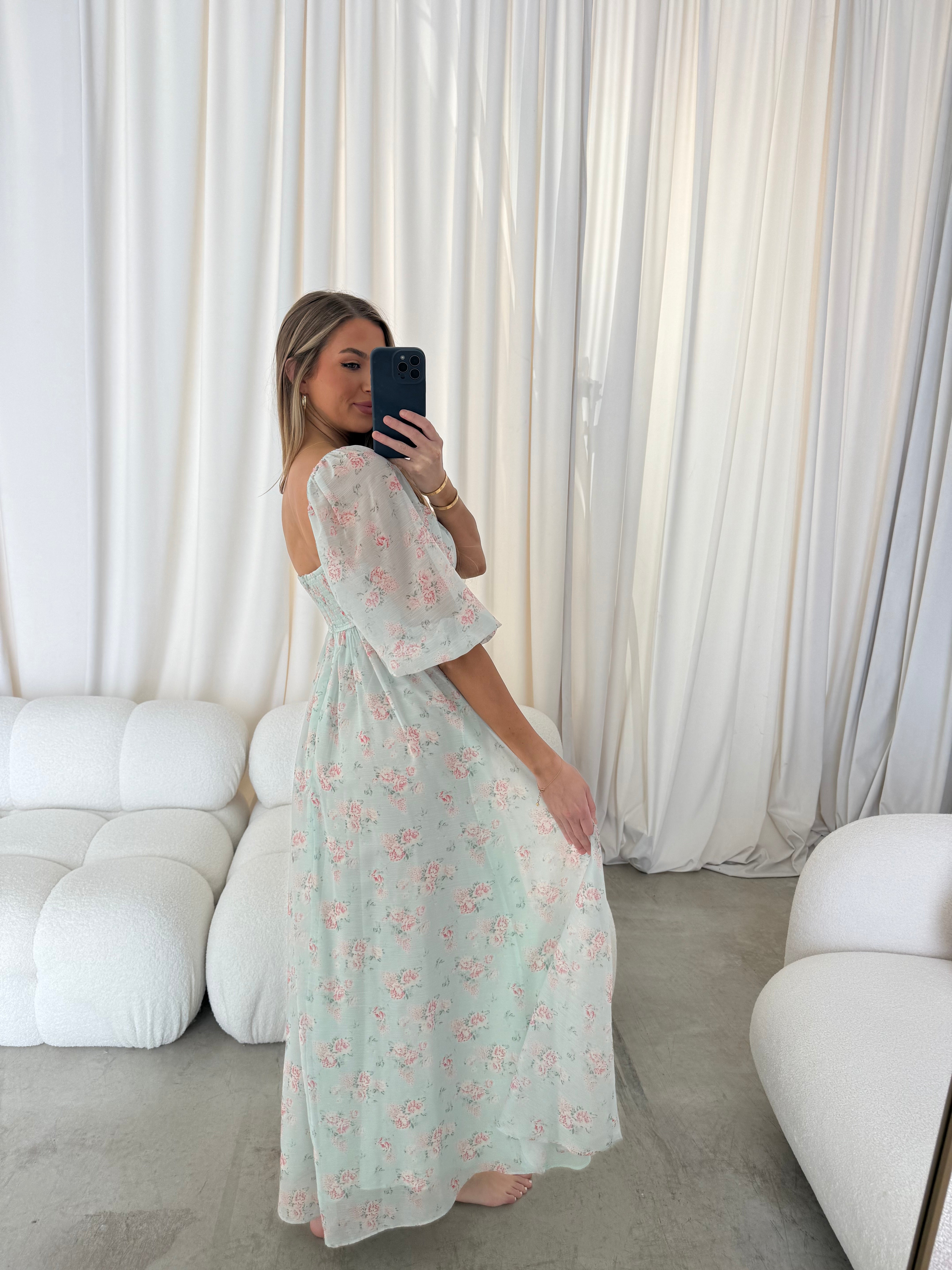 Mona Maxi Dress in Mint/Pink Floral - Bump Friendly *3/12 PRE-ORDER*