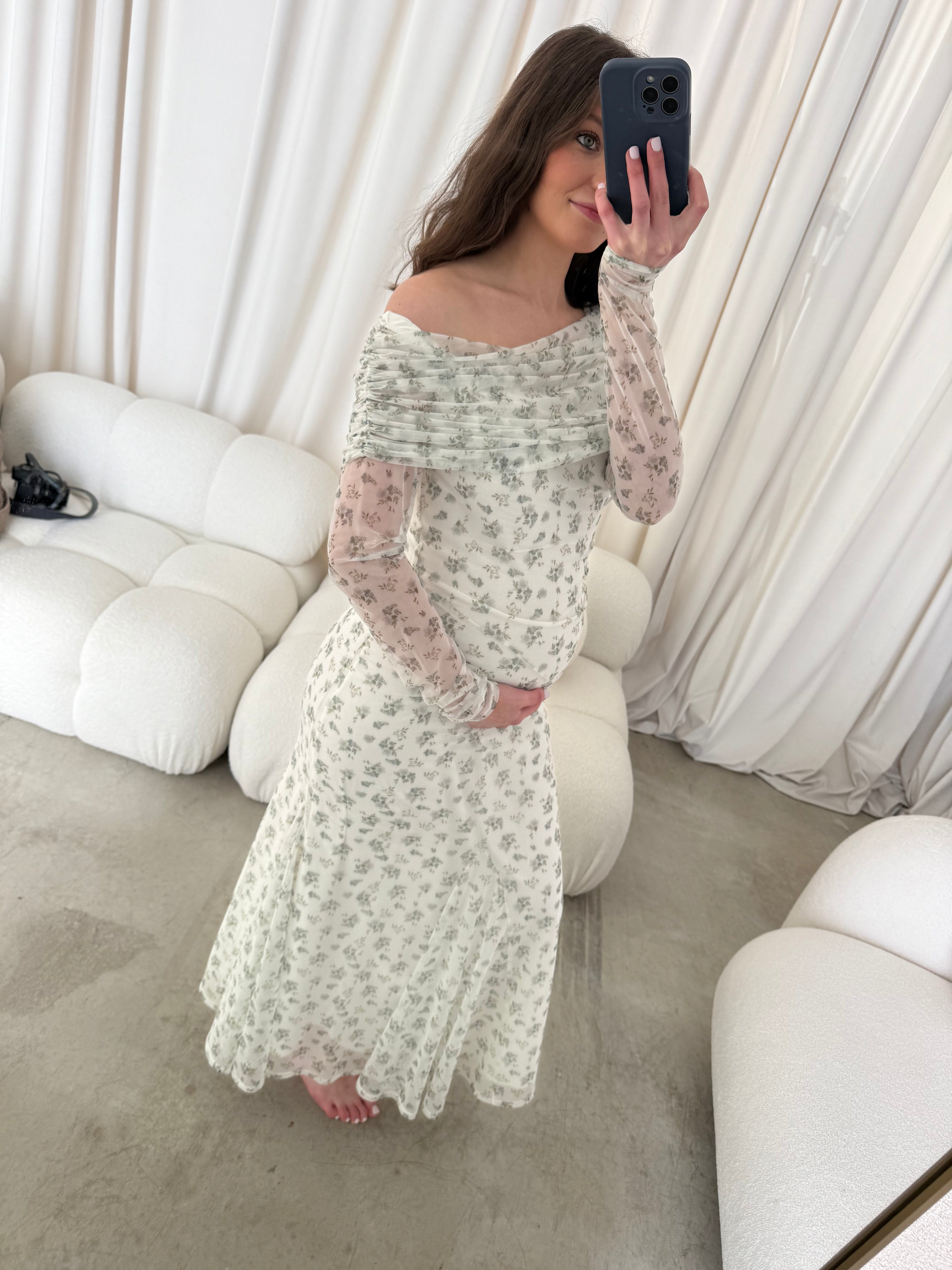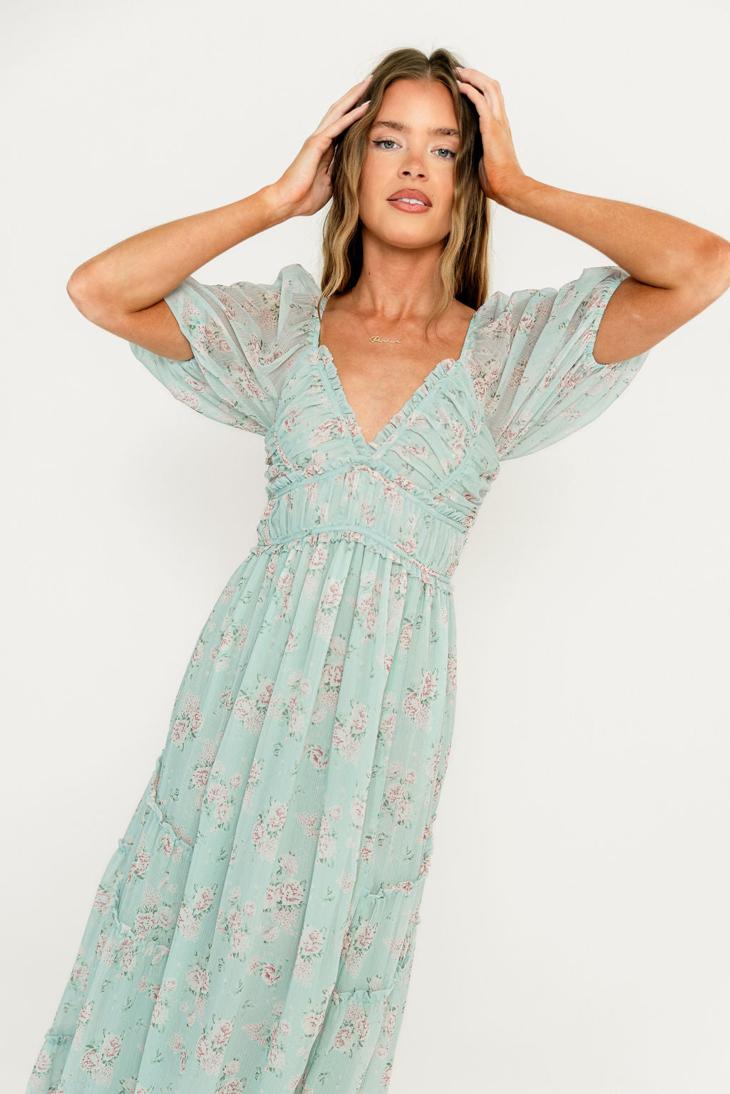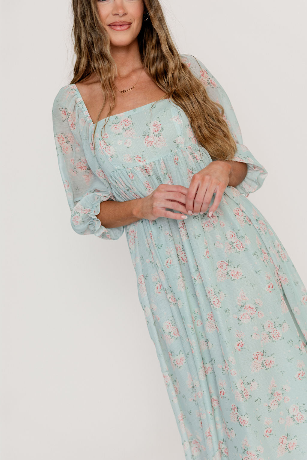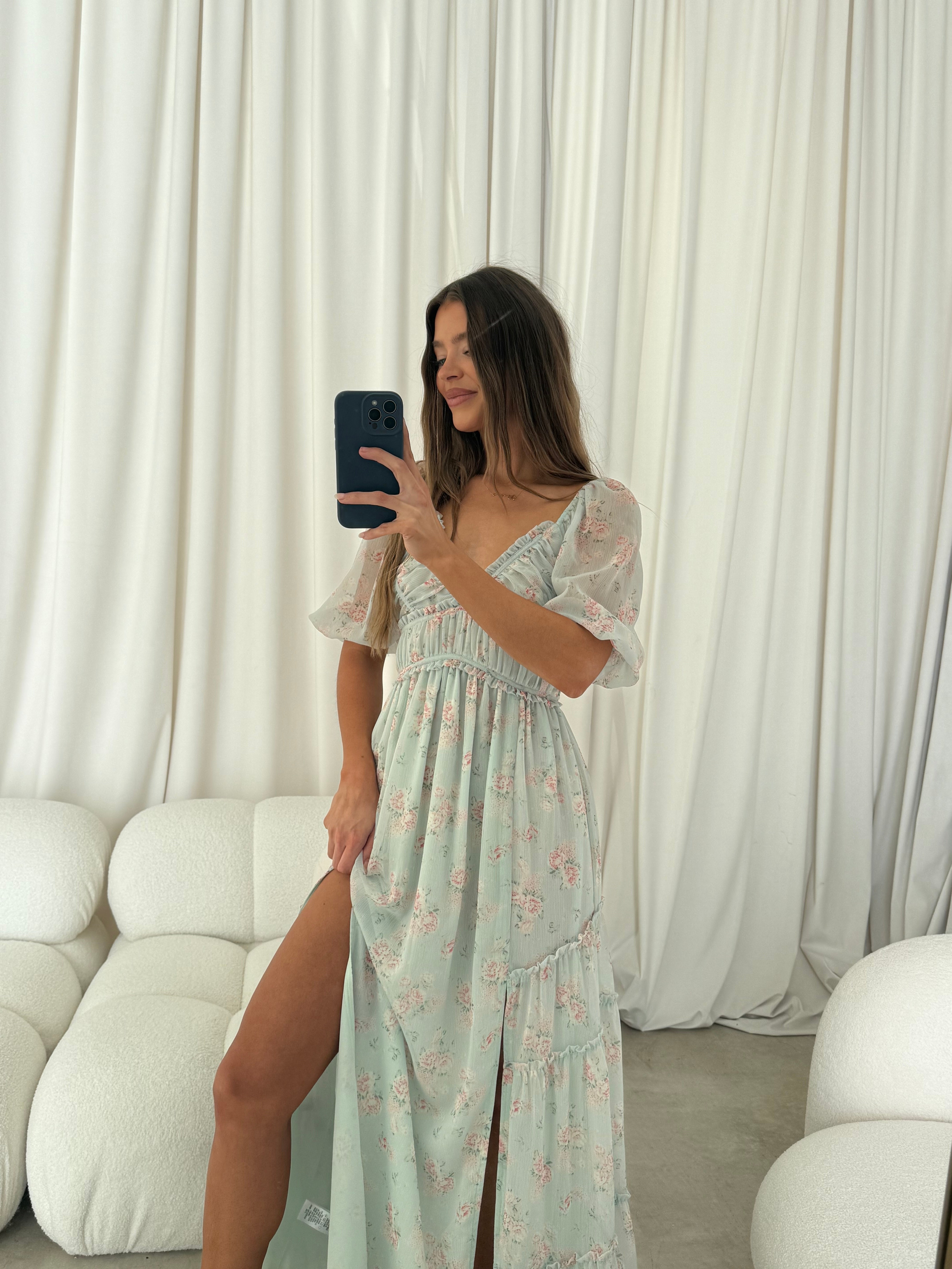 Mona Maxi Dress in Mint/Pink Floral - Bump Friendly *3/12 PRE-ORDER*