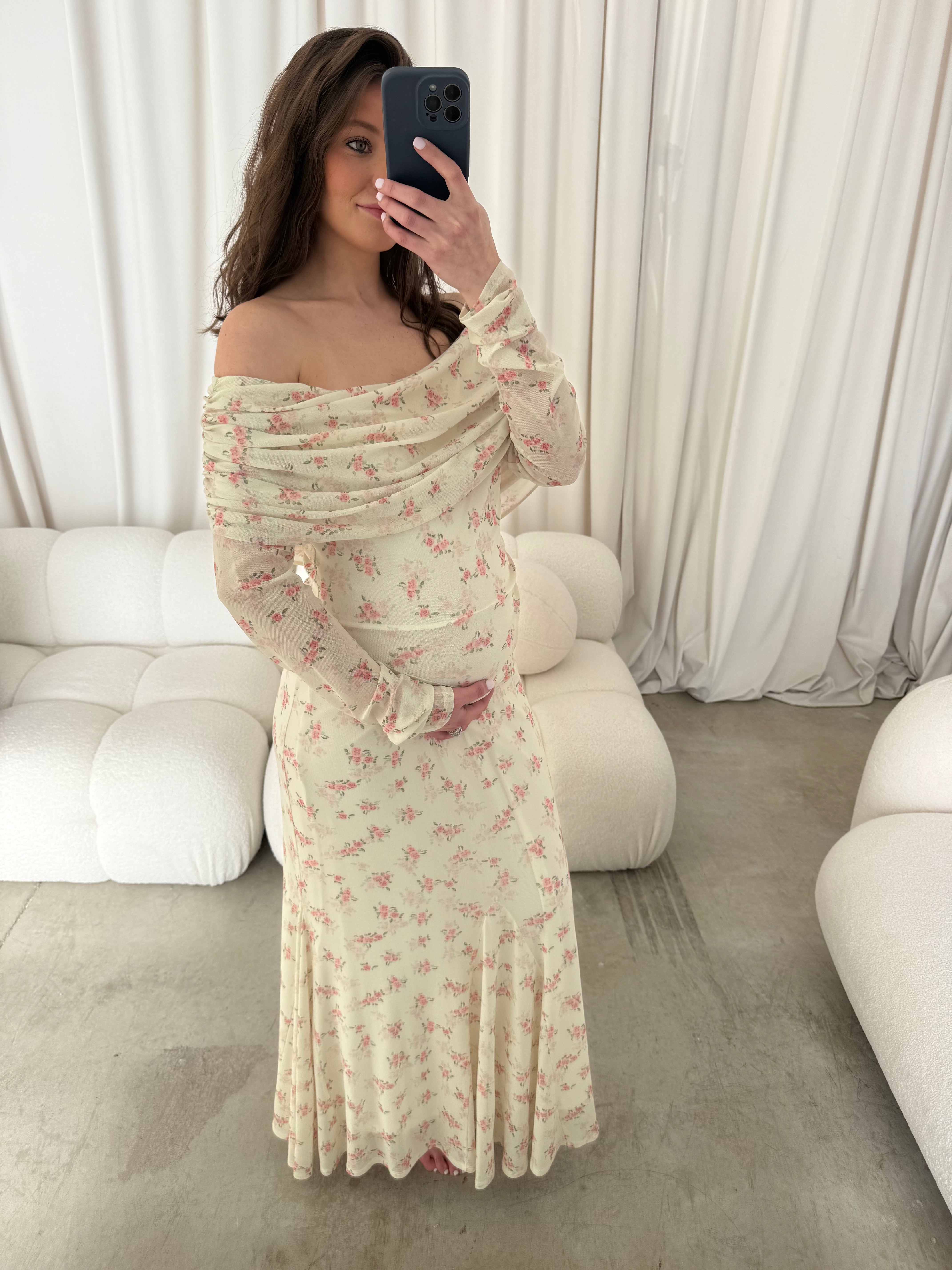 Ryan Lace Bodice Cutout Maxi Dress in Cream Floral - Bump Friendly