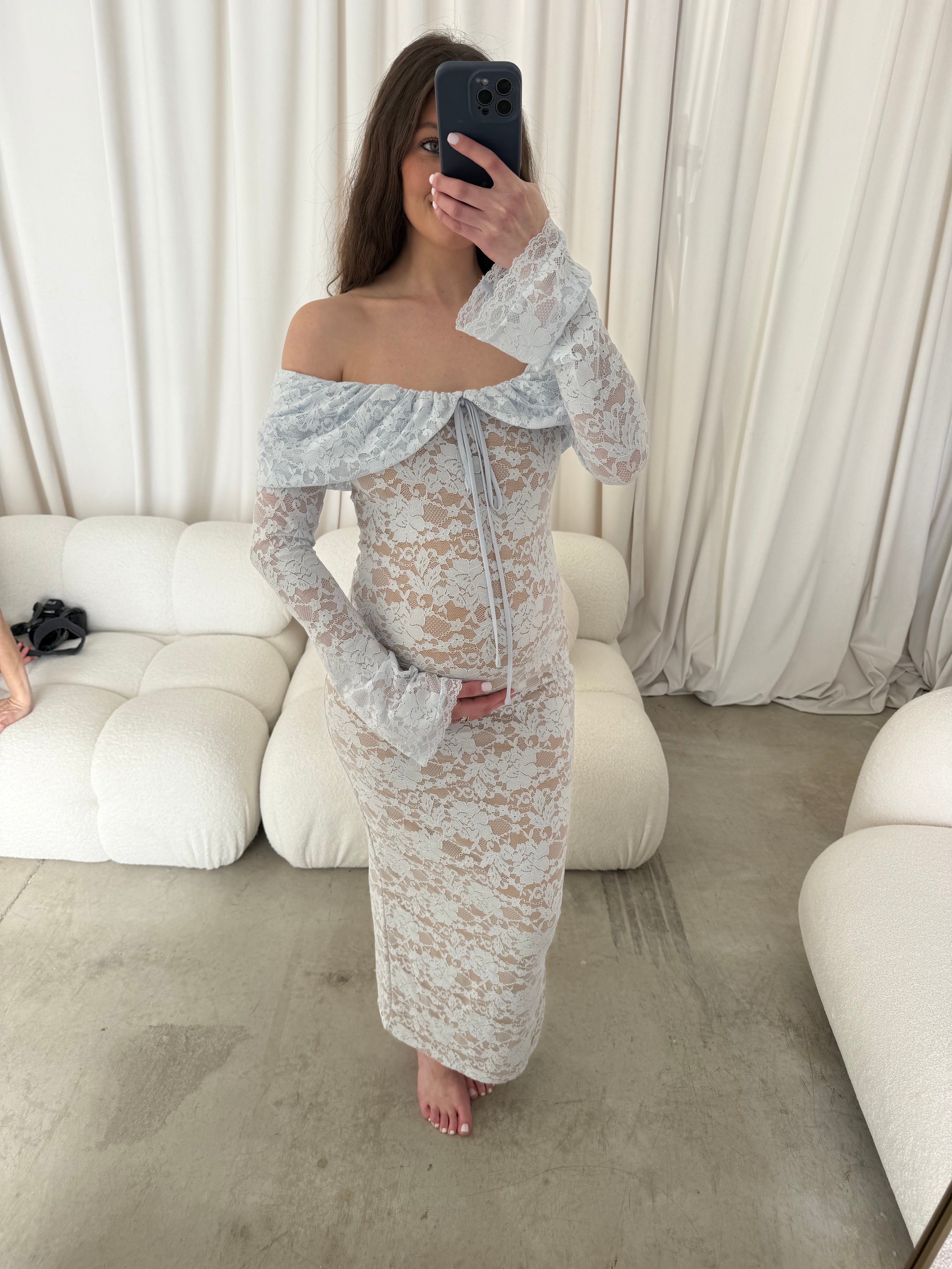 Miriam Cotton Lace Inset Maxi Dress in Blue Aura