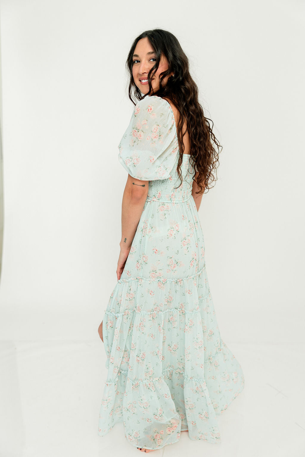 Daphne Maxi Dress in Mint/Pink Floral - Bump Friendly *3/12 PRE-ORDER*