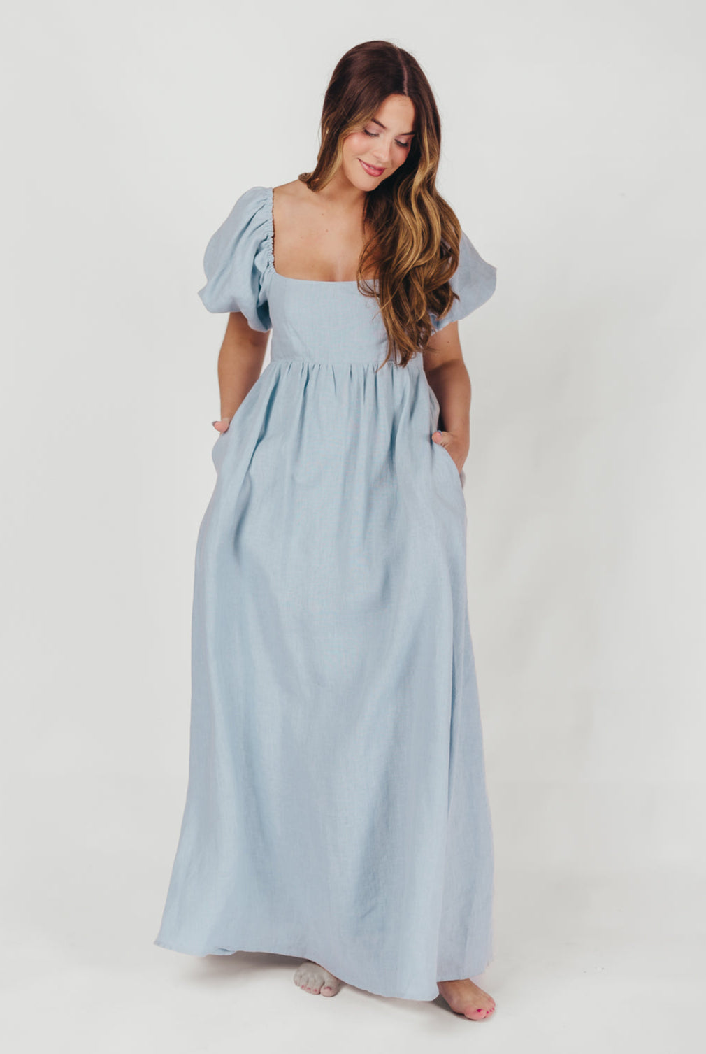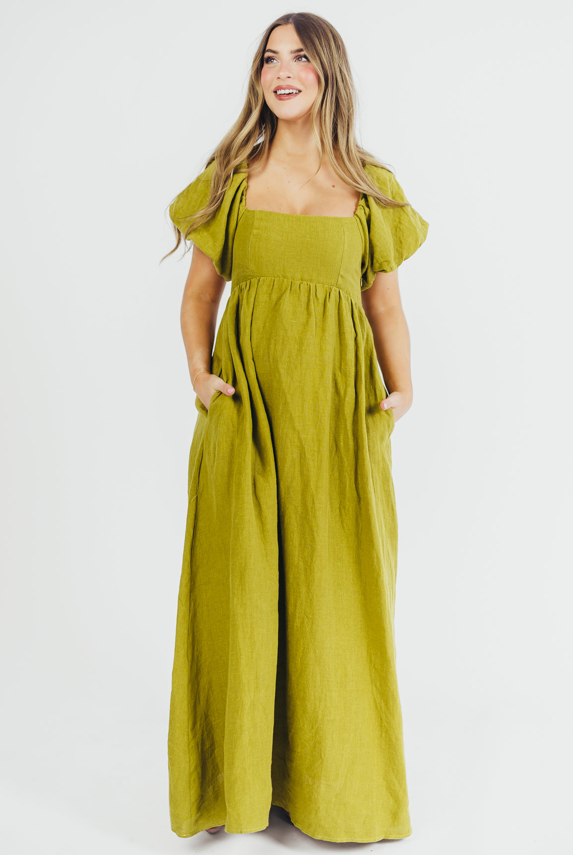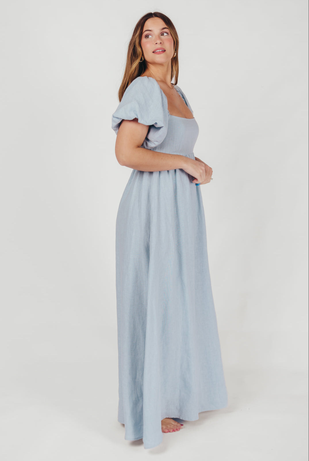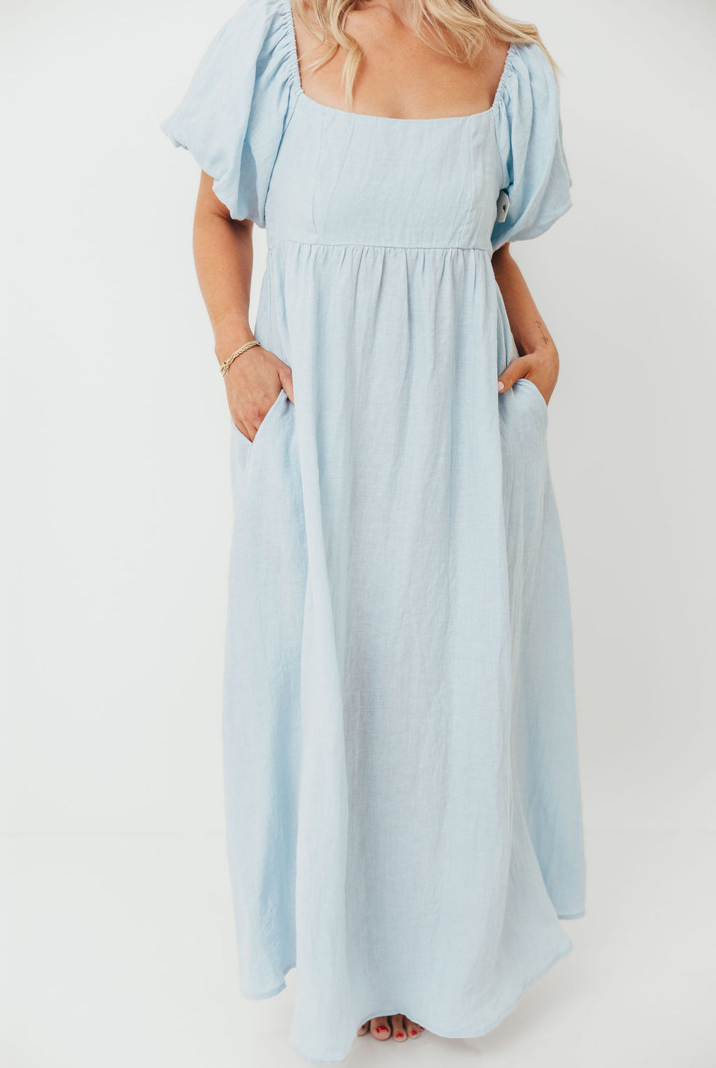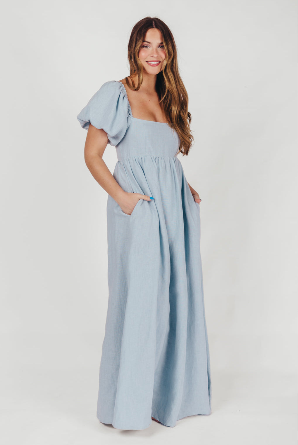 Join us in welcoming the *breathtaking* Candace Maxi Dress to the Worth Collective repertoire - we know you're going to love her! This neutral-hued, 100% linen dress is the epitome of elegance and luxury. Its beautiful neckline frames your decolletage, while the gently puffed sleeves and full skirt accent this gown's exquisite craftmanship. It's the perfect choice for this season's weddings, photo shoots, and other special events!