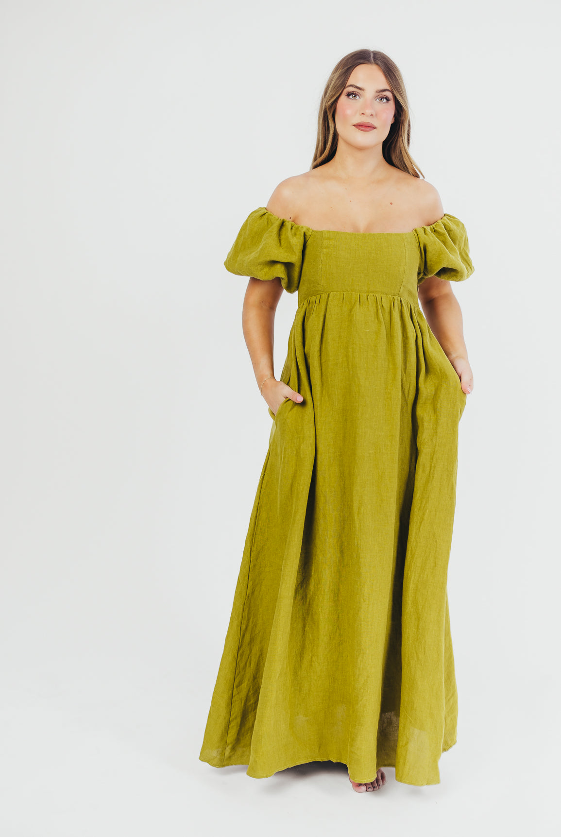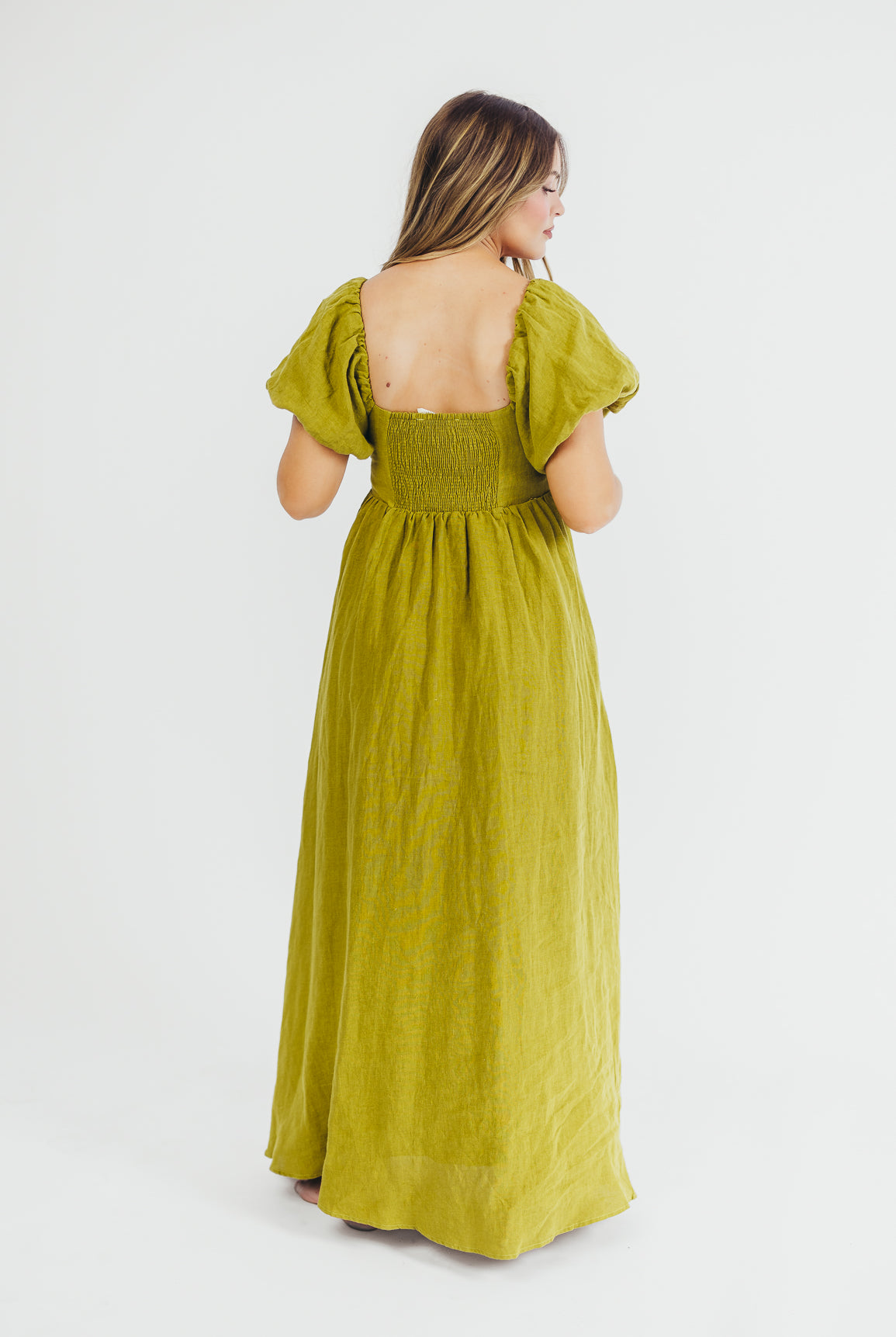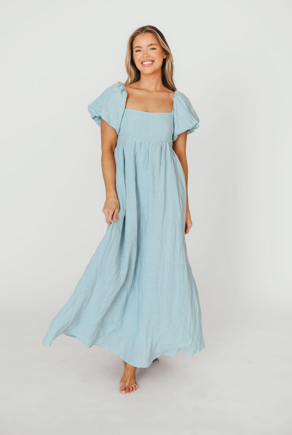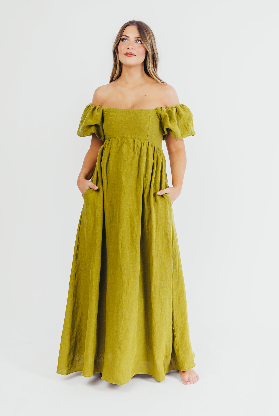Join us in welcoming the *breathtaking* Candace Maxi Dress to the Worth Collective repertoire - we know you're going to love her! This neutral-hued, 100% linen dress is the epitome of elegance and luxury. Its beautiful neckline frames your decolletage, while the gently puffed sleeves and full skirt accent this gown's exquisite craftmanship. It's the perfect choice for this season's weddings, photo shoots, and other special events!