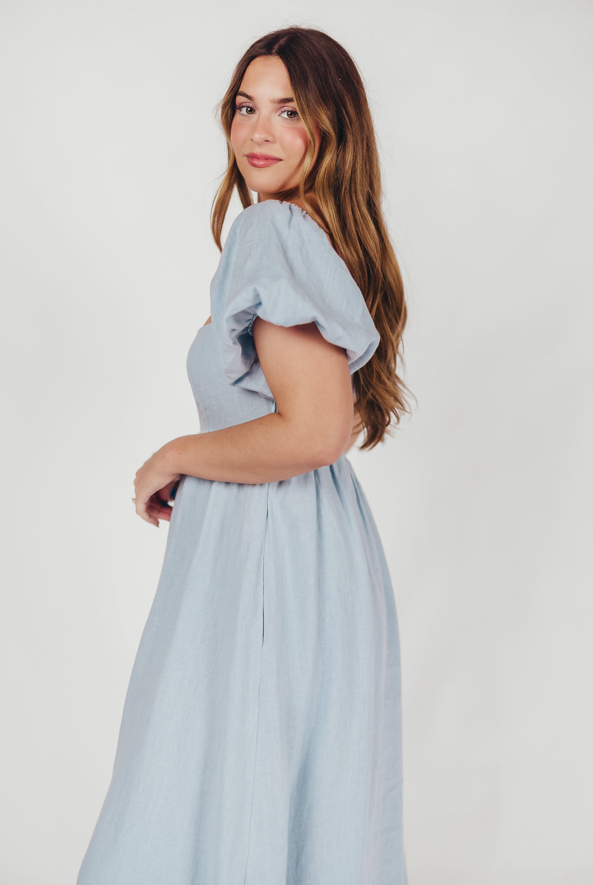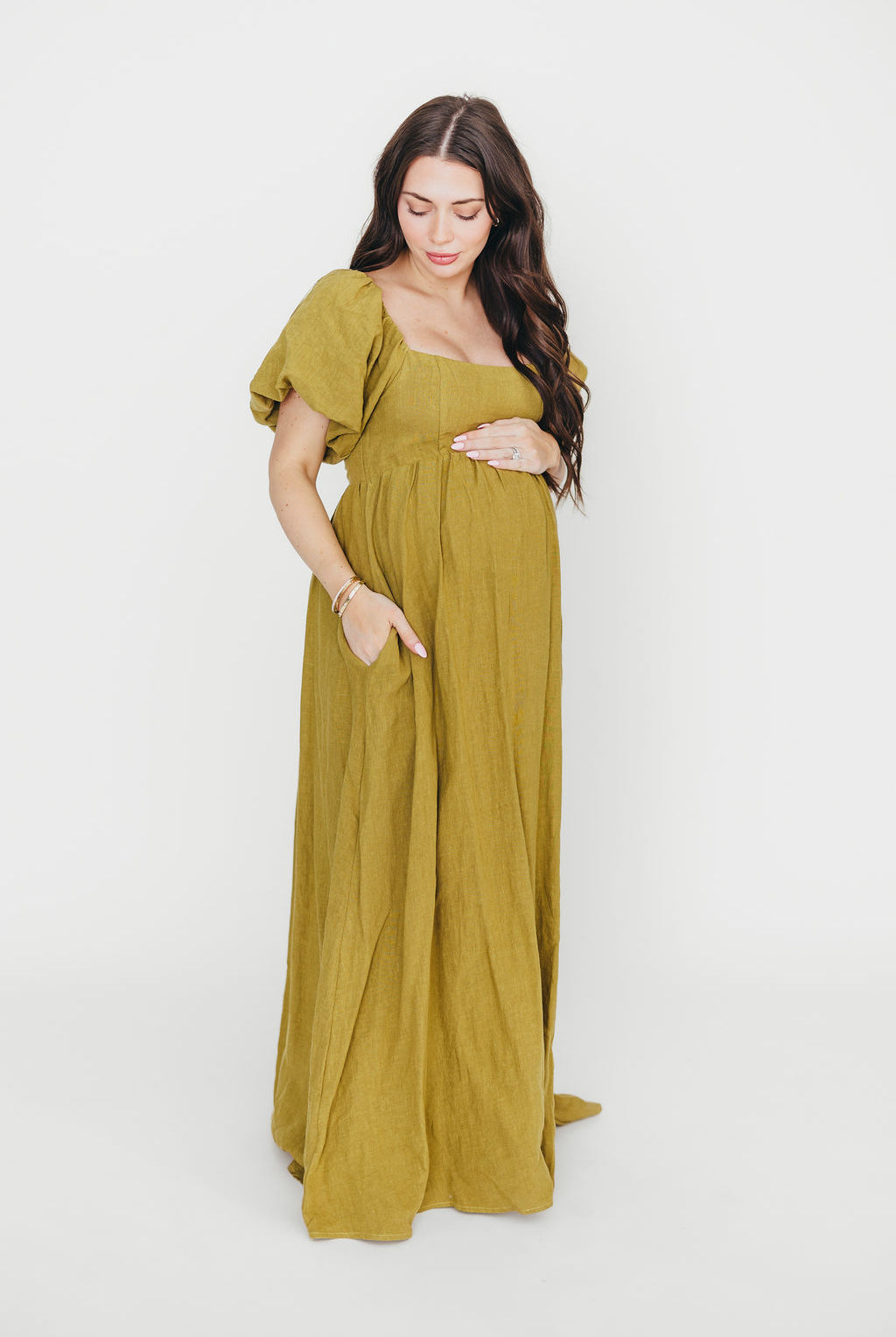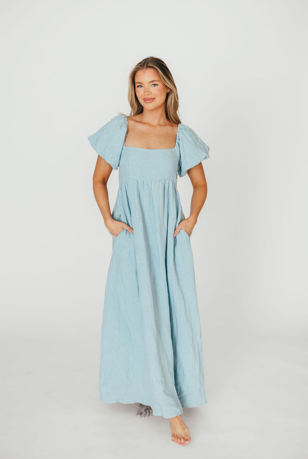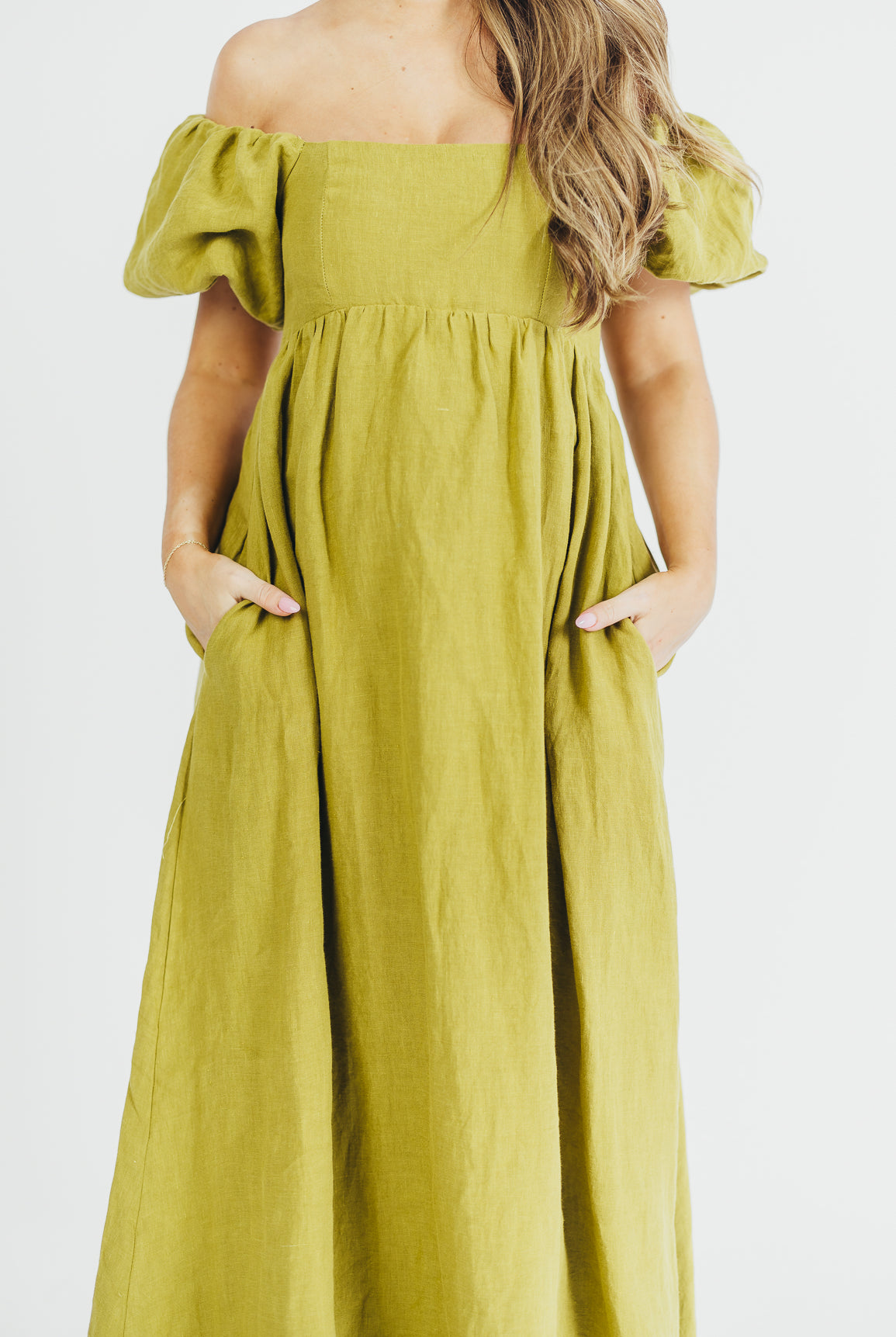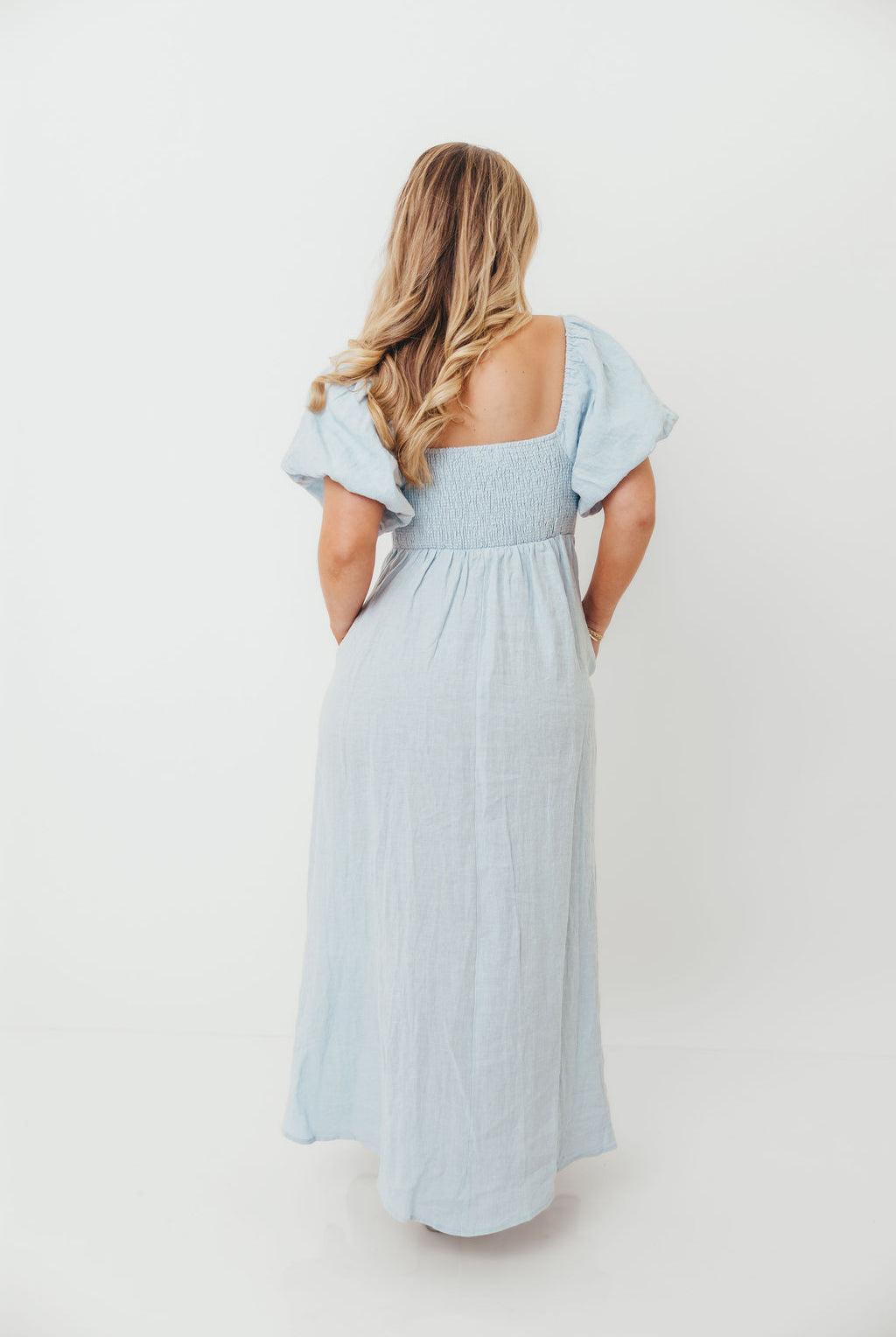 Join us in welcoming the *breathtaking* Candace Maxi Dress to the Worth Collective repertoire - we know you're going to love her! This neutral-hued, 100% linen dress is the epitome of elegance and luxury. Its beautiful neckline frames your decolletage, while the gently puffed sleeves and full skirt accent this gown's exquisite craftmanship. It's the perfect choice for this season's weddings, photo shoots, and other special events!