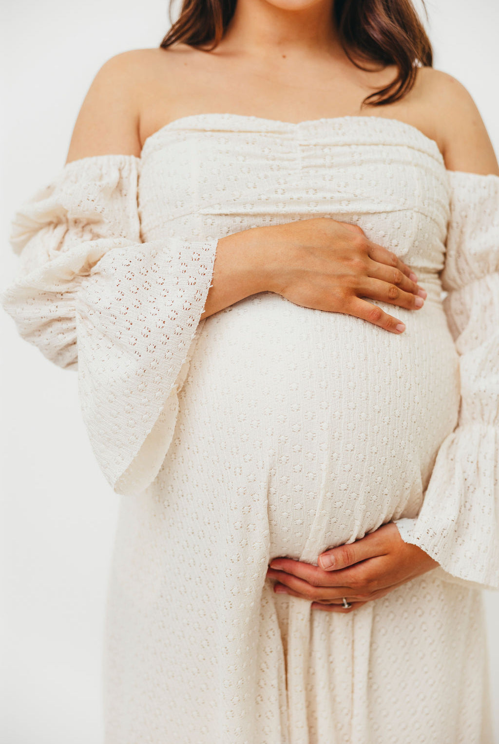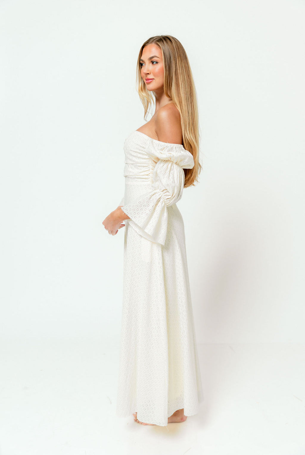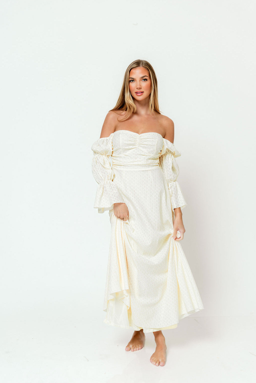 Feminine and sweetly elegant, the Corrine Maxi is guaranteed to sweep you off your feet! It features an incredible sweetheart neckline that can be worn on or off the shoulder, plus renaissance-style statement sleeves and a full, sweeping skirt. It's almost too easy to pair this dress with boots for an outdoor photo shoot, or with sleek pumps for a wedding or baby shower!