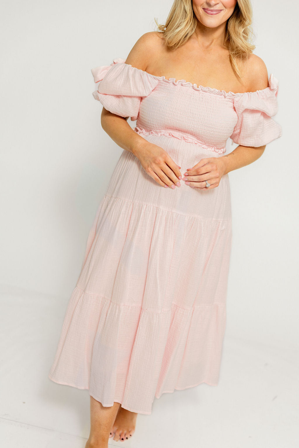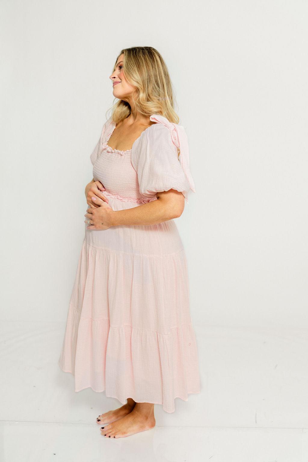 Elena 100% Cotton Midi Dress in Pale Pink - Bump Friendly