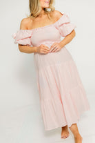 This picture-perfect midi dress is ready for your next special occasion! The Elena Midi features a classic, feminine silhouette that we just adore, plus a comfortable smocked bodice and statement puffed sleeves. It's flattering and comfortable for every body, including expecting mamas!