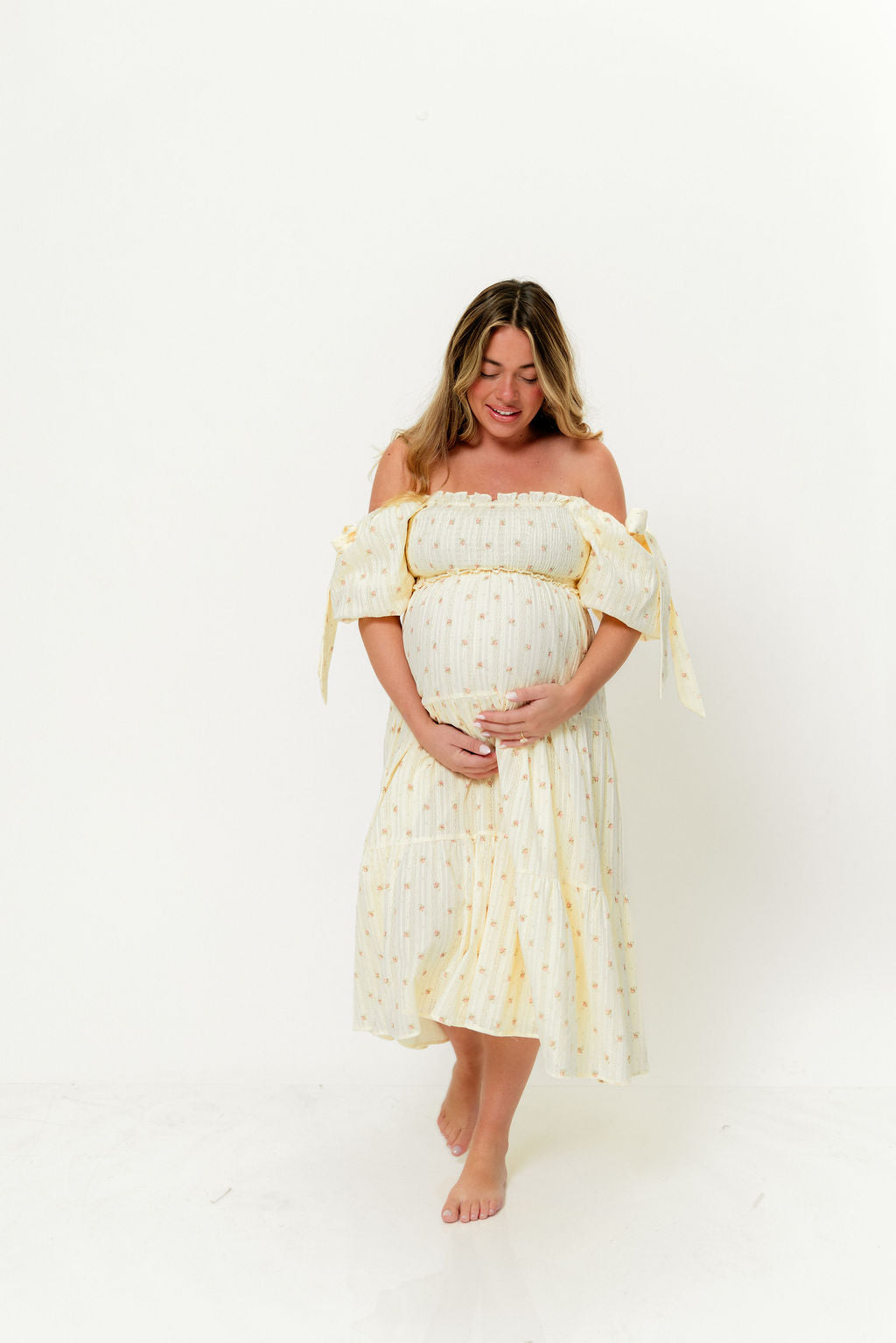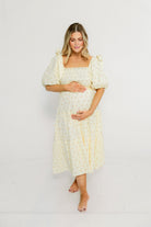 Elena 100% Cotton Midi Dress in Butter Floral - Bump Friendly