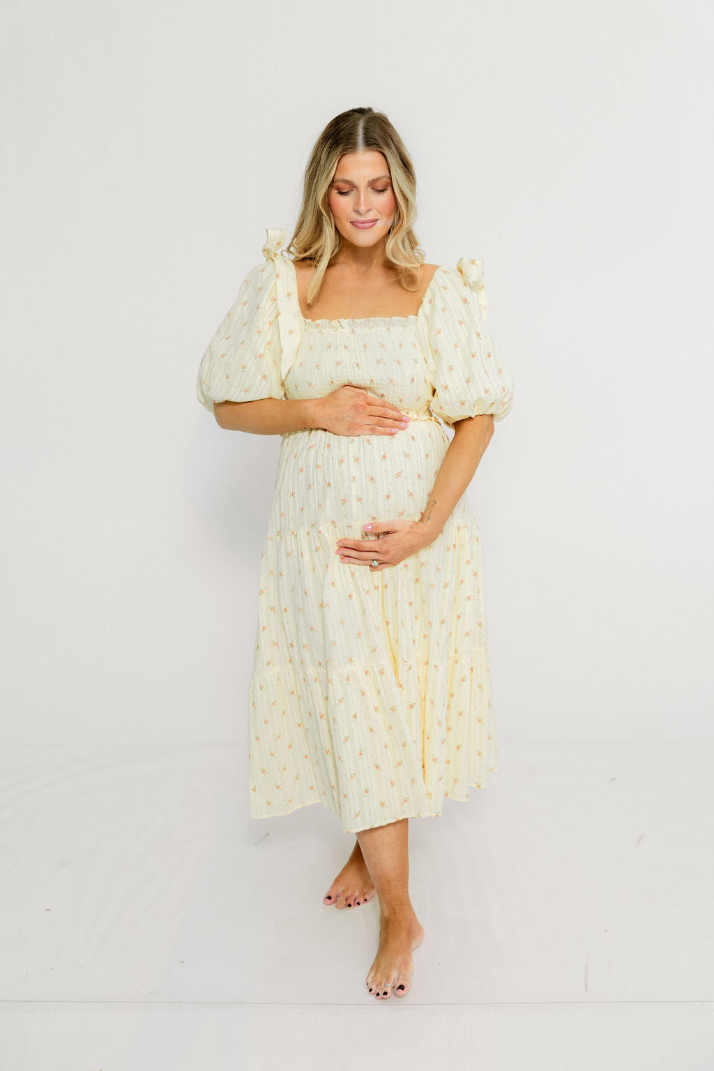 This picture-perfect midi dress is ready for your next special occasion! The Elena Midi features a classic, feminine silhouette that we just adore, plus a comfortable smocked bodice and statement puffed sleeves. It's flattering and comfortable for every body, including expecting mamas!