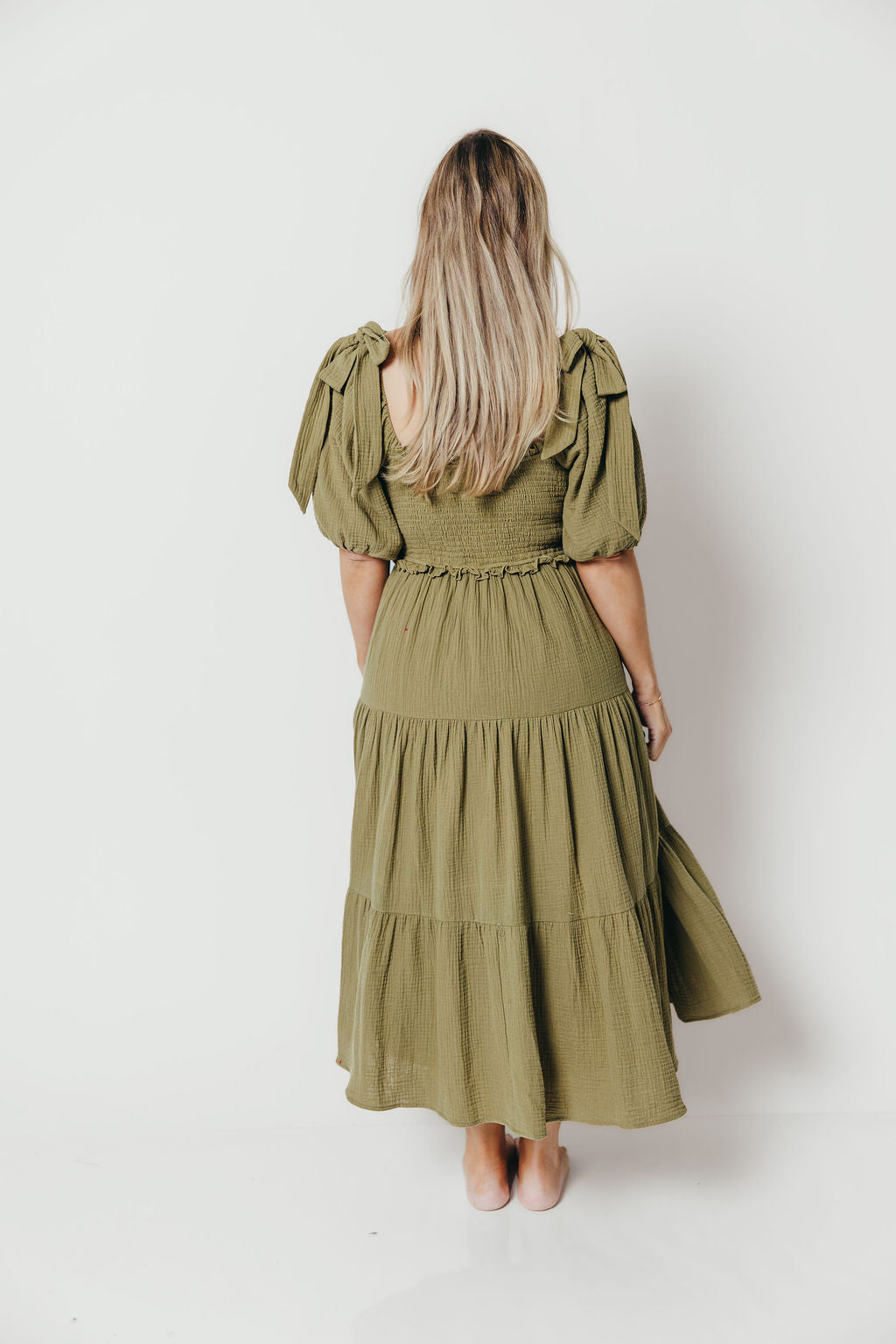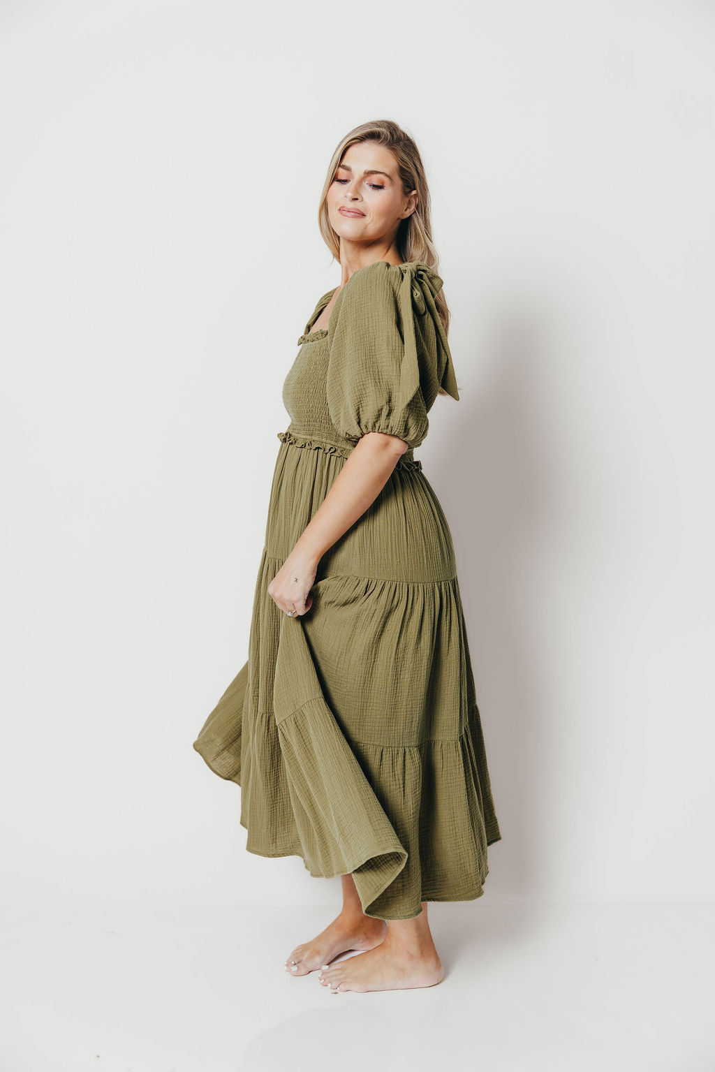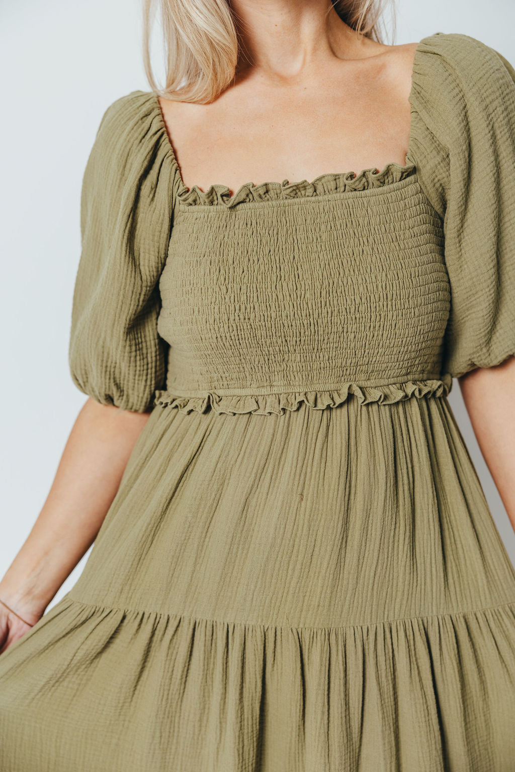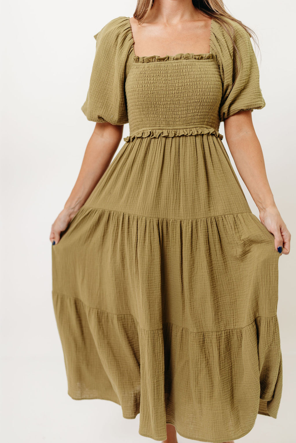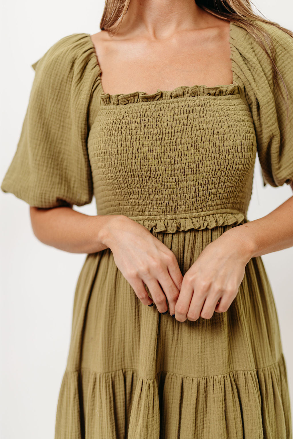 Elena 100% Cotton Midi Dress in Olive - Bump Friendly *Final Sale*