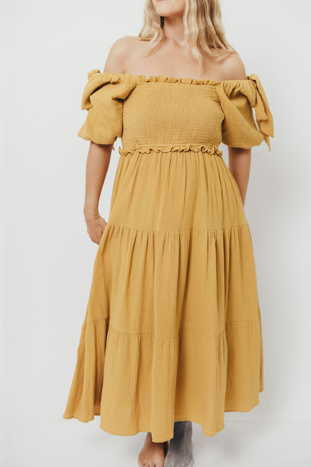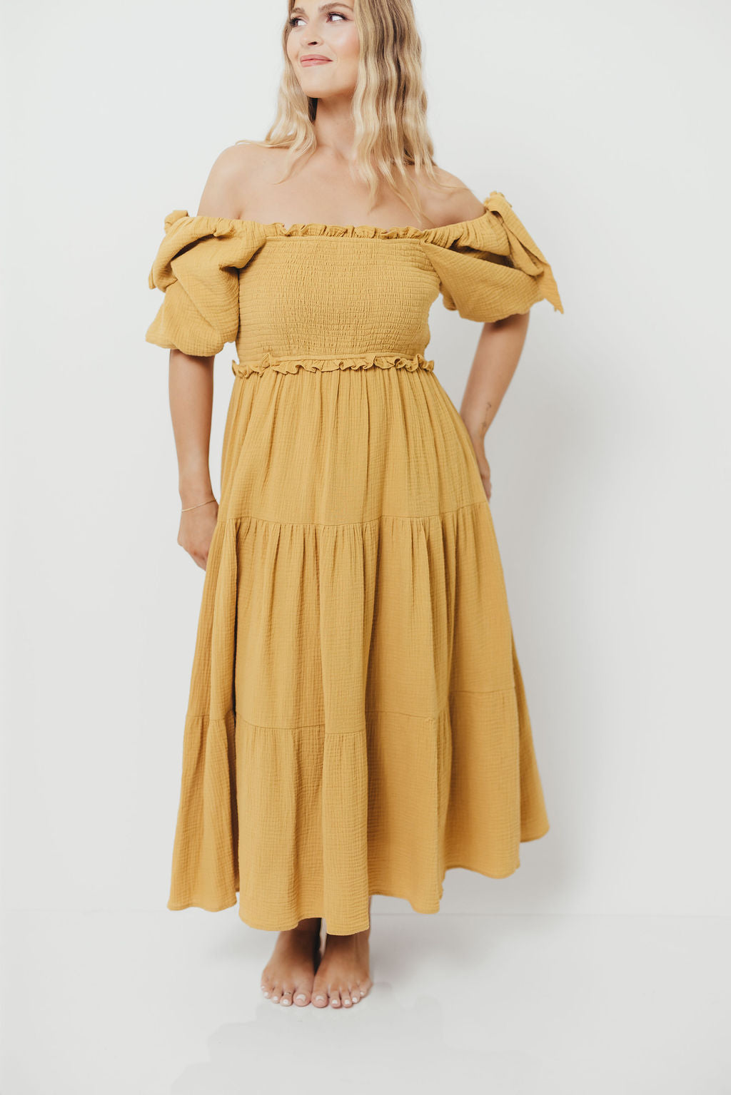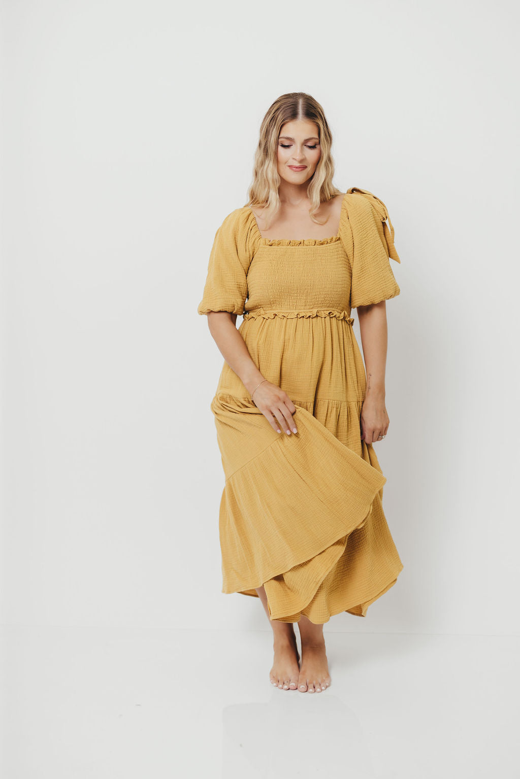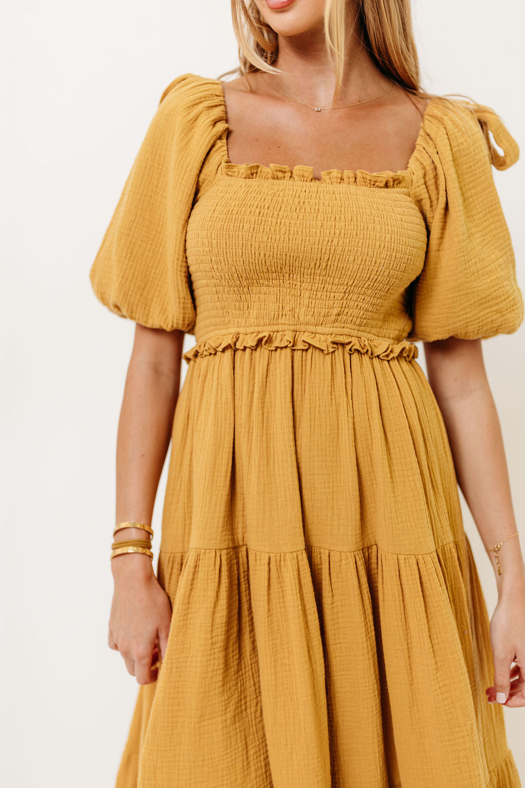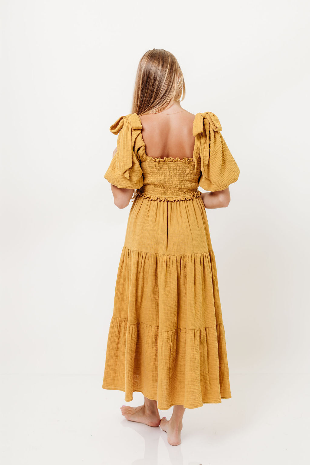 Elena 100% Cotton Midi Dress in Dusty Mustard- Bump Friendly *Final Sale*