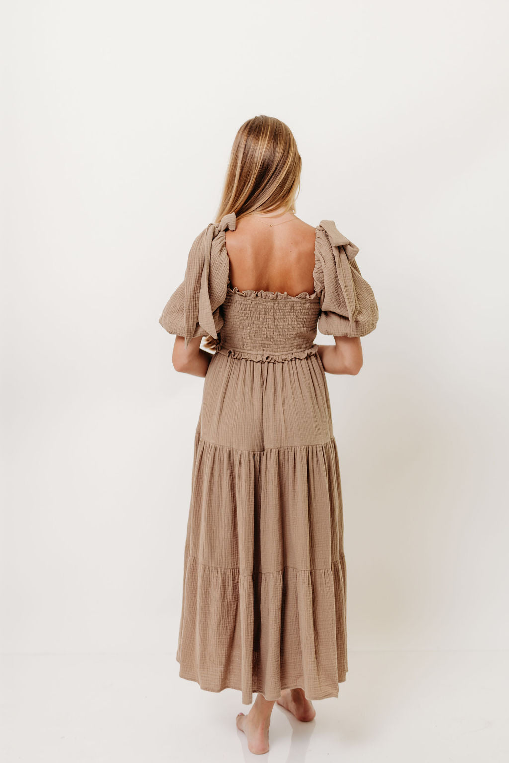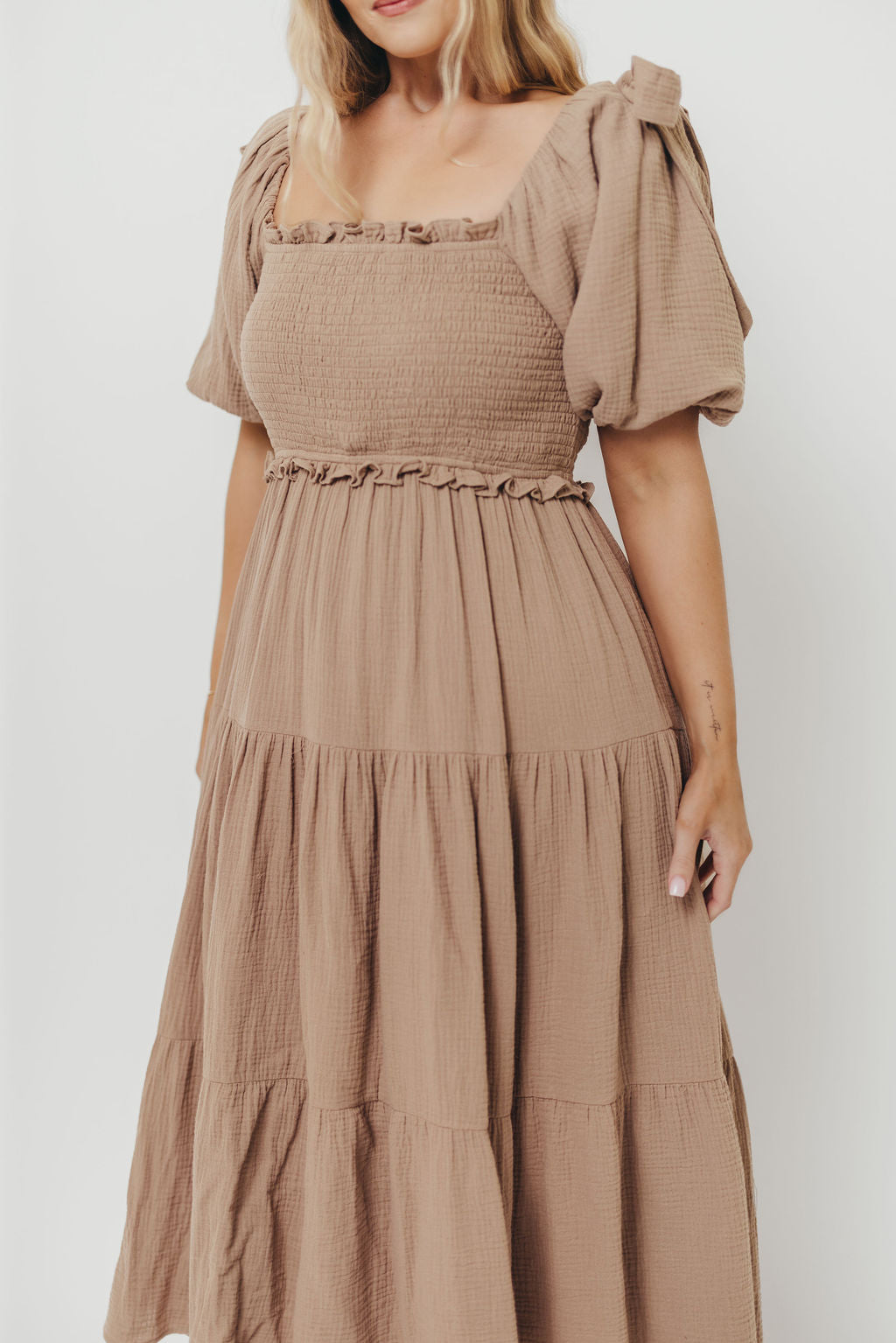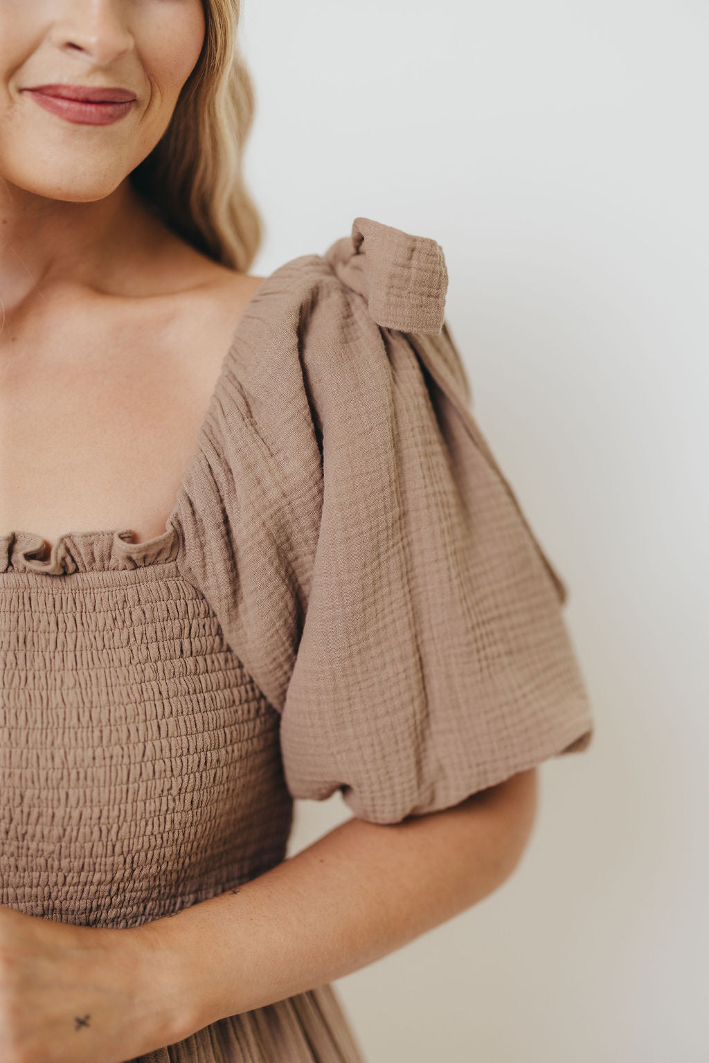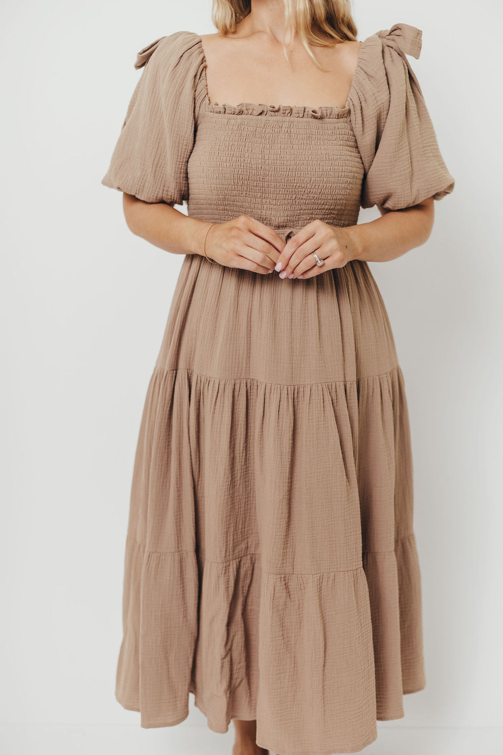 Elena 100% Cotton Midi Dress in Mocha - Bump Friendly