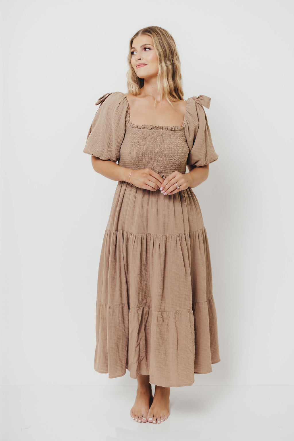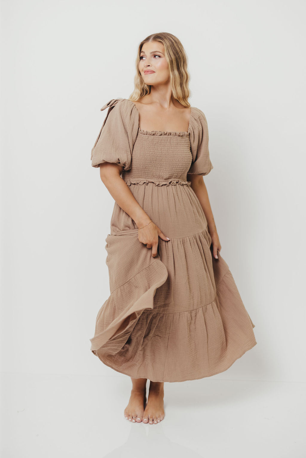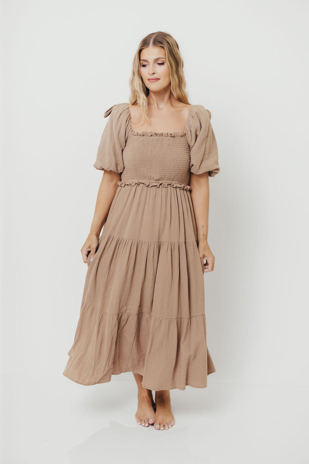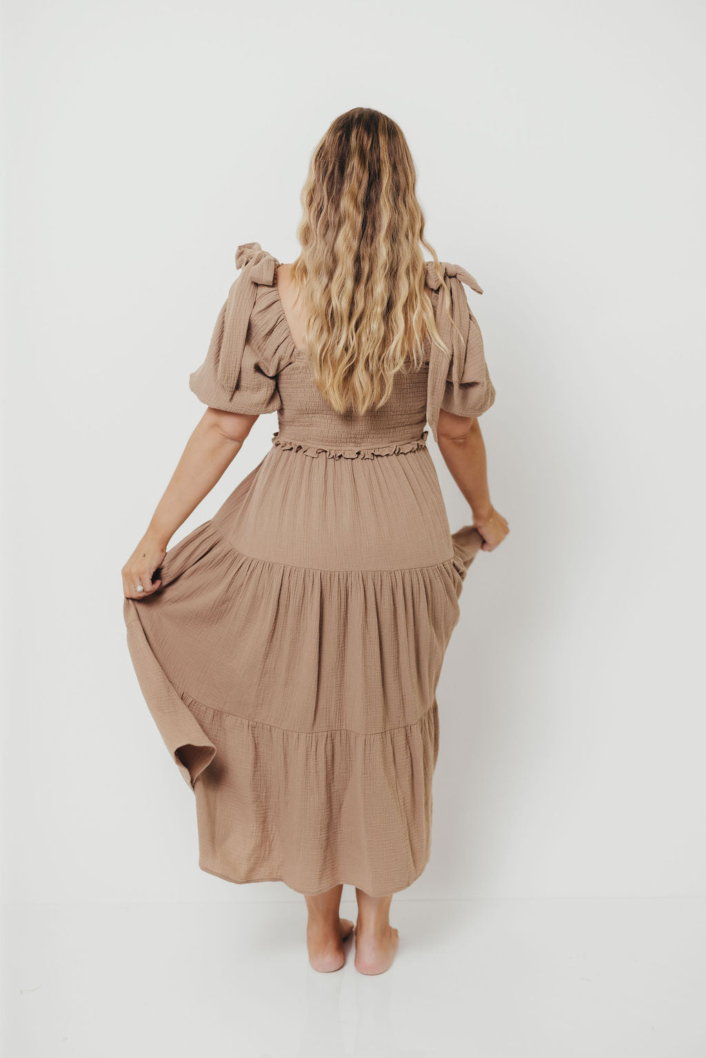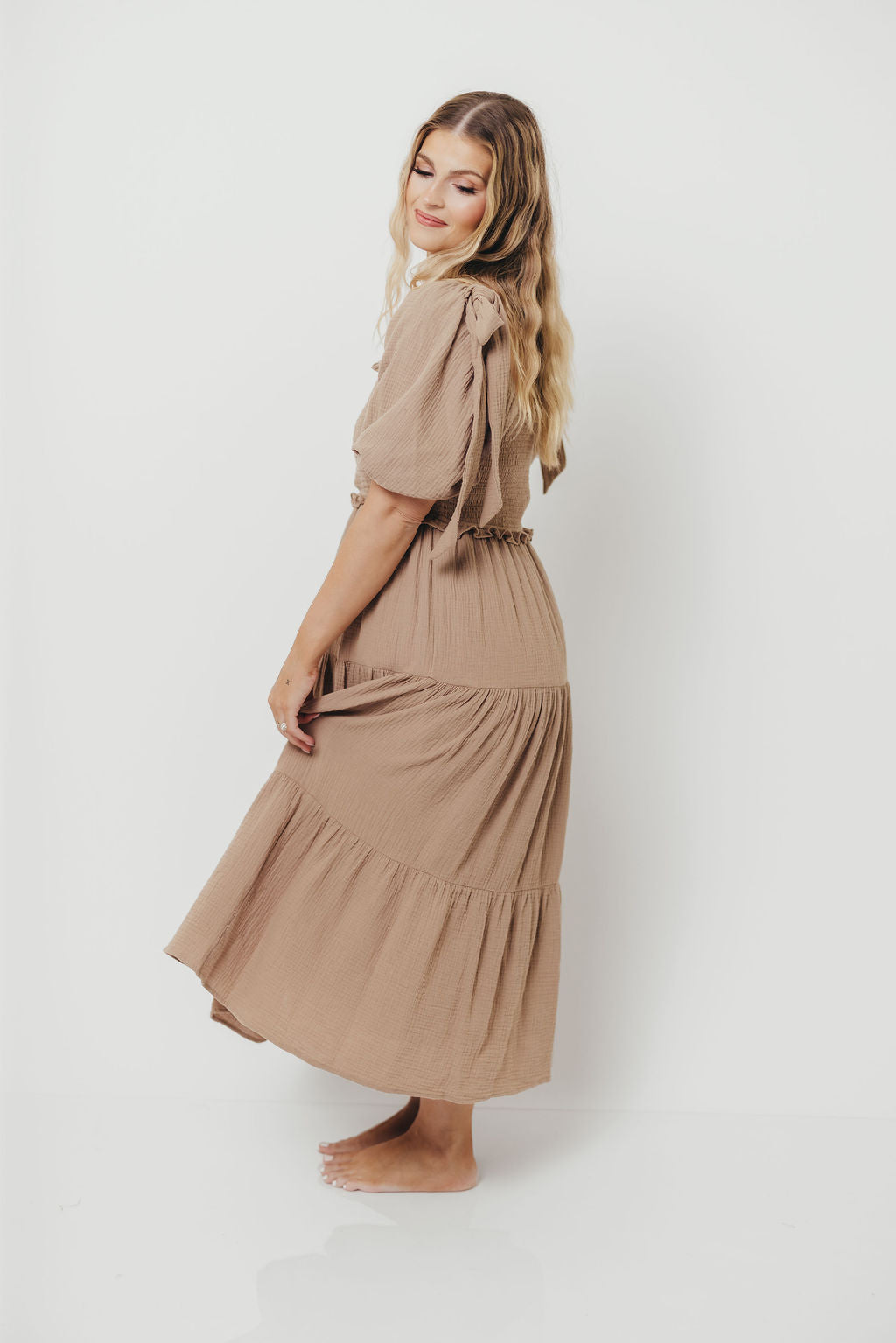 Elena 100% Cotton Midi Dress in Mocha - Bump Friendly