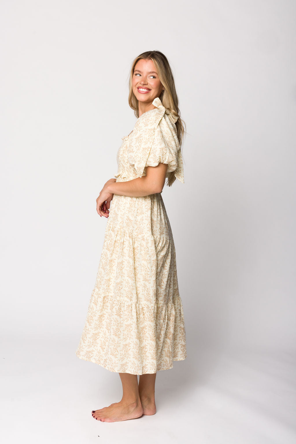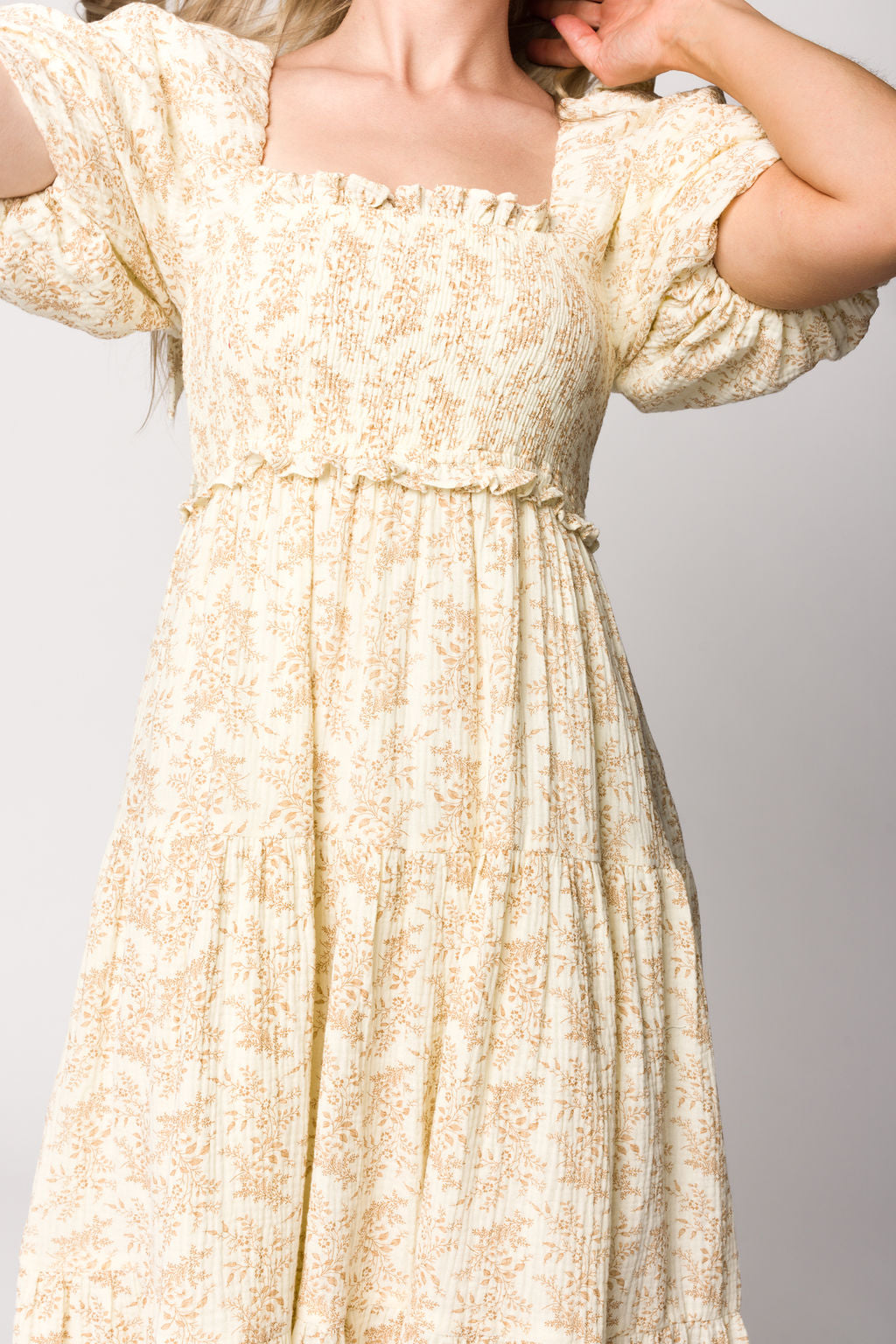 Elena 100% Cotton Midi Dress in Butter Floral - Bump Friendly - *1/9 PRE-ORDER*