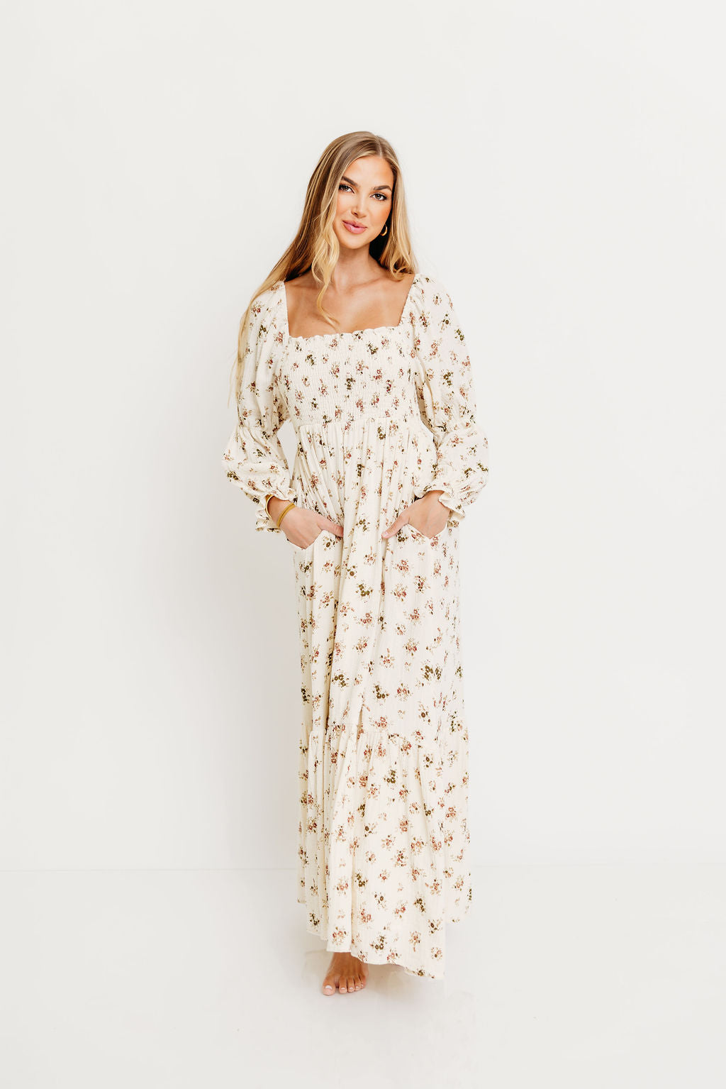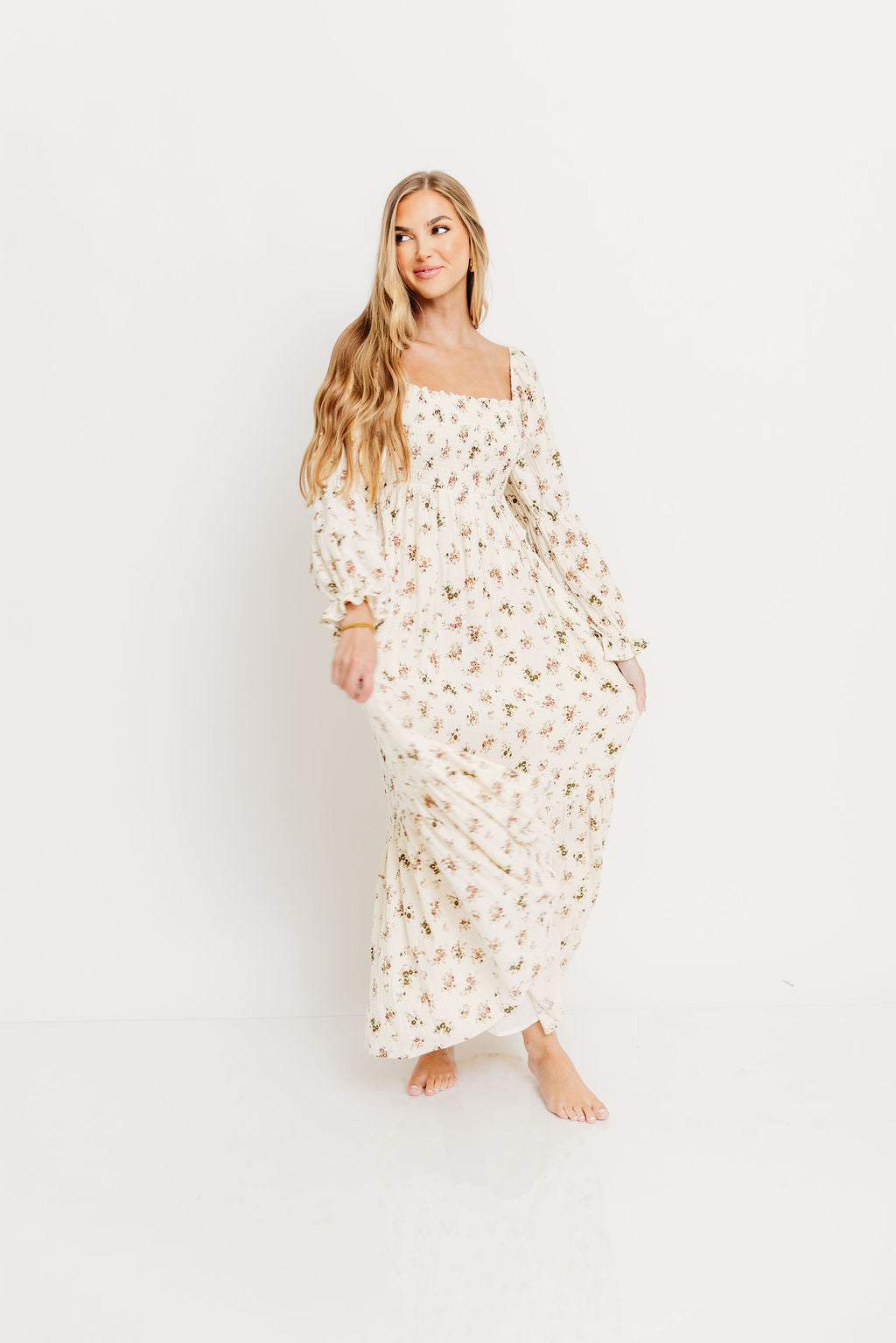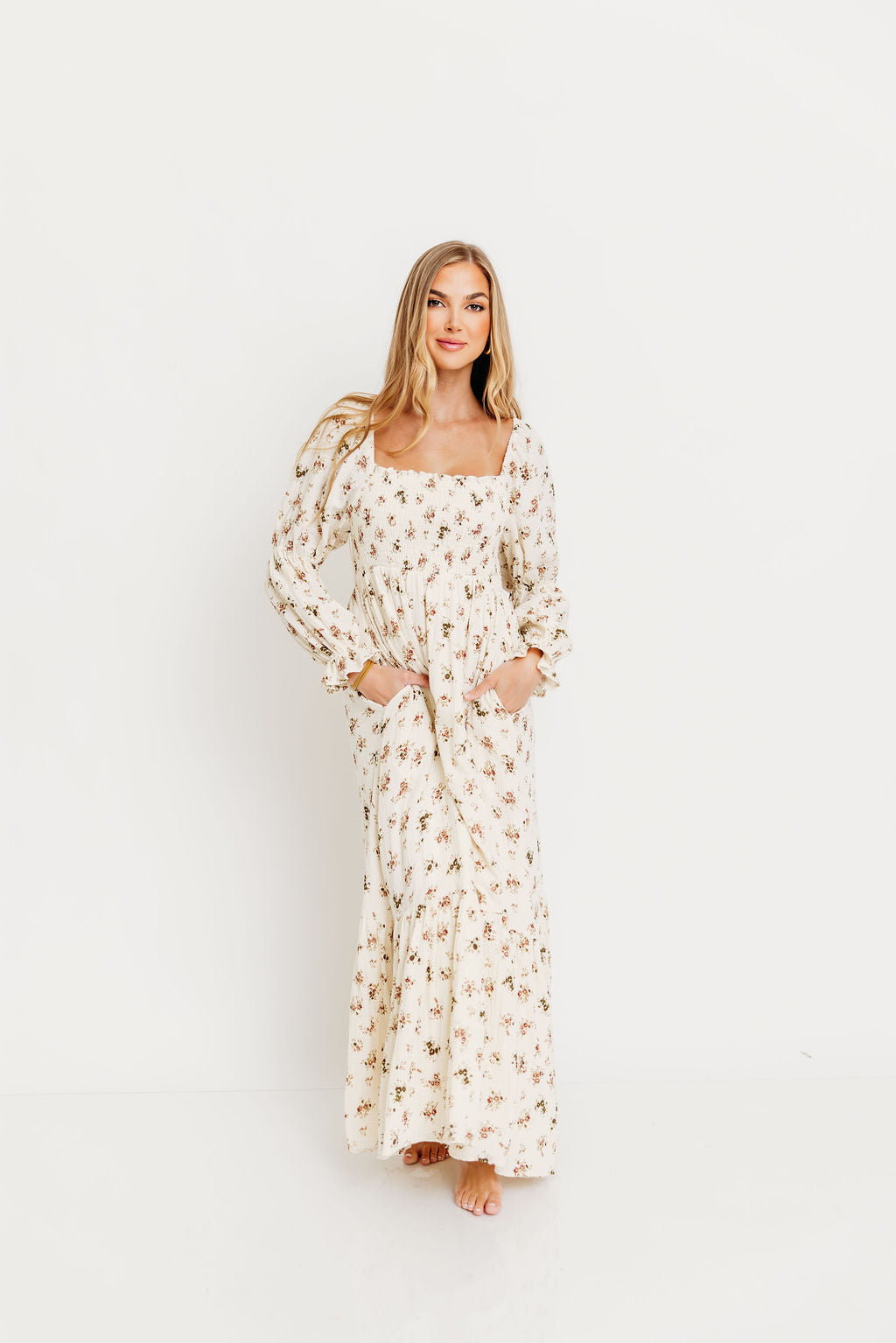 Emerson Maxi Dress with Long Sleeves in Ivory