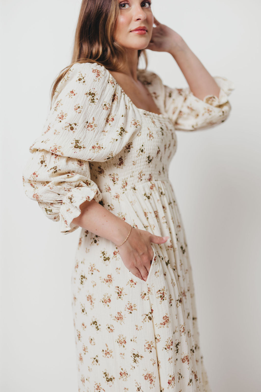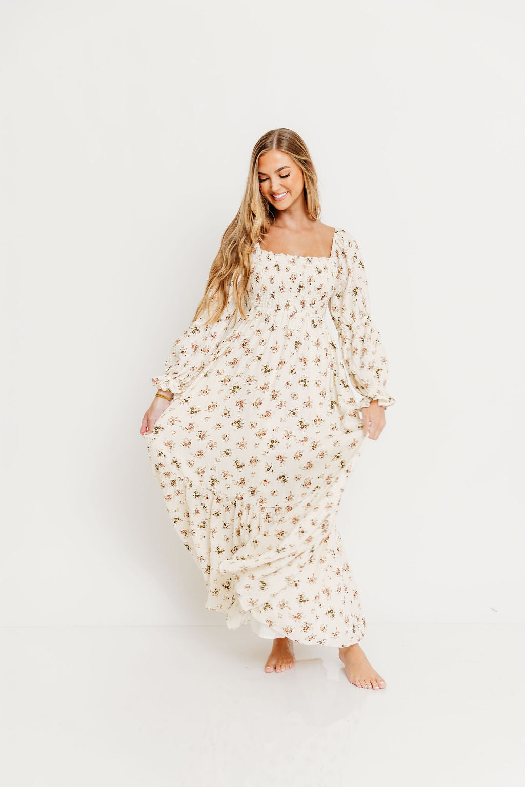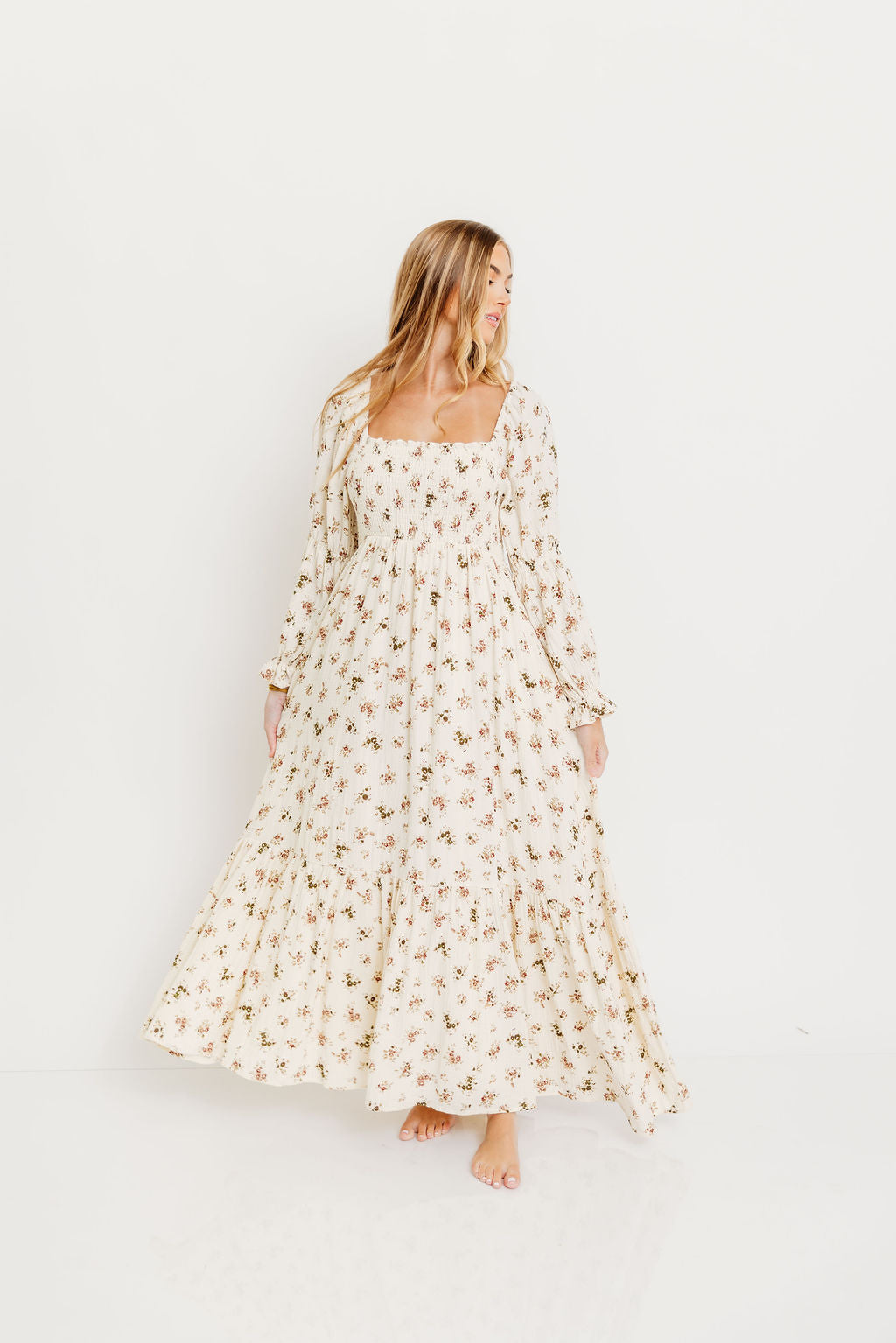 Emerson Maxi Dress with Long Sleeves in Ivory