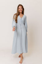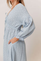 Hunter 100% Cotton Midi Dress in Baby Blue Foliage - Bump Friendly *2/13 PRE-ORDER*