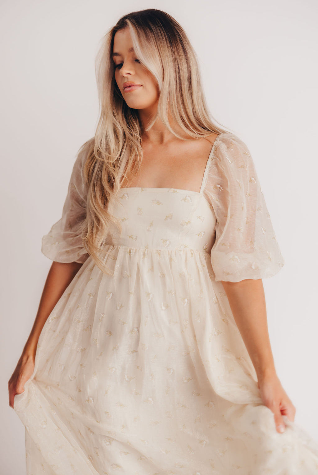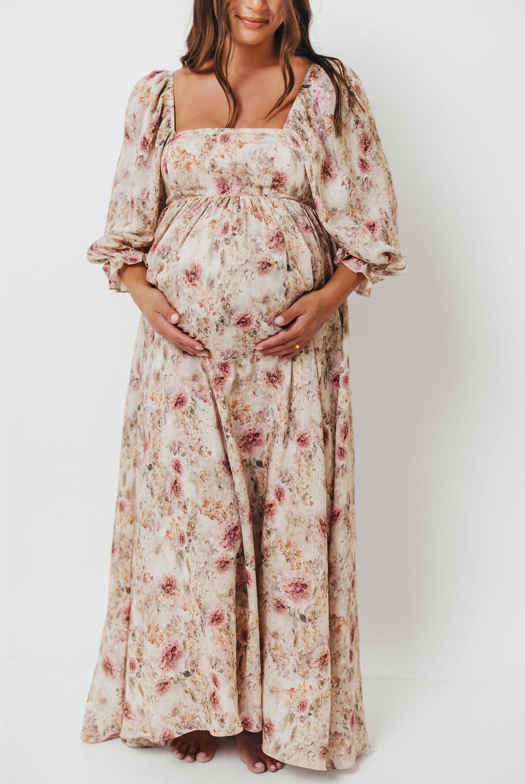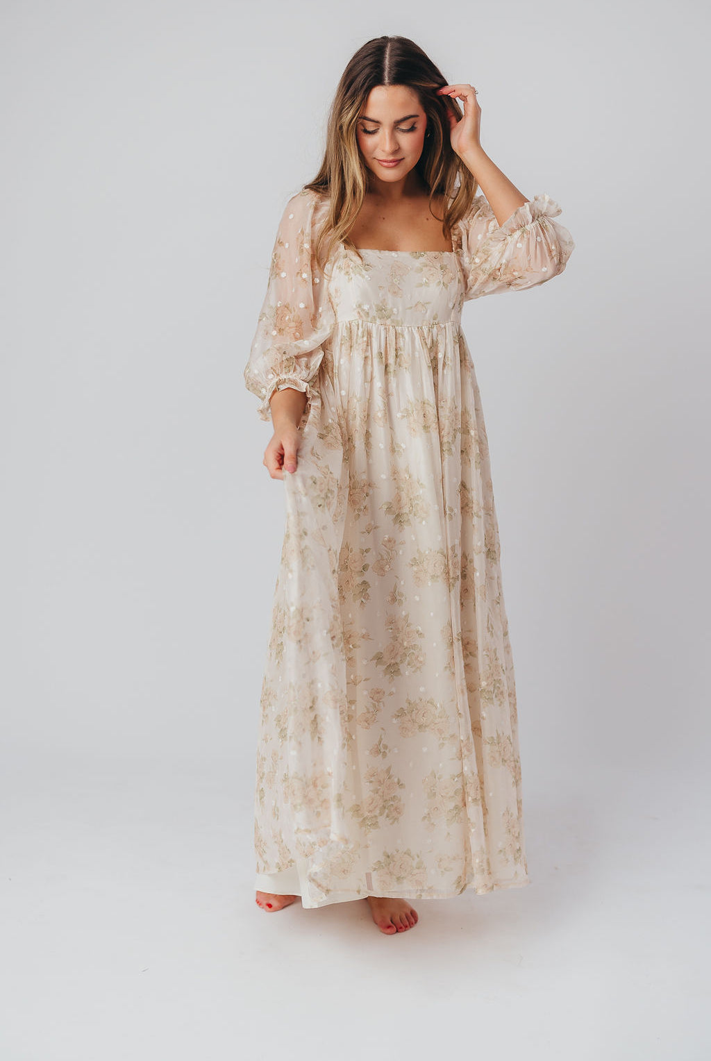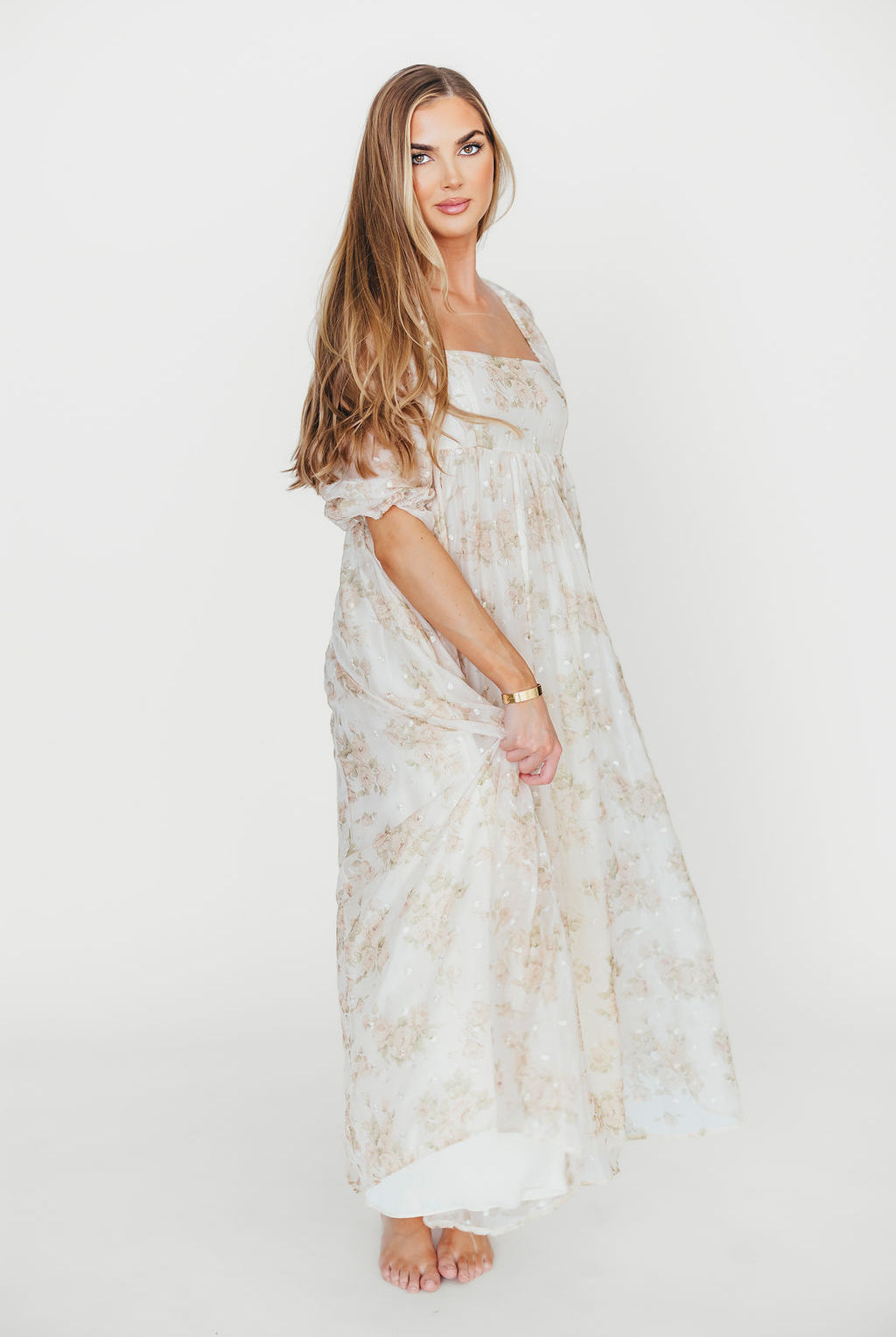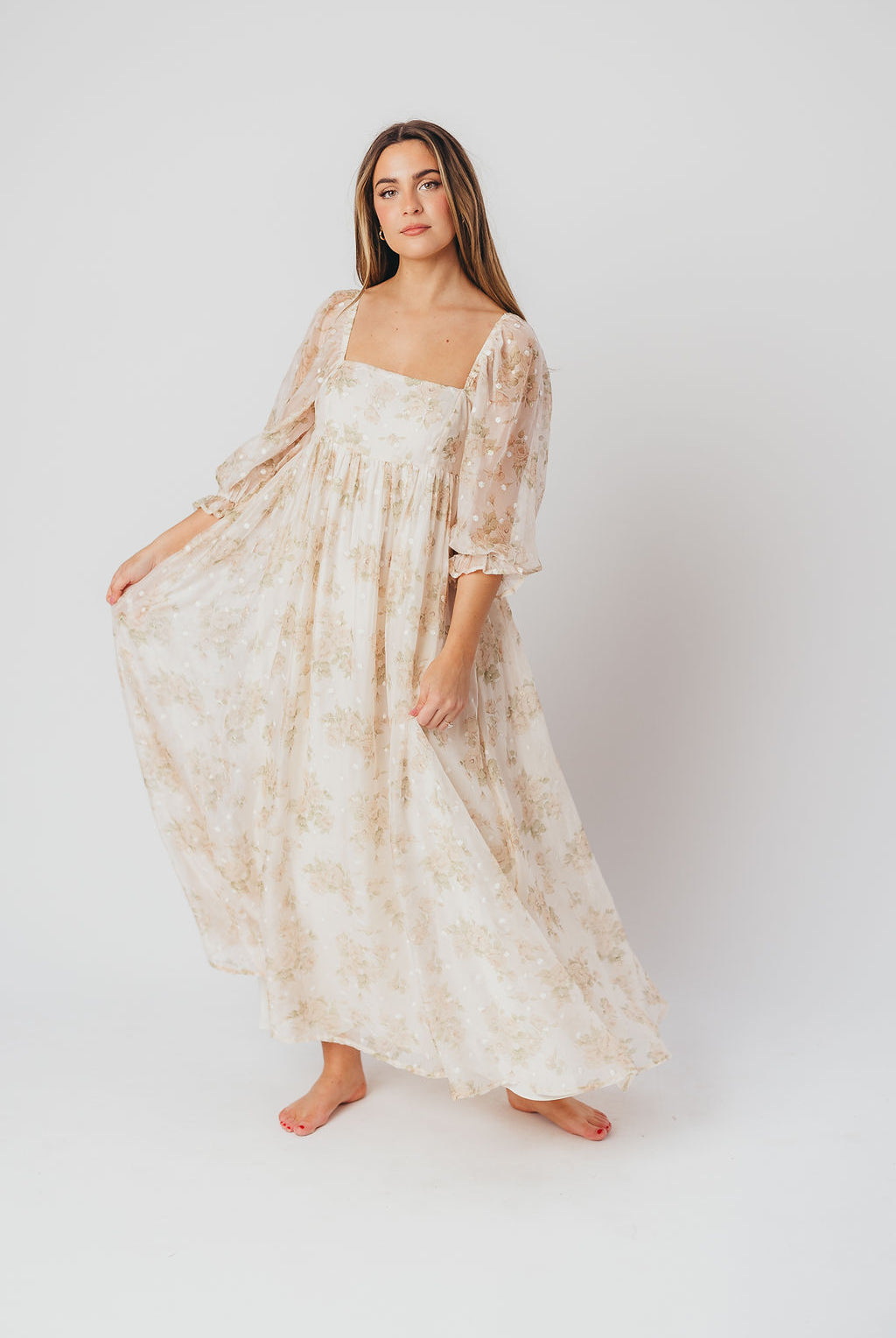This dreamy maxi dress is pure romance; you'll practically float away in a stunning, gauzy cloud! Featuring a flattering square neckline and empire waist, it's giving elegant Bridgerton while staying fresh and charming. The Mona is a favorite with our expecting mamas, and is a perfect choice for maternity shoots or a special event brunch. Enjoy feeling like royalty!